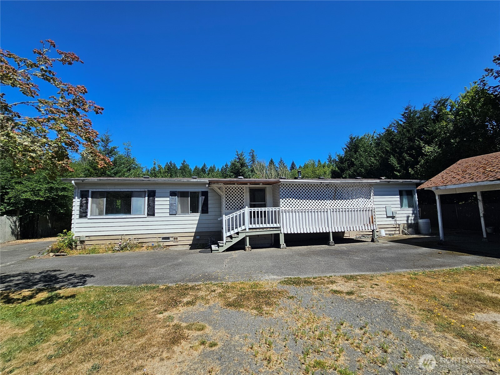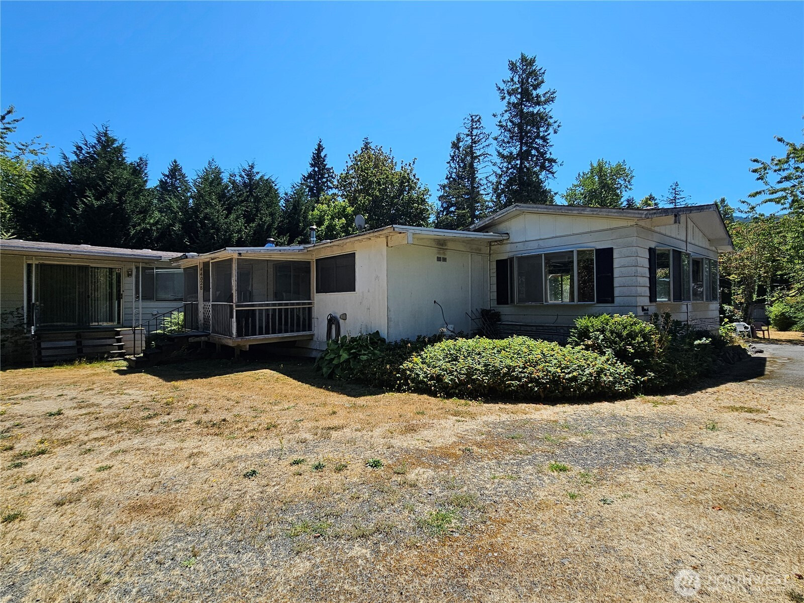 You'll love this thoughtful floorplan that flows easily from room to room, ideal for entertaining spacious. The double wide manufactured home built with an attached large 1 bd/1bath ADU is sitting on 1.64 acres of serene Northwest landscape with your own fruit trees. With 2,560 square feet of comfortable living space, this home features three bedrooms, one full and three-quarter bathrooms, and a cozy prefab fireplace. Located just minutes from downtown Eatonville, offering small-town charm with nearby amenities, schools, and parks.