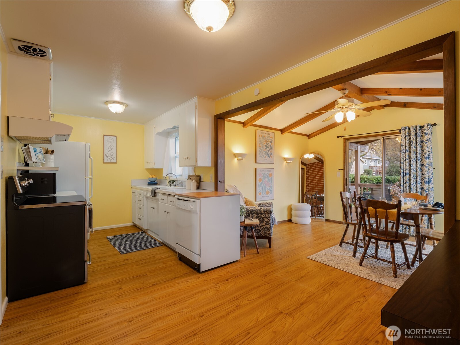 Perfectly placed between DeLong Pk. and Jefferson Pk. in Central Tacoma, this adorable 3 bed, 1.75 bath home is full of charm and personality. Step into the welcoming living room with original hardwood floors and a cozy fireplace, with two bedrooms and a full bath just off the main space. The kitchen sits at the heart of the home and opens to a bright, sun-filled dining room with access to a lg. covered back porch and spacious fenced backyard, ideal for gatherings or quiet evenings outdoors. A one car garage with extra storage connects to the laundry room, where stairs lead to a private upper level featuring a large bathroom with abundant storage and a third bedroom above the garage. A cheerful, well laid out home in a fantastic location.