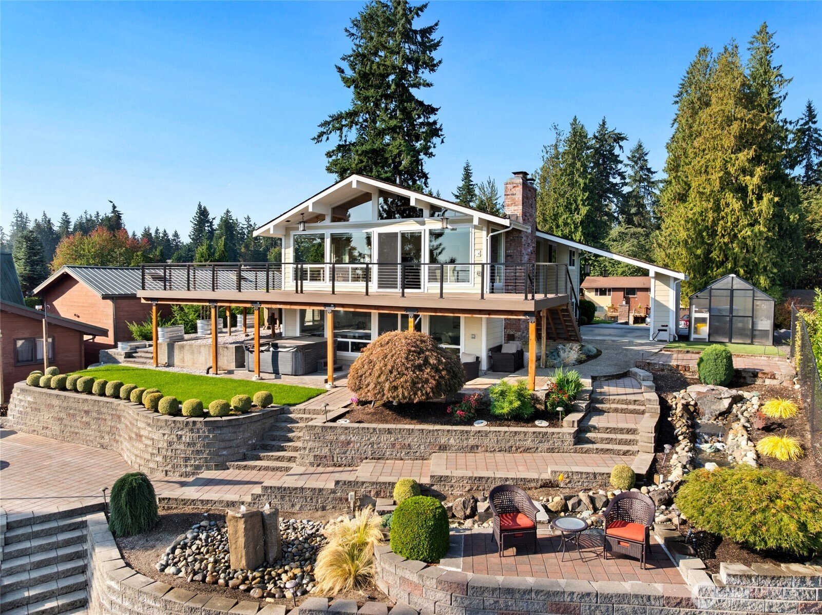 (503) 893-8874A true Lake Tapps treasure—this Lakeridge home sits above the shoreline, capturing panoramic views of Mt. Rainier, the Cascade range, and the lake’s shimmering waters. Featuring 4 bedrooms and 3 baths, it blends timeless style with thoughtful updates. The spacious living room with fireplace connects seamlessly to a bright, open layout designed for gathering and everyday comfort. Highlights include a remodeled kitchen with induction cooktop (gas ready), steam shower, hot tub, and expansive view deck. On the landscaped .3-acre lot, enjoy 70' of waterfront, covered boat lift, dock, fire pit, RV parking, and covered patio. Ownership includes access to Jenks Park, boat launch, Lakeridge amenities, and dog park—the ultimate Lake Tapps experience.