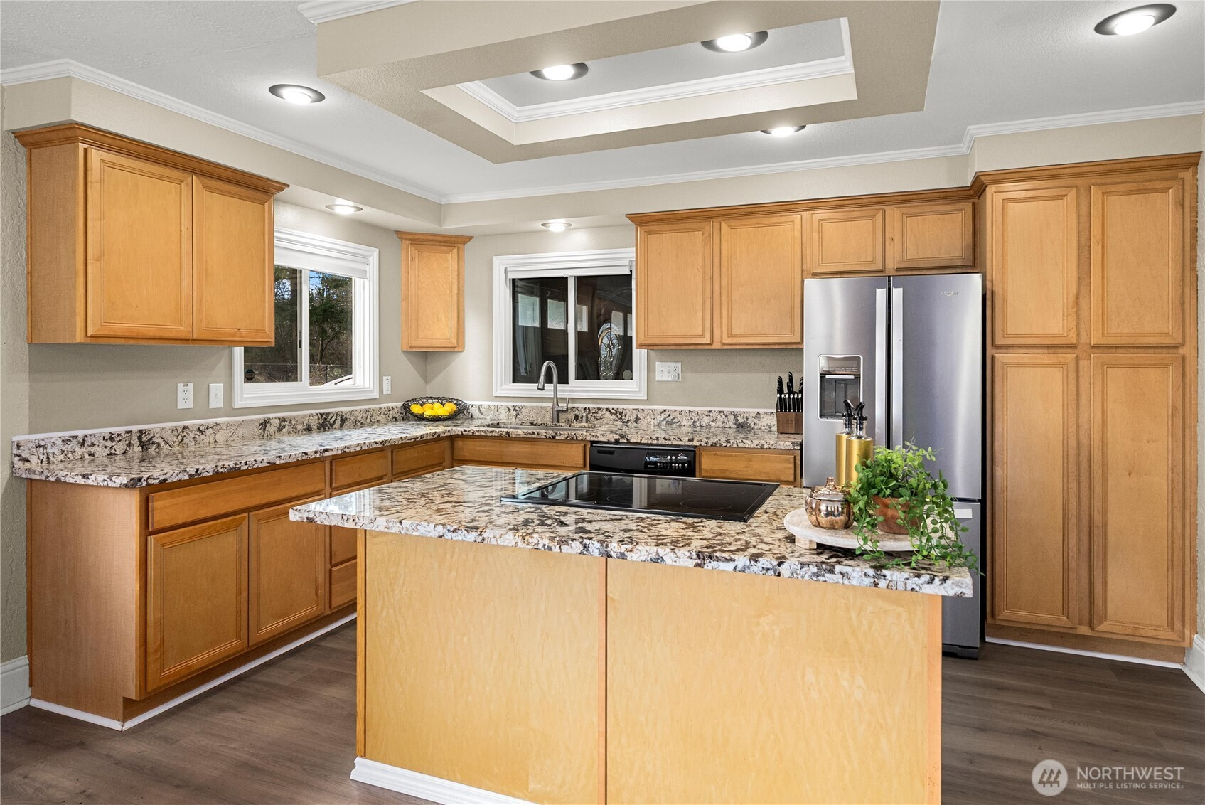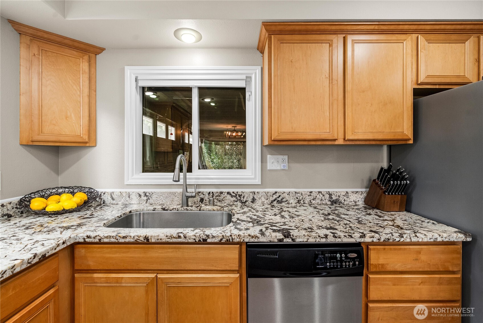 Welcome to this beautifully renovated rambler with a daylight basement in sought-after Edgewood. Offering 1,824 sq ft, 3 bedrooms, and 1.75 baths on nearly a half-acre of secluded property, this home blends modern updates with flexible living. The open-concept main level features a stylish kitchen with stainless steel appliances, granite countertops, and an island cooktop that anchors the space, flowing seamlessly into the dining and living areas. A full bath and spacious bedroom with a walk-in closet complete the main floor. The daylight basement offers a second potential primary suite with a walk-in closet and private en suite with shower and double sinks - ideal for guests, multigenerational living, or a private retreat. Set down a peaceful driveway and facing away from the street, the home provides quiet privacy, a large patio perfect for entertaining, a yard with space to play or relax in a hammock, and a two-car garage. Modern comfort, versatility, and a serene setting come together in this move-in-ready Edgewood home. A rare combination of modern updates, flexible living space, and a serene setting - this Edgewood home is ready to welcome its next chapter. Added bonus: don't forget to ask about our preferred lender buyer credit to help with closing costs!