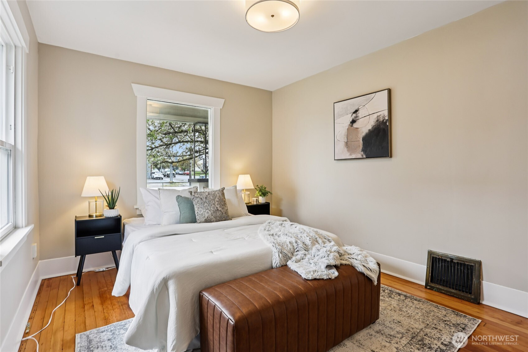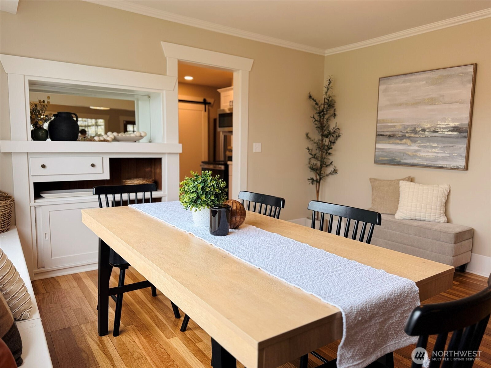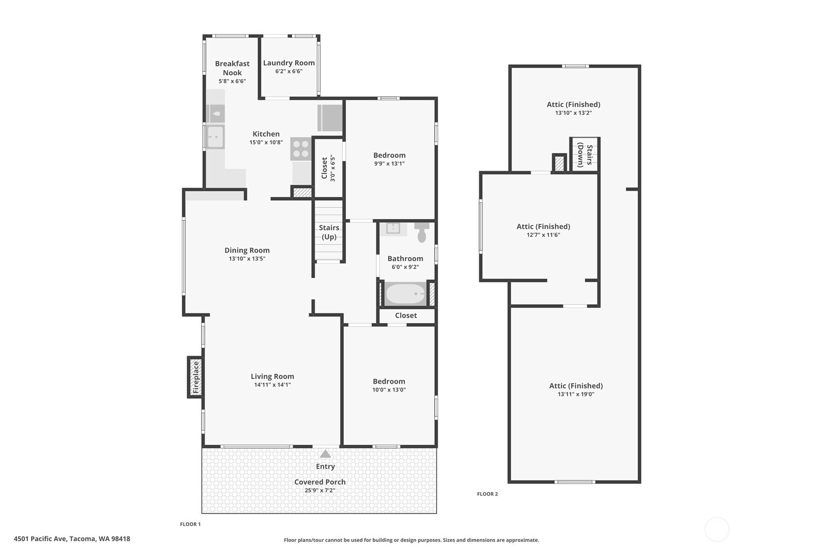 Fall in love the moment you arrive — this beautifully restored 1922 Craftsman blends timeless charm with thoughtful modern updates. Positioned on a desirable corner lot, a spacious covered front porch sets the tone: warmth, character, and everyday livability from the start. Inside, refinished original hardwood floors and natural millwork carry a century of character through a light-filled layout. The redesigned kitchen is the heart of the home — new cabinetry, counter tops, farmhouse sink, and a full suite of new appliances including a range with convection and air-fry capabilities. A sunlit kitchen nook is perfect for quiet mornings or evening conversation. A stylish barn door opens to a utility room with brand-new washer and dryer — both included. The updated bath features custom tile and curated finishes. A comprehensive alarm system adds peace of mind throughout. Upstairs, a charming attic retreat rich with original 1922 character awaits — warm wood-planked walls and ceilings create an inviting space ideal as a bedroom, art studio, lounge, or home office. Outside, a fully fenced yard and detached two-car garage offer exceptional flexibility: one enclosed bay and a second partially open bay perfect as a covered lounge, workspace, or entertaining area. A commuter's dream — just a hop from I-5 and minutes to JBLM. Convenient to parks, dining, and everything Tacoma has to offer. Move-in ready and a rare opportunity to own a beautifully restored piece of Tacoma history.