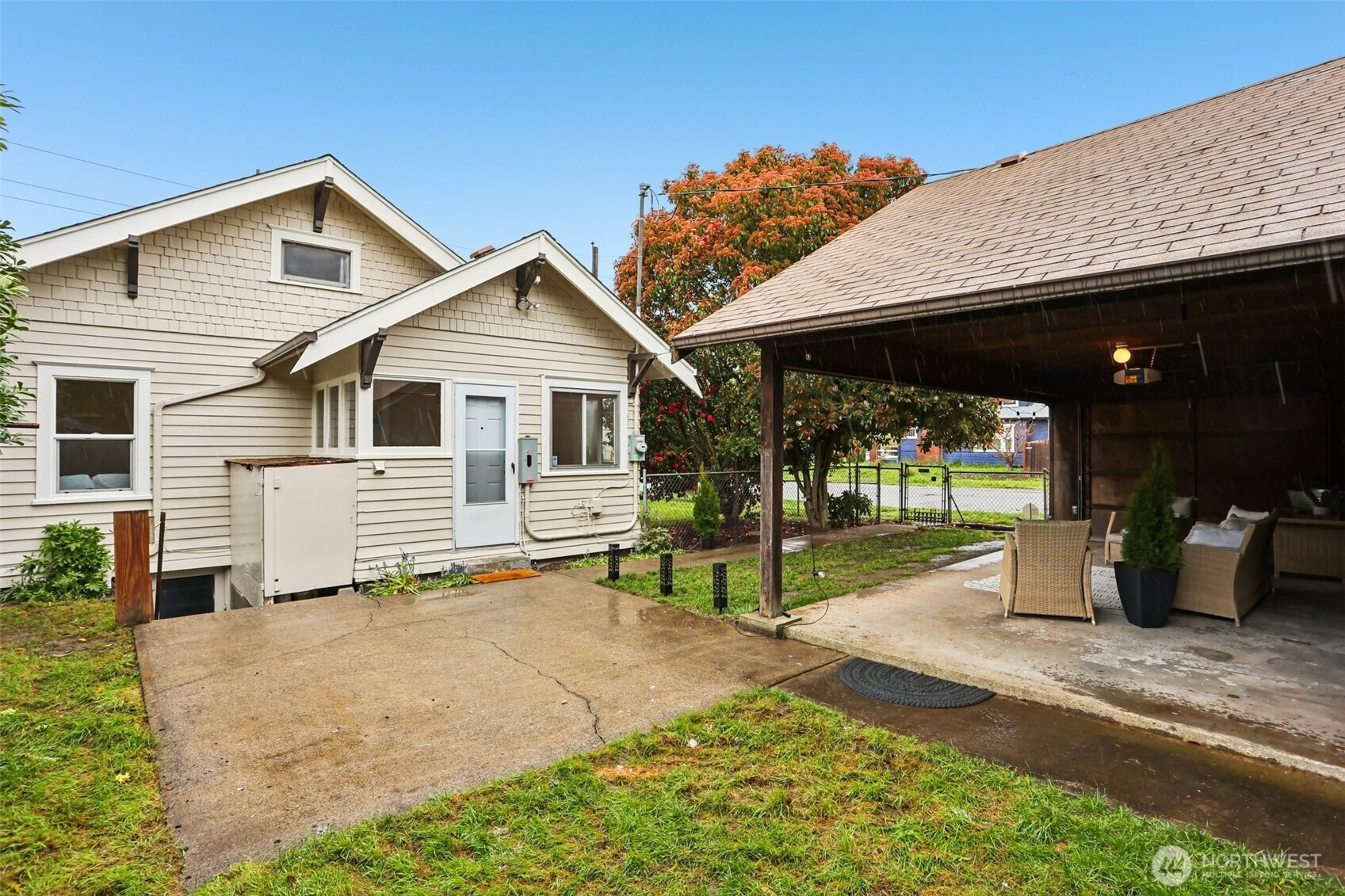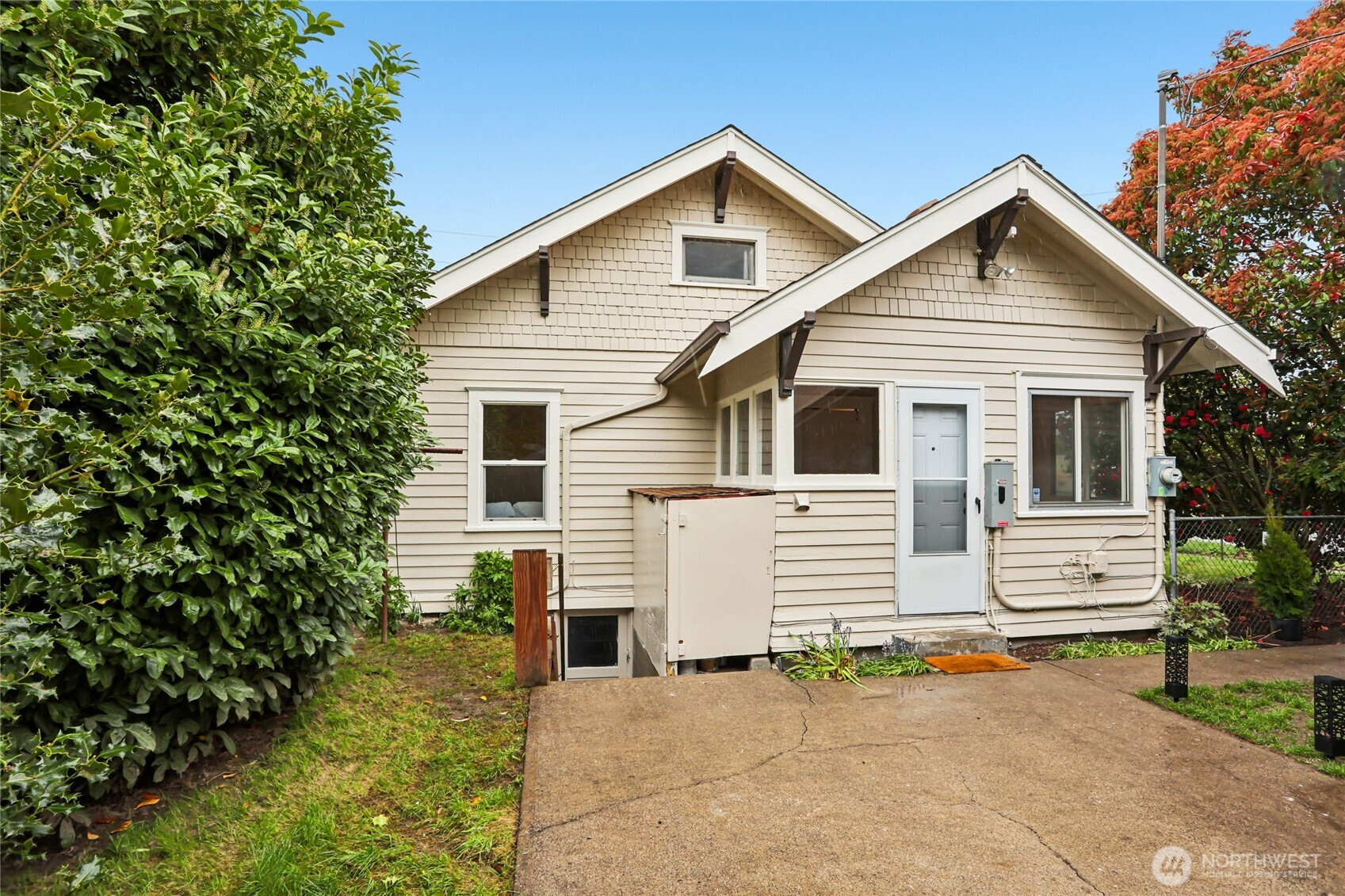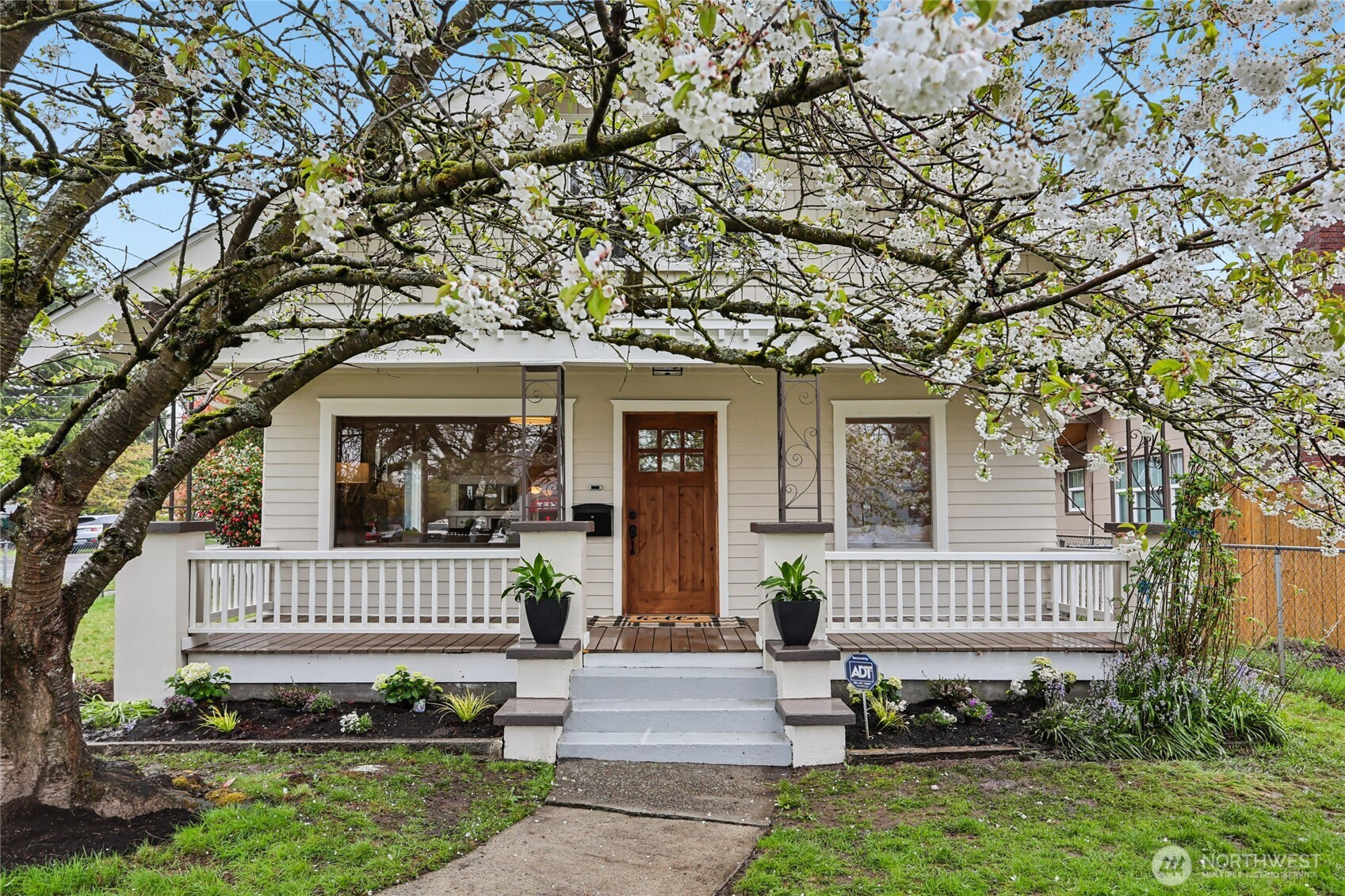 Fall in love the moment you arrive — this beautifully restored 1922 Craftsman blends timeless charm with thoughtful modern updates. Positioned on a desirable corner lot, a spacious covered front porch sets the tone: warmth, character, and everyday livability from the start. Inside, refinished original hardwood floors and natural millwork carry a century of character through a light-filled layout. The redesigned kitchen is the heart of the home — new cabinetry, counter tops, farmhouse sink, and a full suite of new appliances including a range with convection and air-fry capabilities. A sunlit kitchen nook is perfect for quiet mornings or evening conversation. A stylish barn door opens to a utility room with brand-new washer and dryer — both included. The updated bath features custom tile and curated finishes. A comprehensive alarm system adds peace of mind throughout. Upstairs, a charming attic retreat rich with original 1922 character awaits — warm wood-planked walls and ceilings create an inviting space ideal as a bedroom, art studio, lounge, or home office. Outside, a fully fenced yard and detached two-car garage offer exceptional flexibility: one enclosed bay and a second partially open bay perfect as a covered lounge, workspace, or entertaining area. A commuter's dream — just a hop from I-5 and minutes to JBLM. Convenient to parks, dining, and everything Tacoma has to offer. Move-in ready and a rare opportunity to own a beautifully restored piece of Tacoma history.