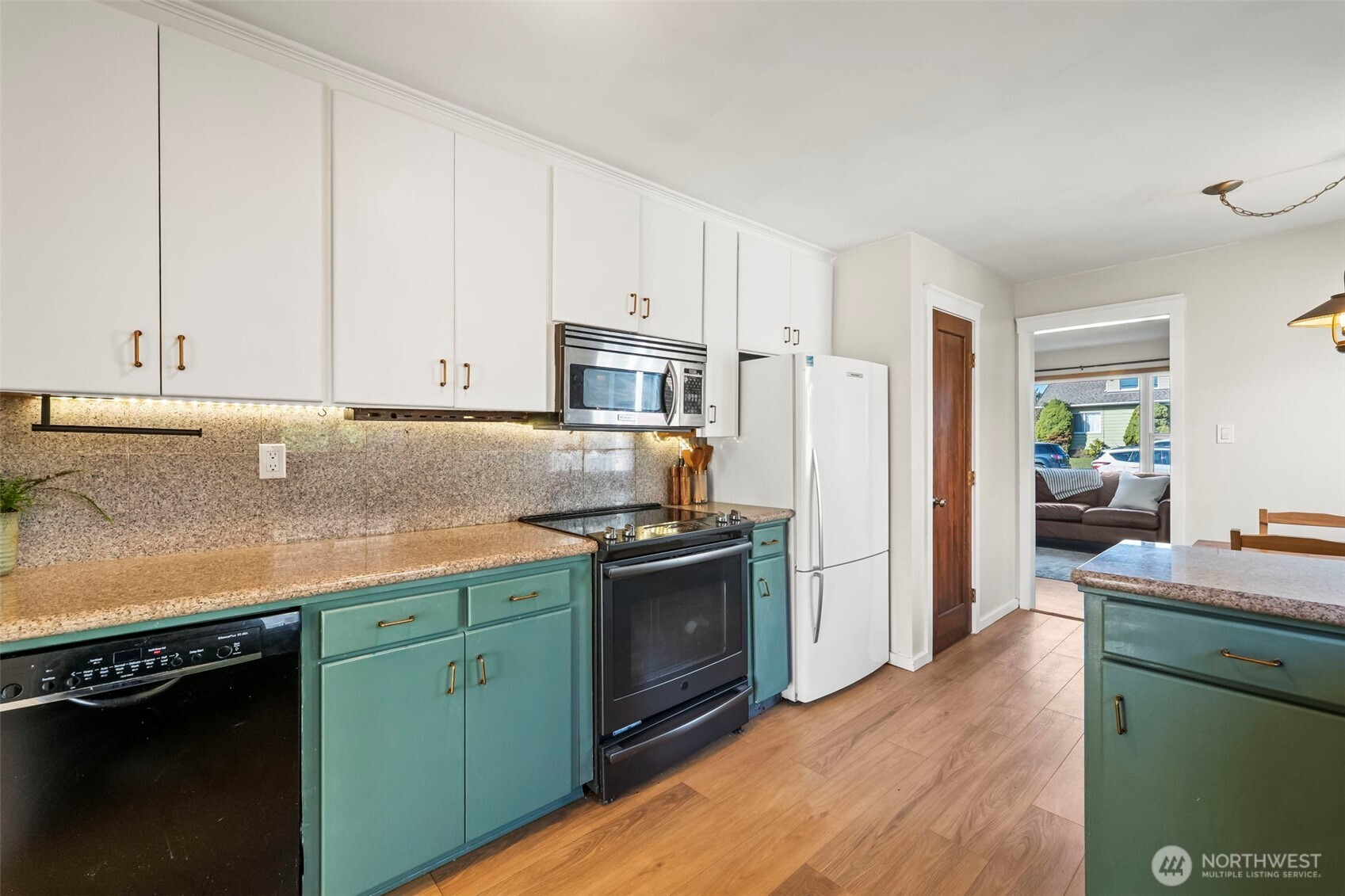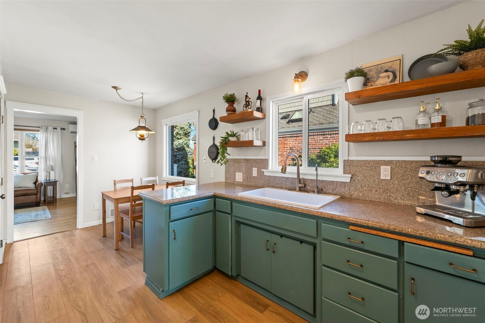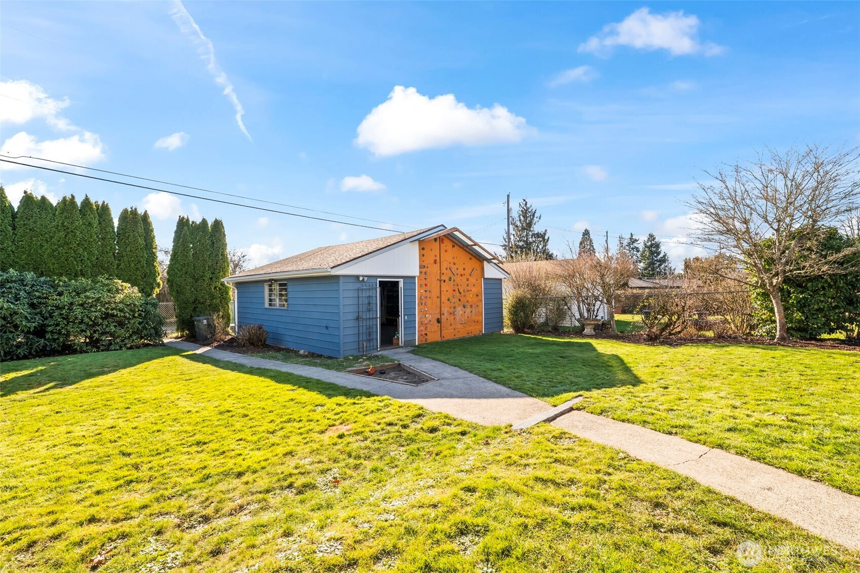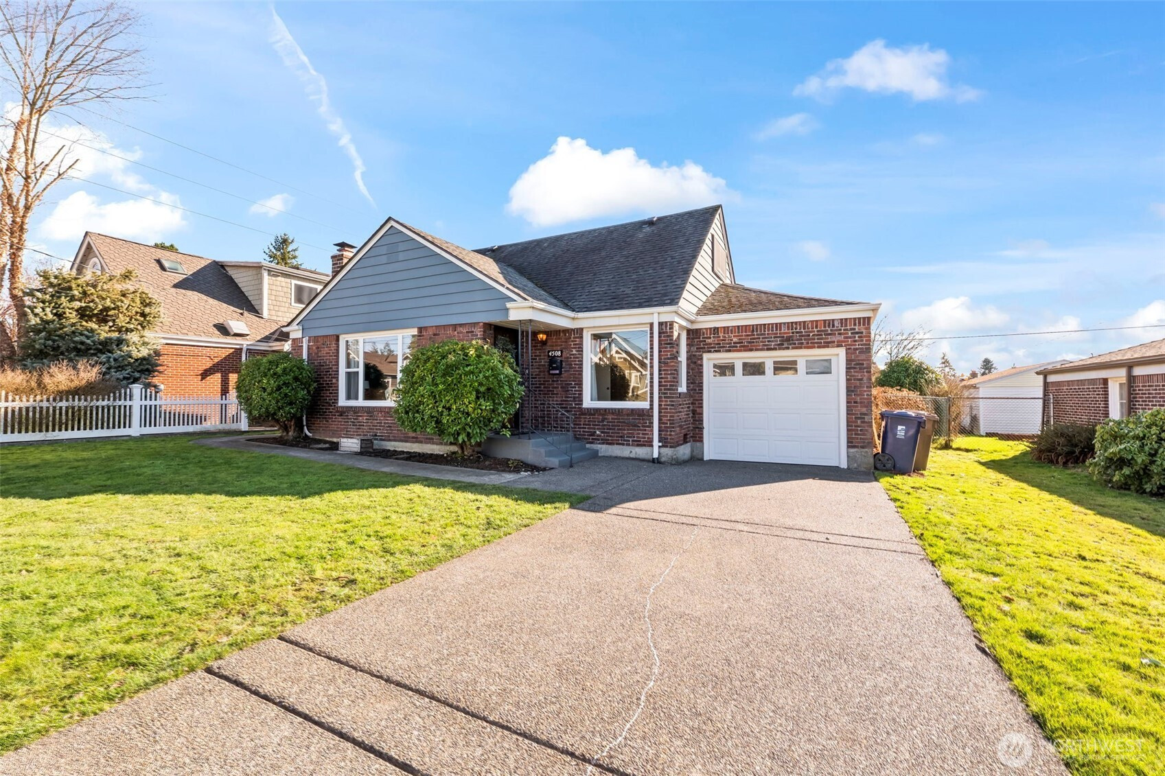 Classic North Tacoma clinker brick home offering 4 beds, 1.5 baths and 1,501 sq ft of timeless charm. Oversized 2-car garage with alley access plus an attached 1-car garage provide exceptional parking and storage flexibility. Enjoy outdoor living on the covered aggregate patio and generous backyard. The eat-in kitchen features granite counters and a pantry, with a finished flex room nearby—ideal for an office, study or media space. Refinished oak floors add warmth. Spacious primary bedroom. Updated windows, new electrical panel, house fully rewired, ductless mini-split heating/cooling. Close to 6th Ave amenities and Jefferson Park!