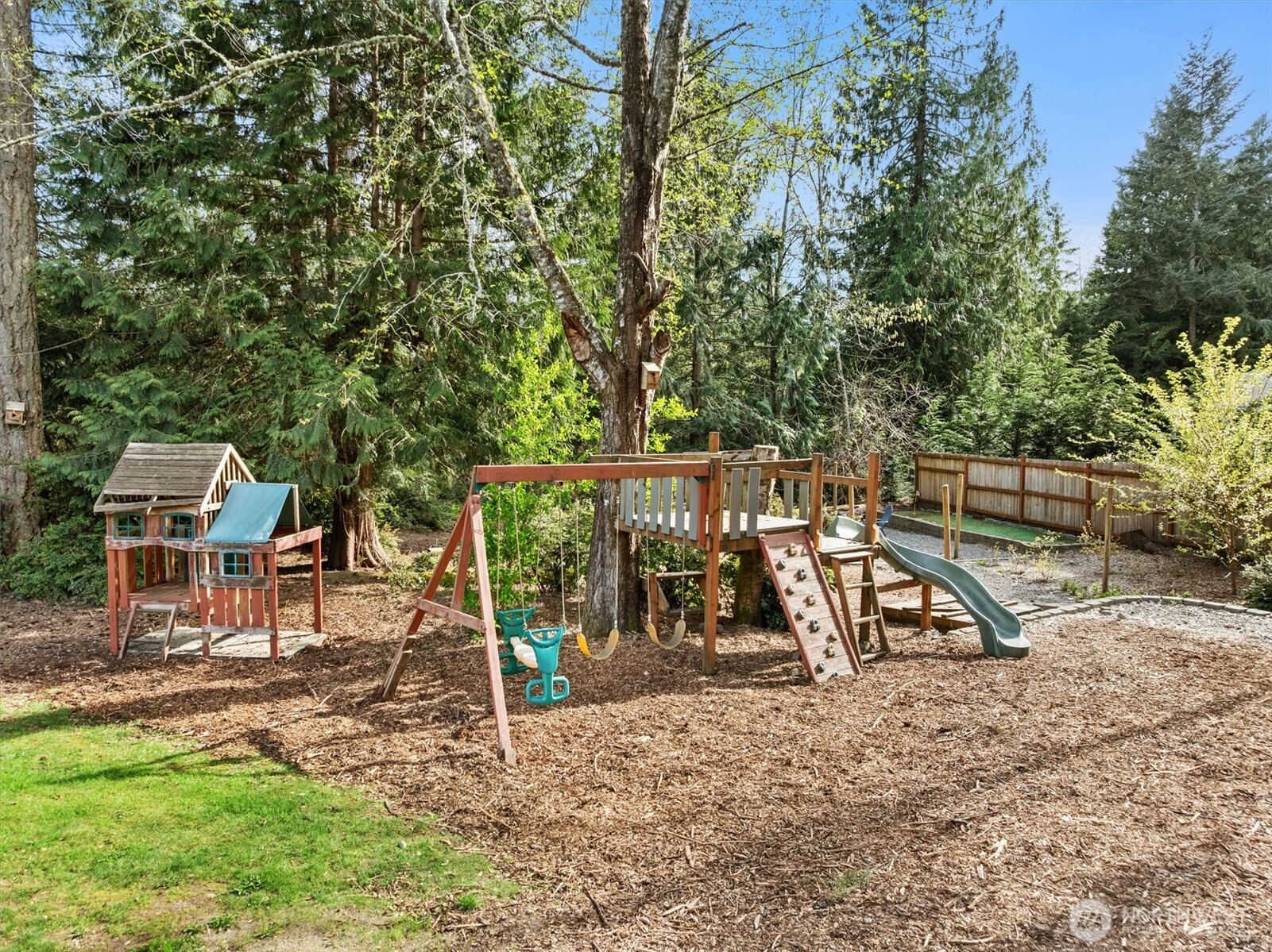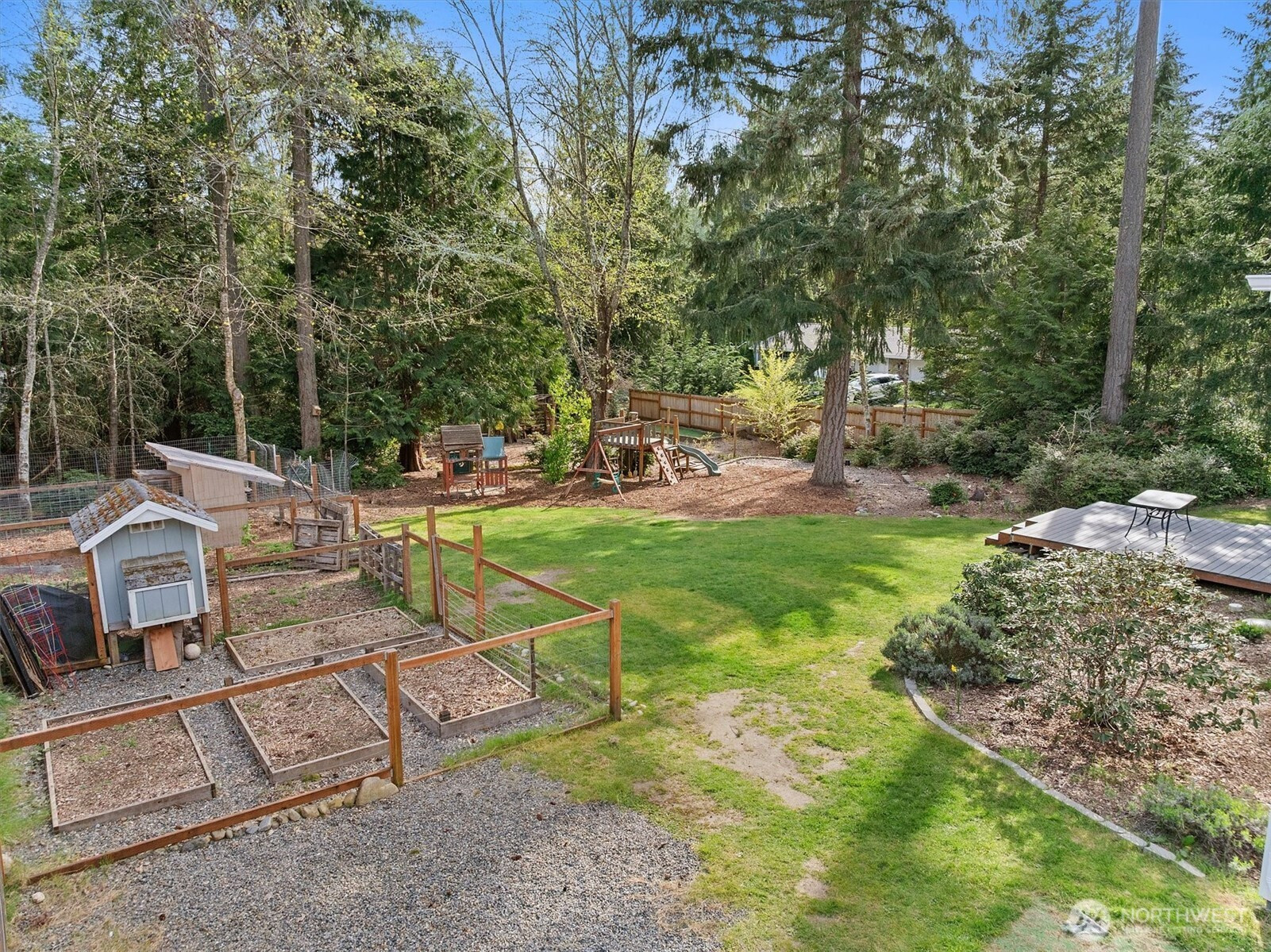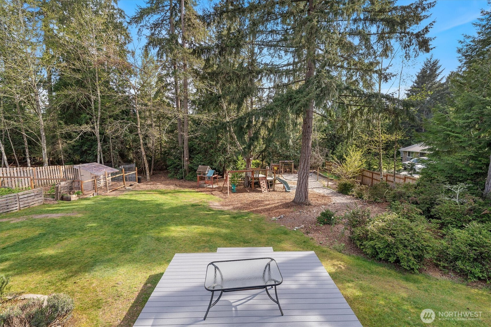 Fall in love with the home that has it all. Thoughtfully designed one-story on a sought-after private half acre lot at the end of a dead end street. Welcoming entry leads into a formal living room with vaulted ceilings & large windows drenching the space with natural light. Enjoy the architectural details such as arched doorways into the formal dining room off the kitchen. Host small & large gatherings effortlessly in this chef’s kitchen complete with crisp white cabinetry, stainless steel appliances, quartz countertops, stylish tile backsplash, modern wood open shelving, a skylight, & a large center island. An additional eating space flows into the living room with a cozy propane fireplace & access to the upper level deck. The primary suite features a walk-in closet, private access to the deck to enjoy a beverage as the sun rises, & a spa inspired 5 piece en-suite. There are two additional bedrooms & a full bath with a shower/tub combo. A walk in crawl space plus desirable oversized 3-car garage offer ample storage space. Enjoy the outdoors with this backyard retreat - exactly what yard dreams are made of! A dual level deck overlooks the large, terraced lawn, play structure, practice putting green, chicken coop, dedicated fire pit area & garden area. Relax under the tranquil trees in the built-in seating area surrounded by mature foliage. Recent upgrades include the roof, water heater, furnace & heat pump! Minutes to Uptown, HWY 16, amenities, schools & recreation. No HOA.