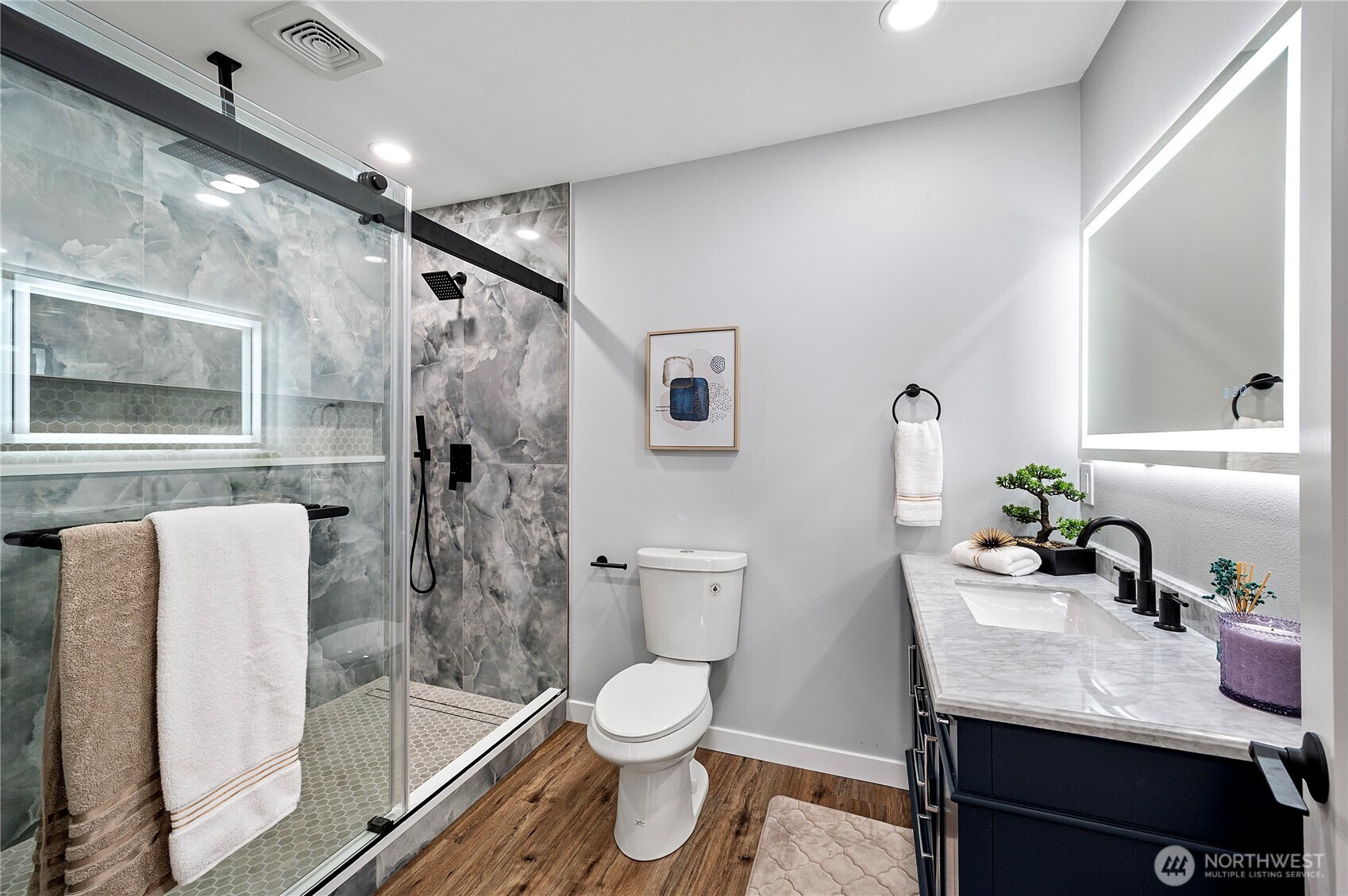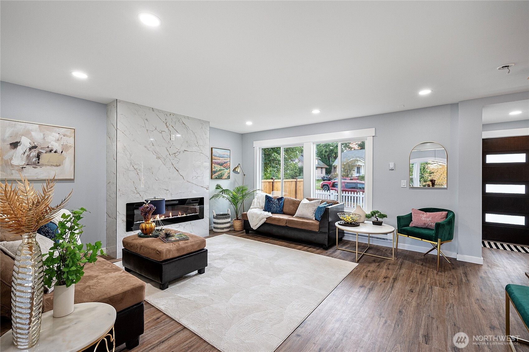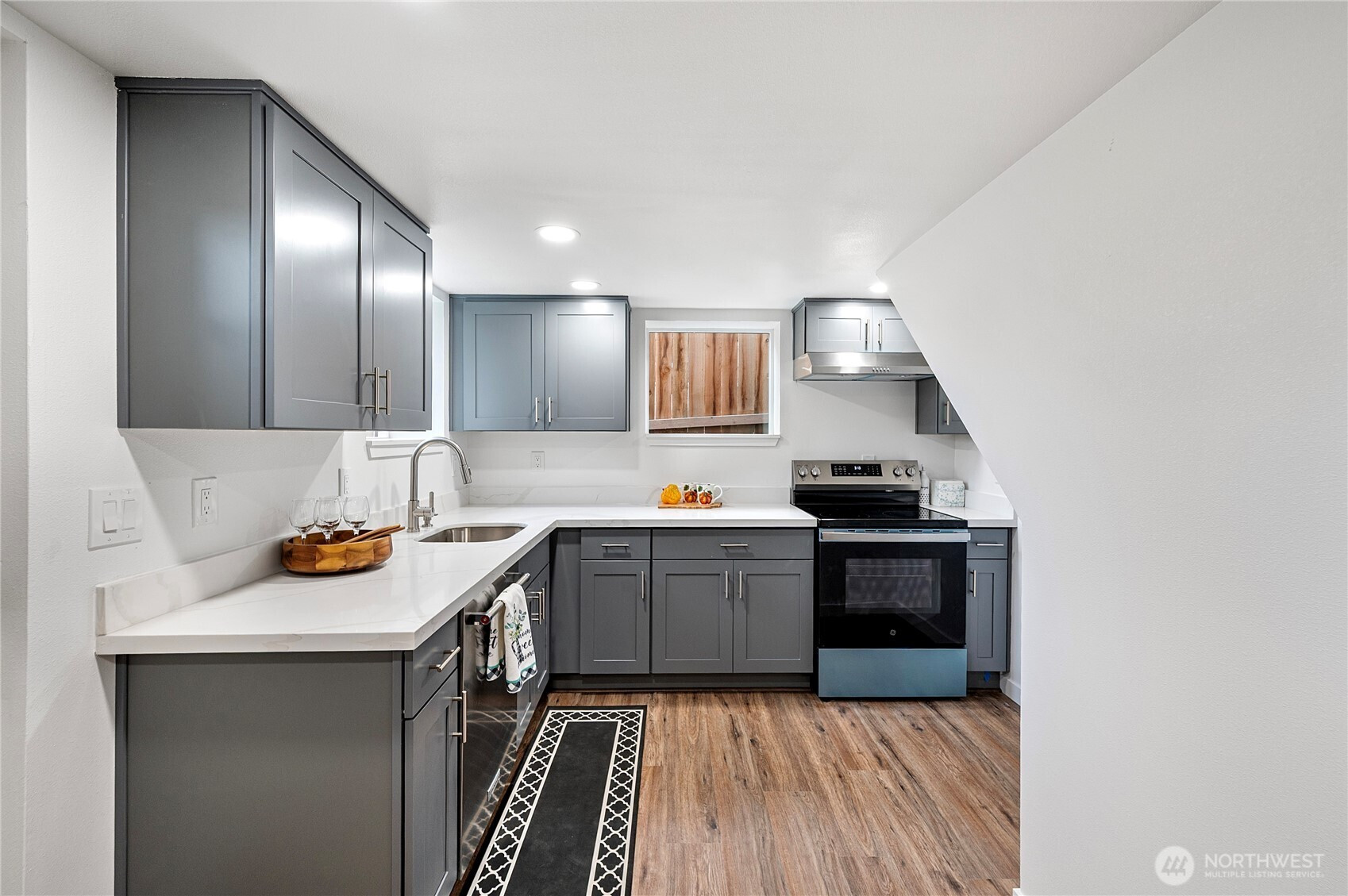 Completely Renovated Single Family Home with an ADU– Like New Construction! Every system and feature in this home has been thoughtfully updated. New roof & ridge vents system, 2 new water tanks, heating & electrical system, PEX plumbing, fiber-cement siding, energy-efficient windows, soundproof insulation. Durable LVP floors run throughout. The main level offers an open-concept layout, while both upper and lower kitchens are fully remodeled with stainless appliances, quartz countertops, and tile accents. 3 stories of flexible living—ideal for multi-generational living, guests, or business use. Large rear driveway for ample parking and a fully fenced backyard offering privacy and potential for a DADU.