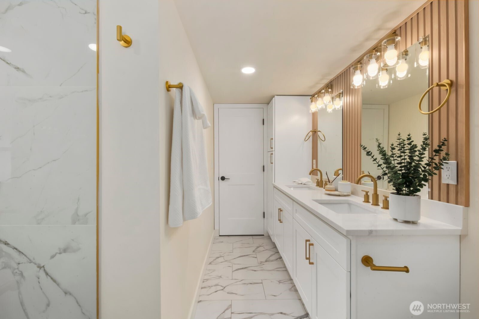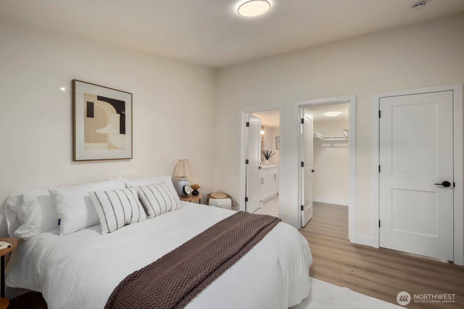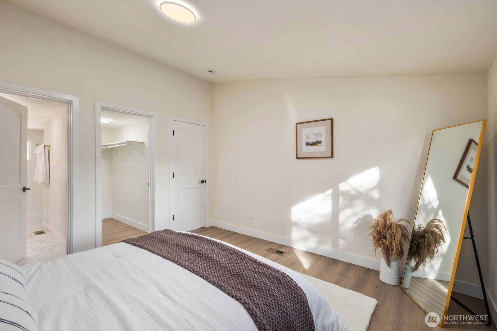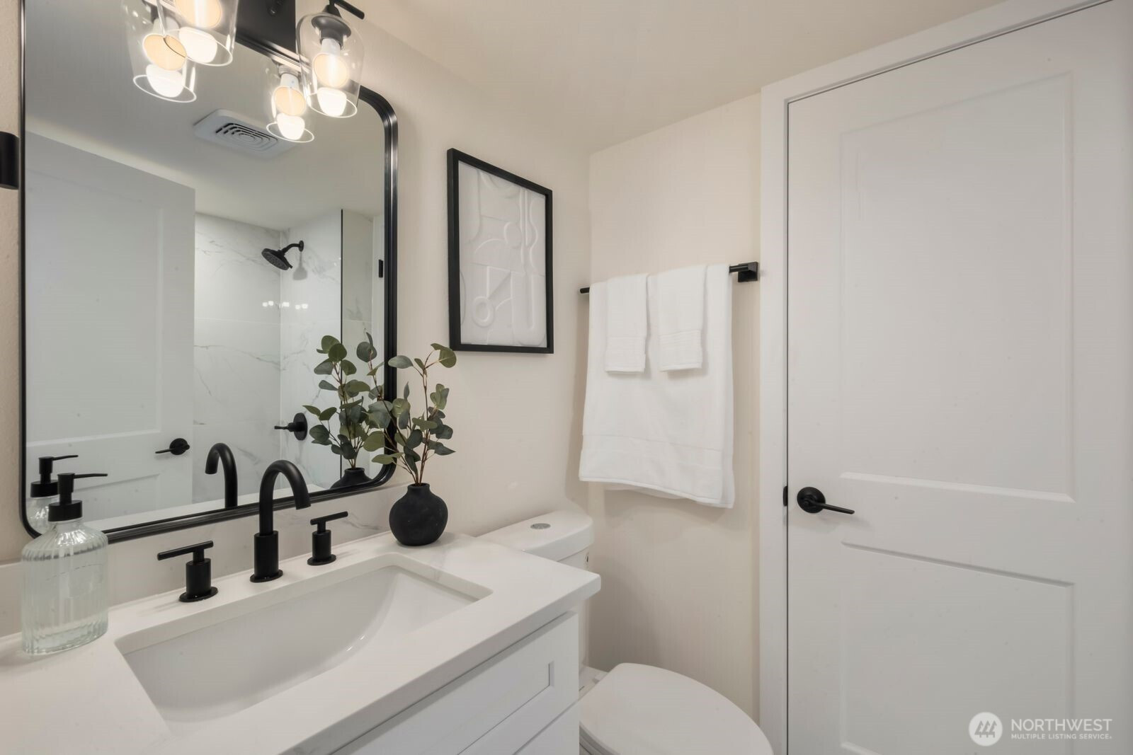 Fully reimagined and finished with intention, this beautifully remodeled 3 bed, 2 bath, 1,291 SF home rests on a private 0.29-acre lot framed by mature evergreens. A long driveway creates a striking approach and leads to gated access that opens for additional parking in the rear—ideal for guests, recreational vehicles, or added flexibility. Inside, vaulted ceilings enhance the open-concept design, filling the home with natural light and an airy, expansive feel. The kitchen is thoughtfully curated with high-end finishes, sleek cabinetry, stainless appliances, and a statement island designed for both everyday living and effortless entertaining. Wide-plank flooring flows throughout the main living areas, complemented by modern lighting and refined details at every turn. The primary suite offers a spa-inspired bath with elevated fixtures and clean, contemporary lines. Two additional bedrooms provide versatility for office, guests, or creative space. Step outside to the generous deck overlooking the fully fenced yard—private, peaceful, and ready for gatherings. A rare blend of thoughtful design, premium finishes, and usable outdoor space, all set on nearly a third of an acre.