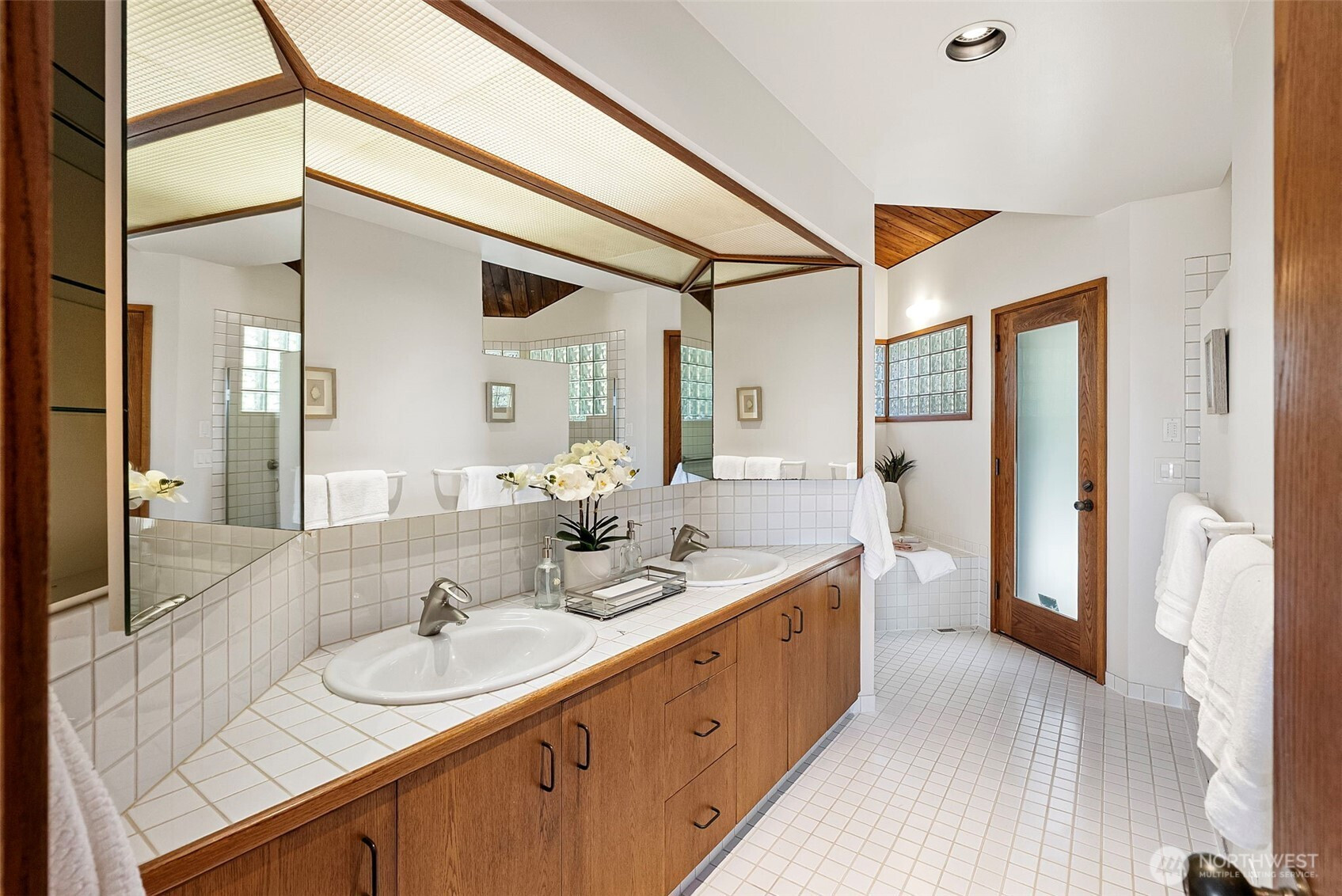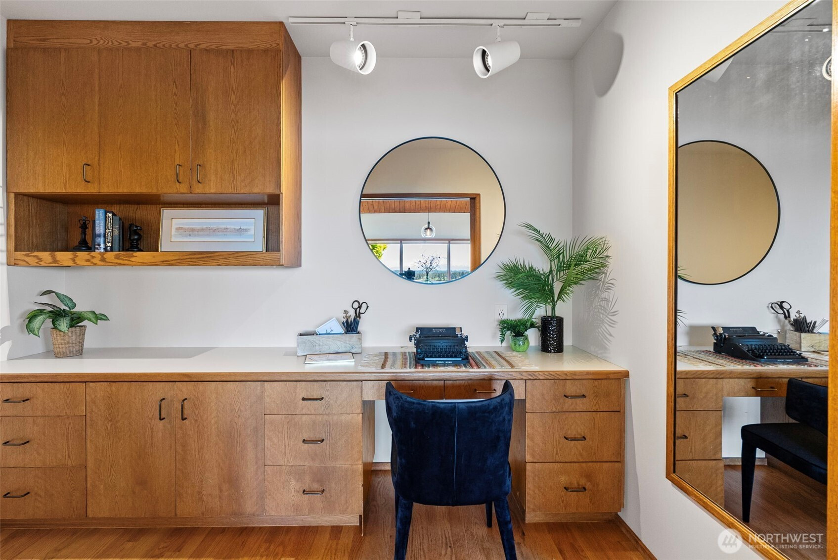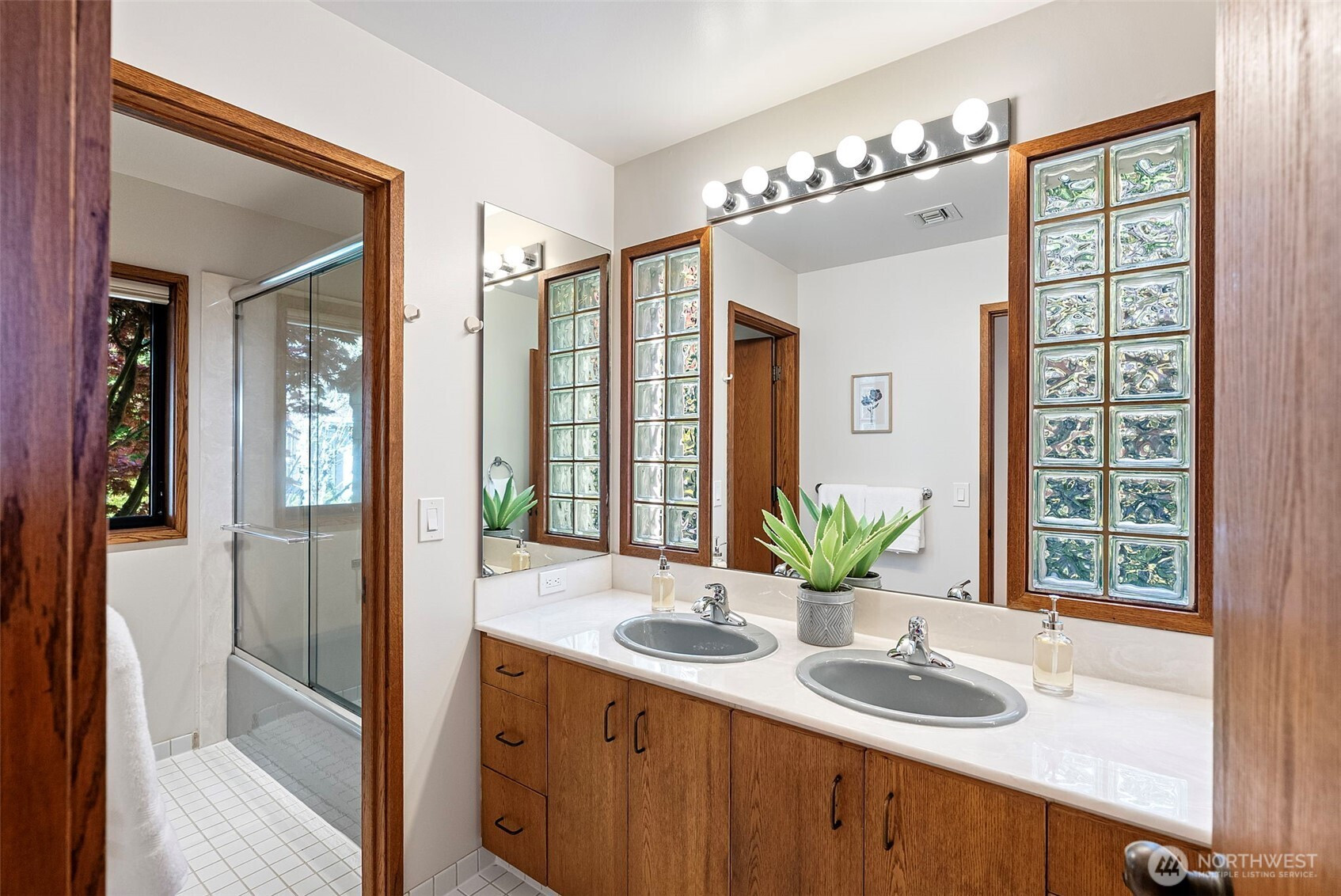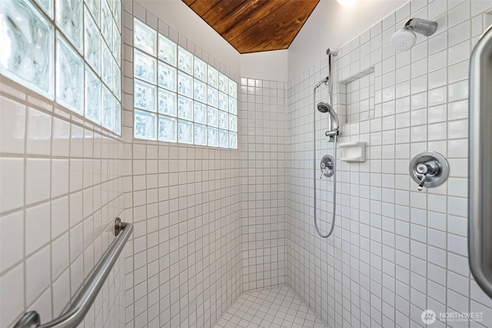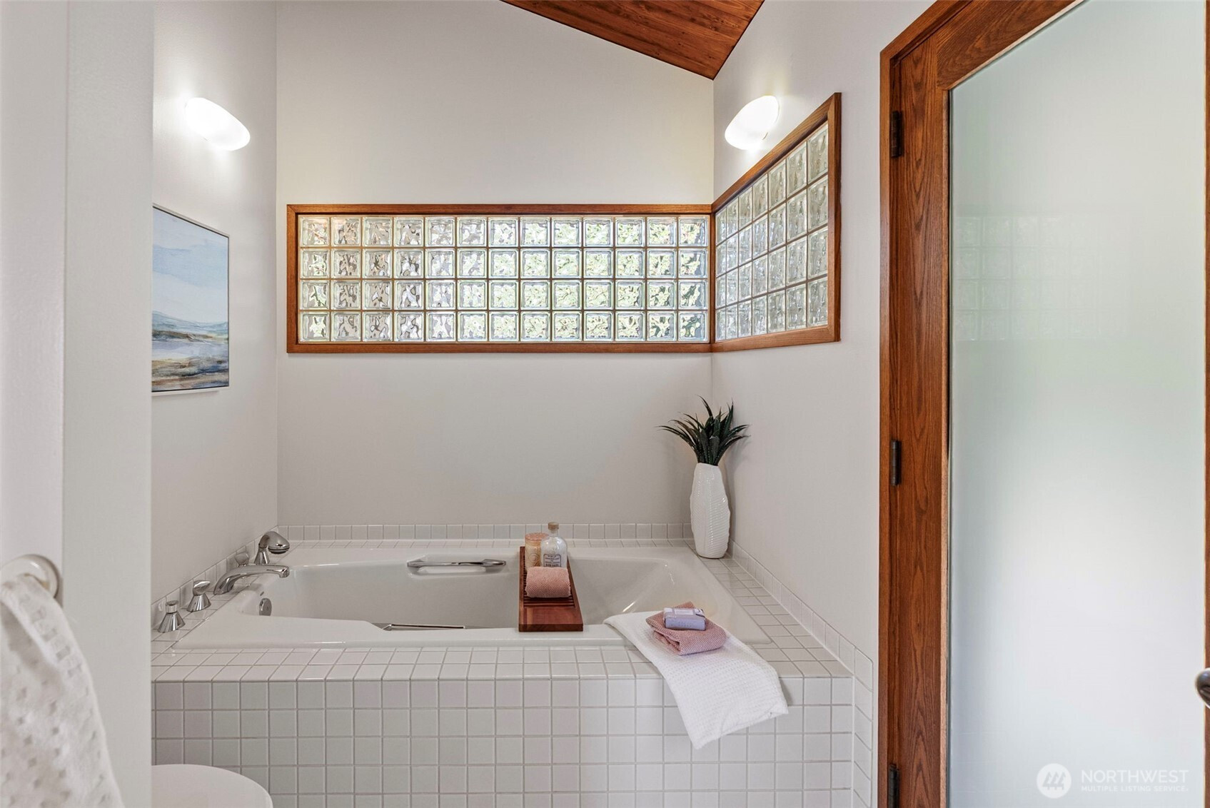 The Wagonfeld residence, an AIA award-winning design by renowned modernist architects Alan Liddle and Robert Jacklin, is positioned high on a bluff with sweeping views across Fox and McNeil Islands, Gig Harbor, Hale Passage, and the Olympic Mountains. A recorded view covenant ensures these vistas are yours forever. Vaulted tongue-and-groove pine ceilings, trestle beams, custom oak cabinetry, hardwood floors, and walls of glass define an interior built without compromise. A granite fireplace anchors the main living area, which has access to a view deck. Dining room, kitchen, a den with custom shelving, a bedroom and guest bath complete the main level. The kitchen features euro-style cabinetry, Corian counters, SubZero refrigerator, dual Dacor ovens, Bosch dishwasher, walk-in pantry, and breakfast nook opening to a front view patio. The formal dining room offers a wall of windows and French door to the patio. The primary suite is a private retreat with a wood-burning stove, custom walk-in closet, soaking tub, shower room and door opening to the rear gardens. Two additional upstairs bedrooms feature built ins. The lower level family room — with shoji screen panels, wet bar, and bath with shower — adapts easily to a guest suite or apartment. Outside, mature specimen trees frame the views, with raised planting beds, deer-proof fencing, and a tranquility garden with winding paths and built-in seating. This is a truly rare convergence of architecture, views, and landscape.