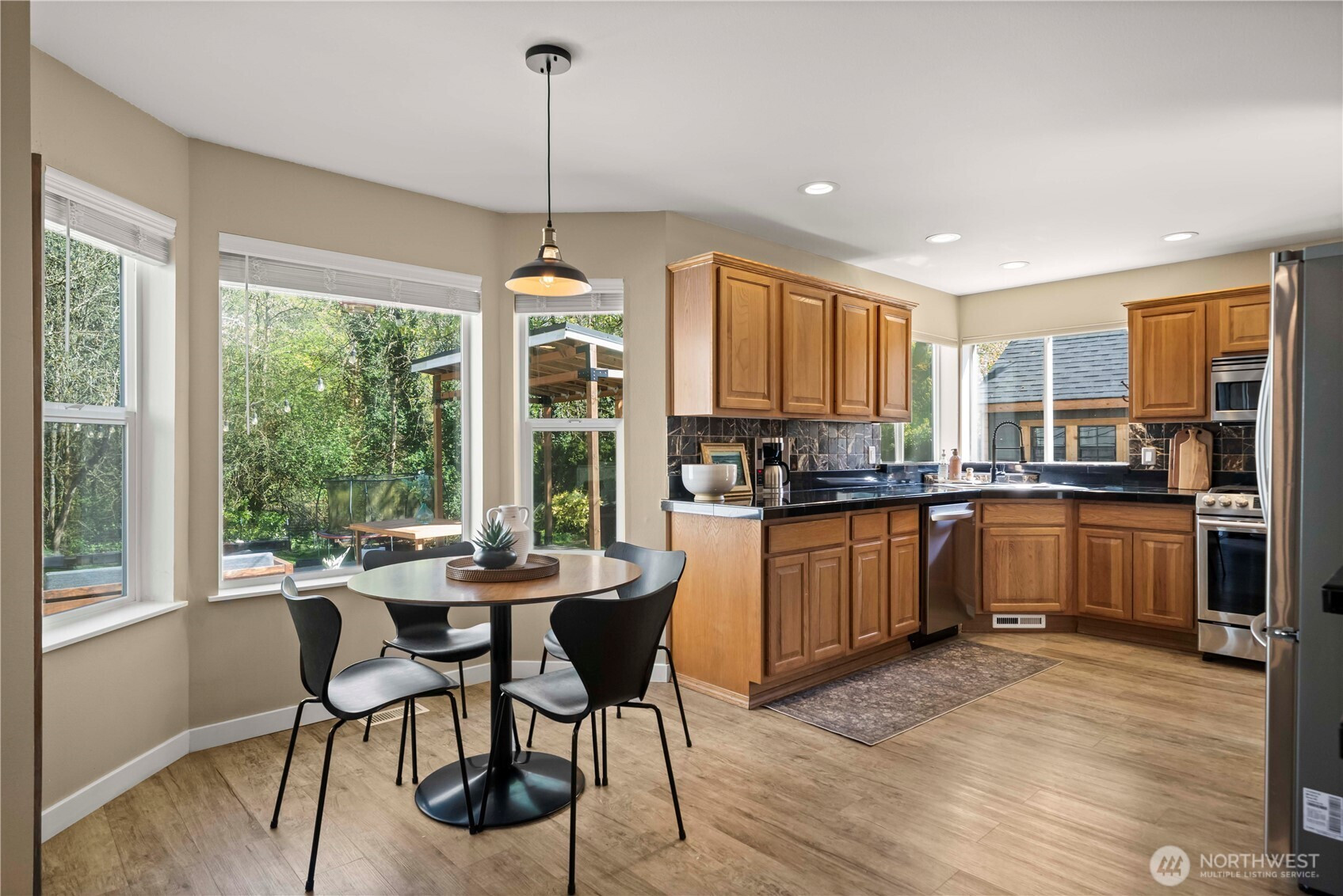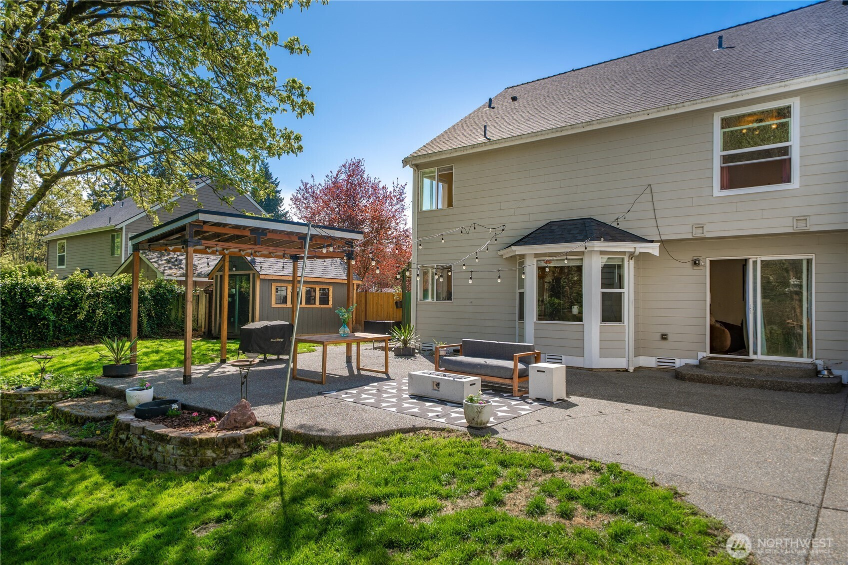 Incredible storybook home with a 900 sq ft DADU, offering a rare blend of charm, flexibility, and opportunity. Tucked away on a private, park like lot of more than half an acre at the end of a quiet dead end culdesac, this property feels like a hidden retreat surrounded by nature. The main home lives like a four bedroom plus office, filled with light, warmth, and thoughtful updates. Soaring ceilings, inviting formal living and dining spaces, and a beautifully connected kitchen and great room create a natural flow for everyday living. The oversized primary suite feels like a peaceful escape, complemented by two additional spacious bedrooms a bonus room and a full bath. Recent improvements include a newer roof, AC, select windows, and an updated powder bath. Step outside to a stunning patio overlooking the expansive yard, perfect for entertaining, relaxing, or enjoying the serene setting. A powered shed, RV parking, and attached two car garage with EV charger add both function and versatility.The detached, fully permitted DADU lives like a two bedroom home with open concept living, a large island, solar efficiency, and its own patio space. A separate partially finished area offers room to expand, create a studio, or design a private office. Ideal for multigenerational living, rental income, or long term investment, all in a prime location near schools, parks, shopping, dining, and easy commuter access. Your dream home awaits, come experience it today.