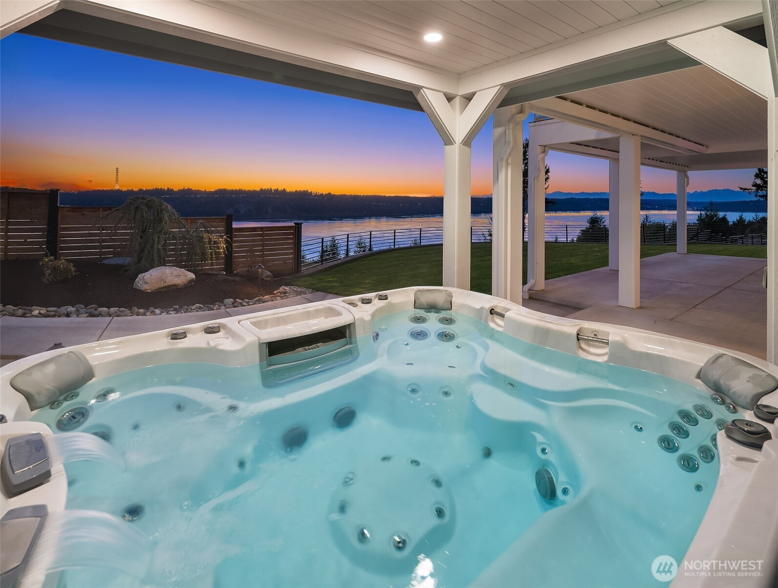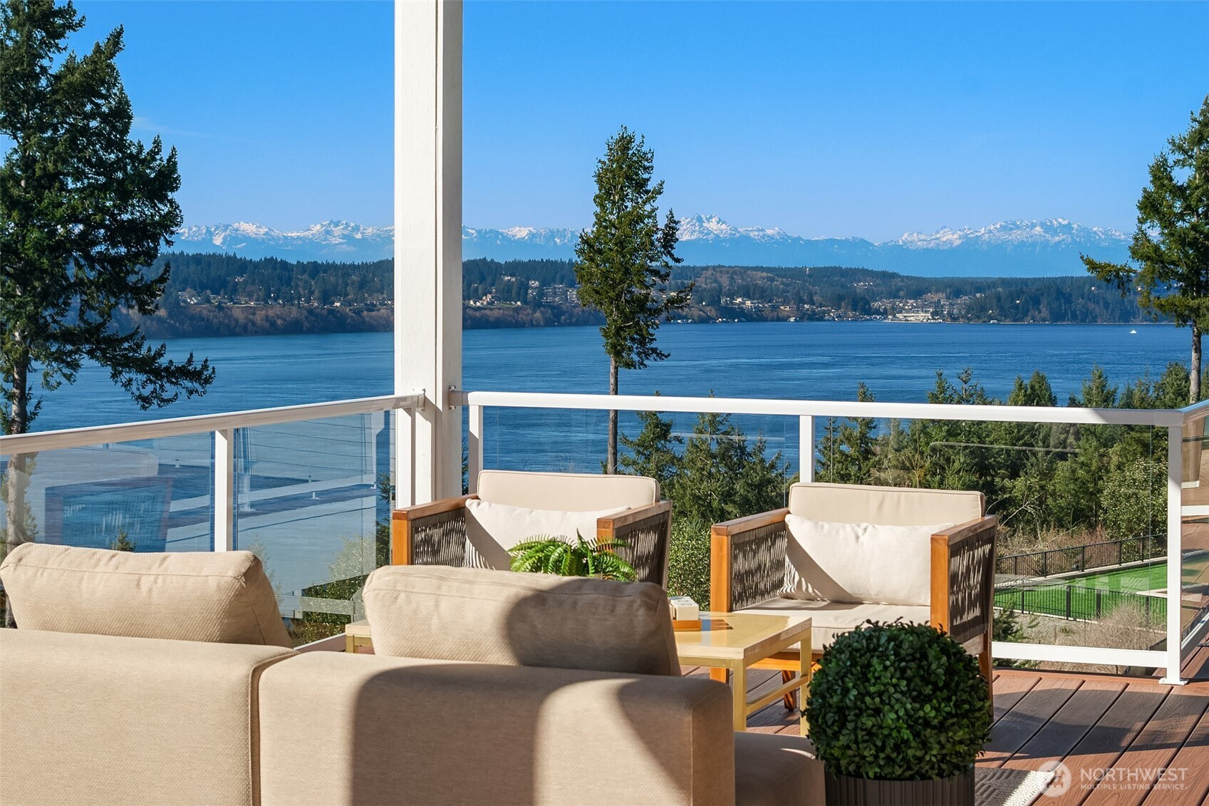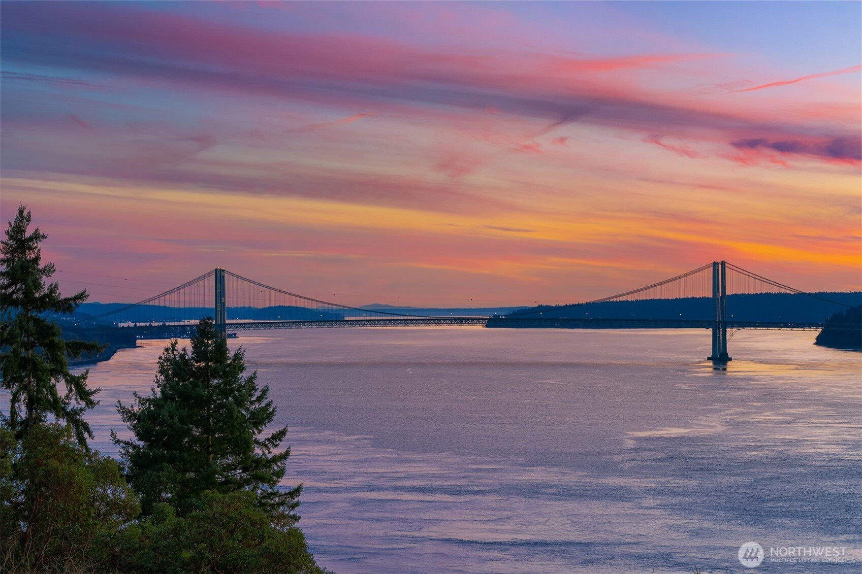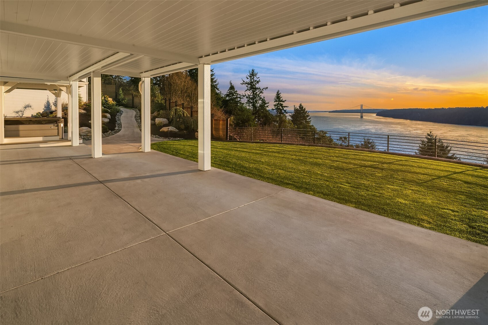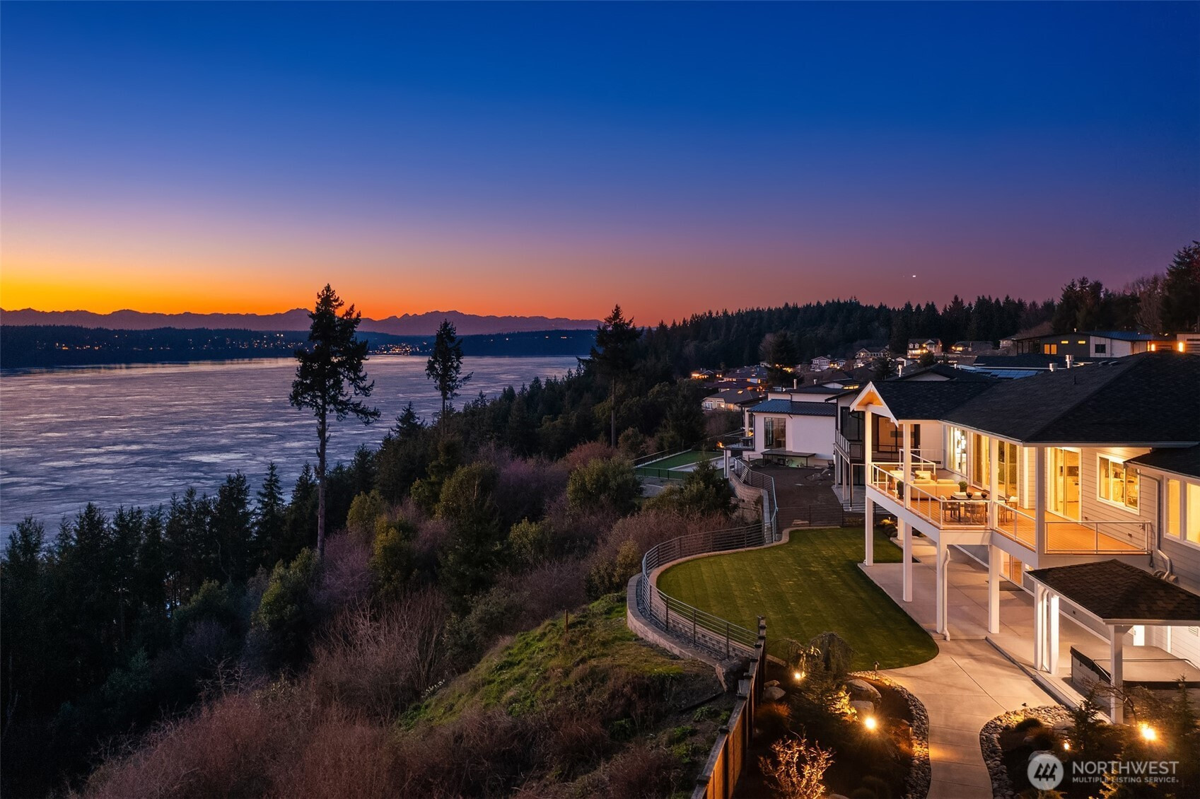 Welcome to the pinnacle of North Tacoma living. The WOW factor of this 2022-built home is second to none. You’ll wake up every day in awe of the Tacoma Narrows, Olympic Mountains, and the view into the heart of Gig Harbor. Your guests will arrive at the front door, and their jaws will drop at the panoramic West-facing view. You’ll park in the immaculate four-car garage with polished concrete floor, and your stress will melt away. The open concept main living room features vaulted ceilings and walls of glass leading out to the expansive view deck with heaters in the tongue-and-groove ceiling. Envision breaking bread with those you cherish the most in the spotless like-new kitchen. The main level primary wing offers a seamless flow from the bedroom to the spa-like bath, into the generous primary closet with access into the pristine laundry. With four additional bedrooms, two on main and two on the daylight lower level, there is space for everyone. The lower-level living room features more stunning views leading you to the patio and custom hot tub gazebo. Located at the end of the private, gated Narrows Ridge neighborhood, there is nothing like this picturesque property.