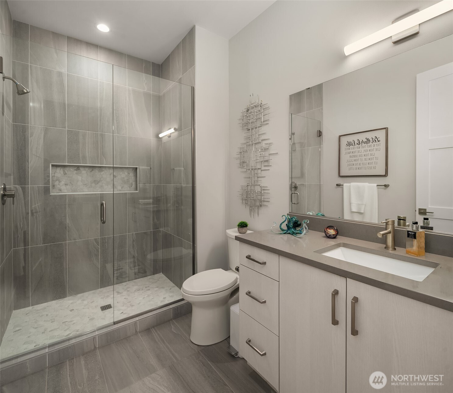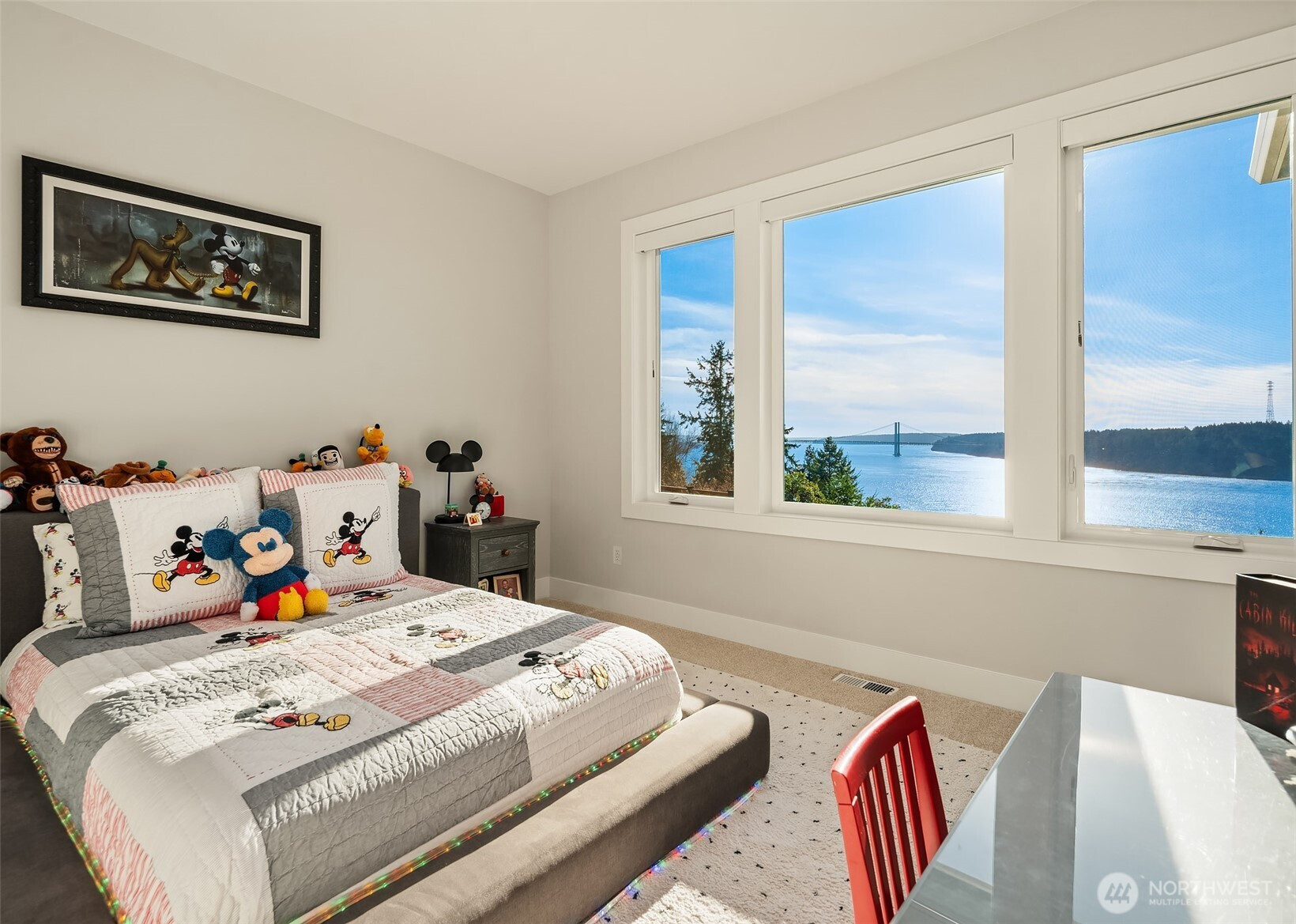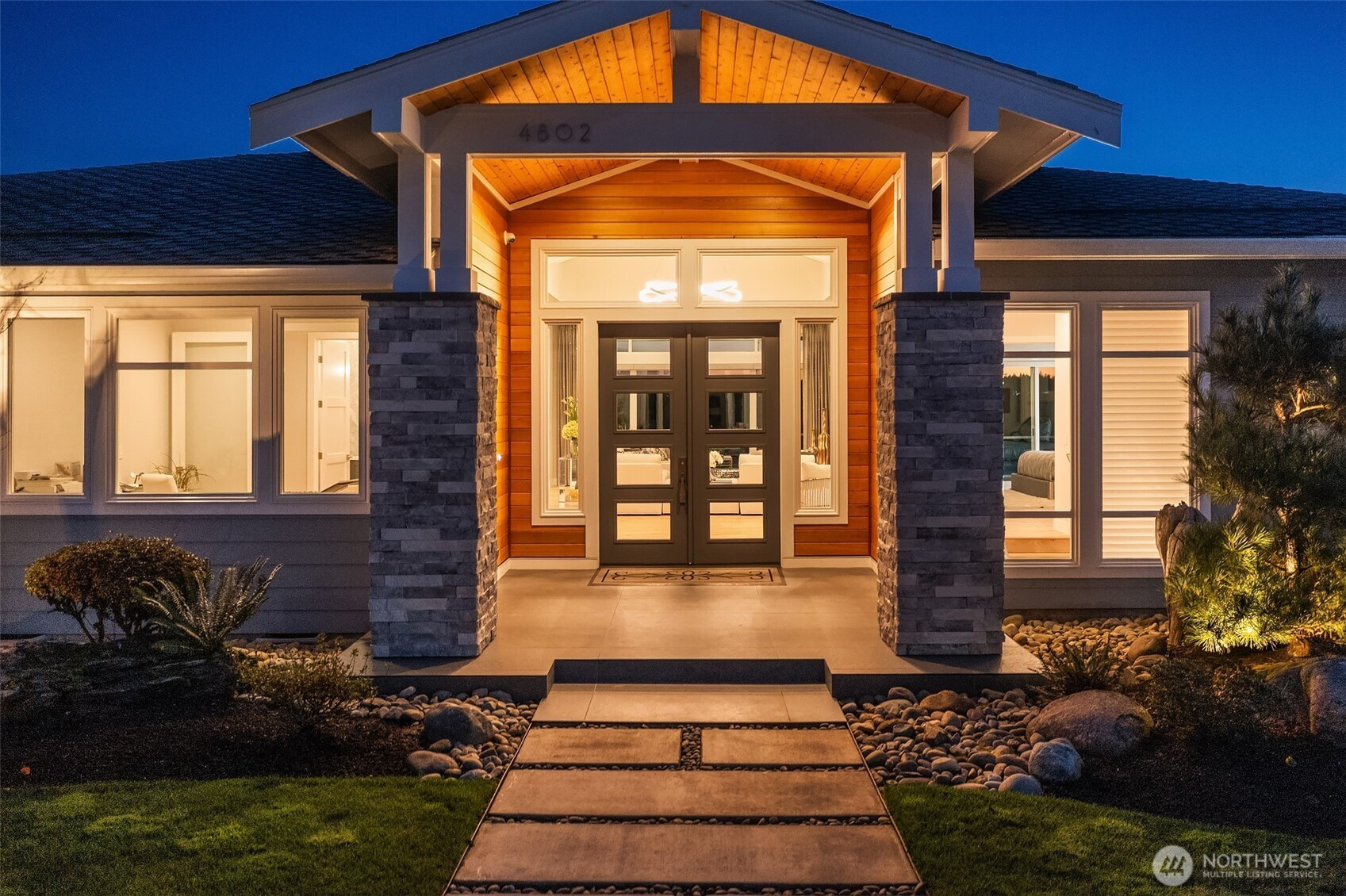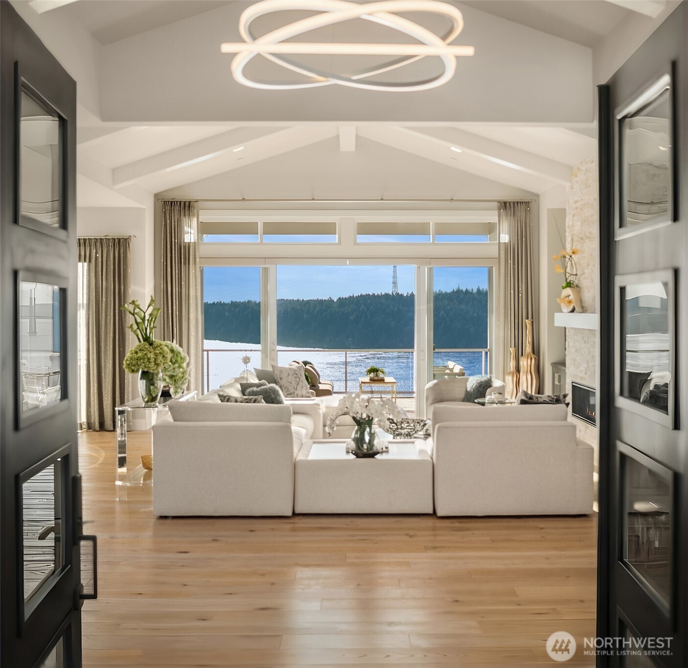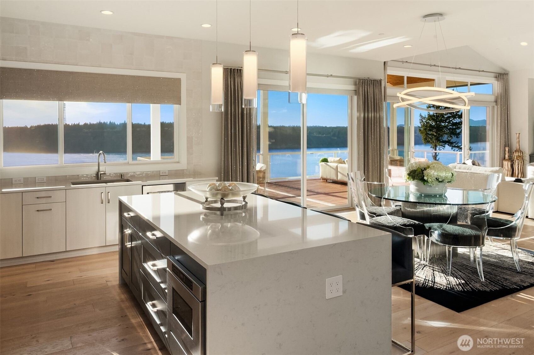 Welcome to the pinnacle of North Tacoma living. The WOW factor of this 2022-built home is second to none. You’ll wake up every day in awe of the Tacoma Narrows, Olympic Mountains, and the view into the heart of Gig Harbor. Your guests will arrive at the front door, and their jaws will drop at the panoramic West-facing view. You’ll park in the immaculate four-car garage with polished concrete floor, and your stress will melt away. The open concept main living room features vaulted ceilings and walls of glass leading out to the expansive view deck with heaters in the tongue-and-groove ceiling. Envision breaking bread with those you cherish the most in the spotless like-new kitchen. The main level primary wing offers a seamless flow from the bedroom to the spa-like bath, into the generous primary closet with access into the pristine laundry. With four additional bedrooms, two on main and two on the daylight lower level, there is space for everyone. The lower-level living room features more stunning views leading you to the patio and custom hot tub gazebo. Located at the end of the private, gated Narrows Ridge neighborhood, there is nothing like this picturesque property.