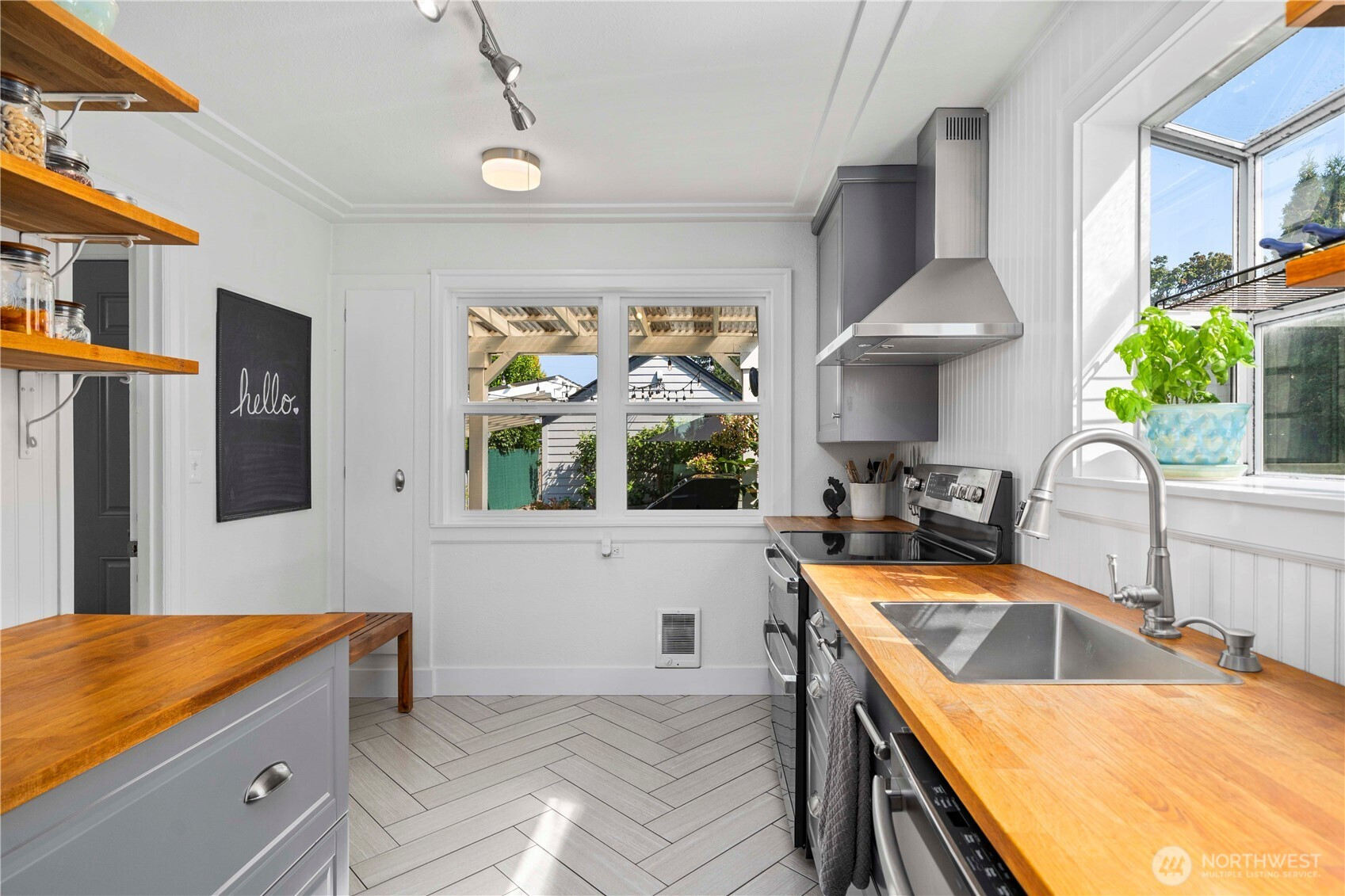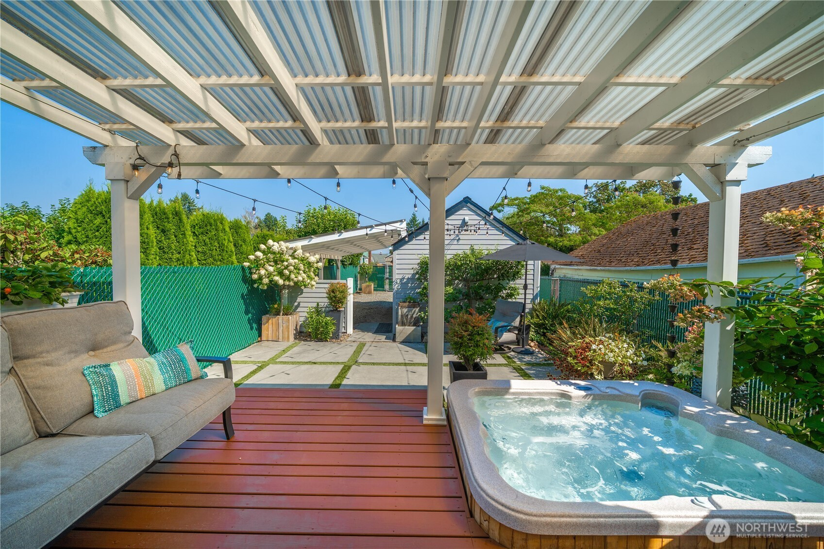 Stunning Tacoma oasis! First time on the market in over 20yrs, this beautiful 3bd/1.5bth Craftsman features gorgeous original hardwoods, new roof & skylights, new PEX plumbing, new sewer line, new water main, new windows, updated electrical, new WH, new heat pump & more! Beautifully updated kitchen w/Custom cabinets, SS applncs, double-oven range, butcher-block counters & herringbone tiled floors. Enjoy fresh blueberries beside the front-yard river rock fountain, no-mow turf & mature plantings. Serene backyard w/Covered deck, hot tub & plenty of space to grill & entertain. Automated gated alley access, rebuilt garage, carport, garden shed & opportunity for a DADU. Absolutely turn-key & ultra low-maintenance. All appliances stay. Must See!