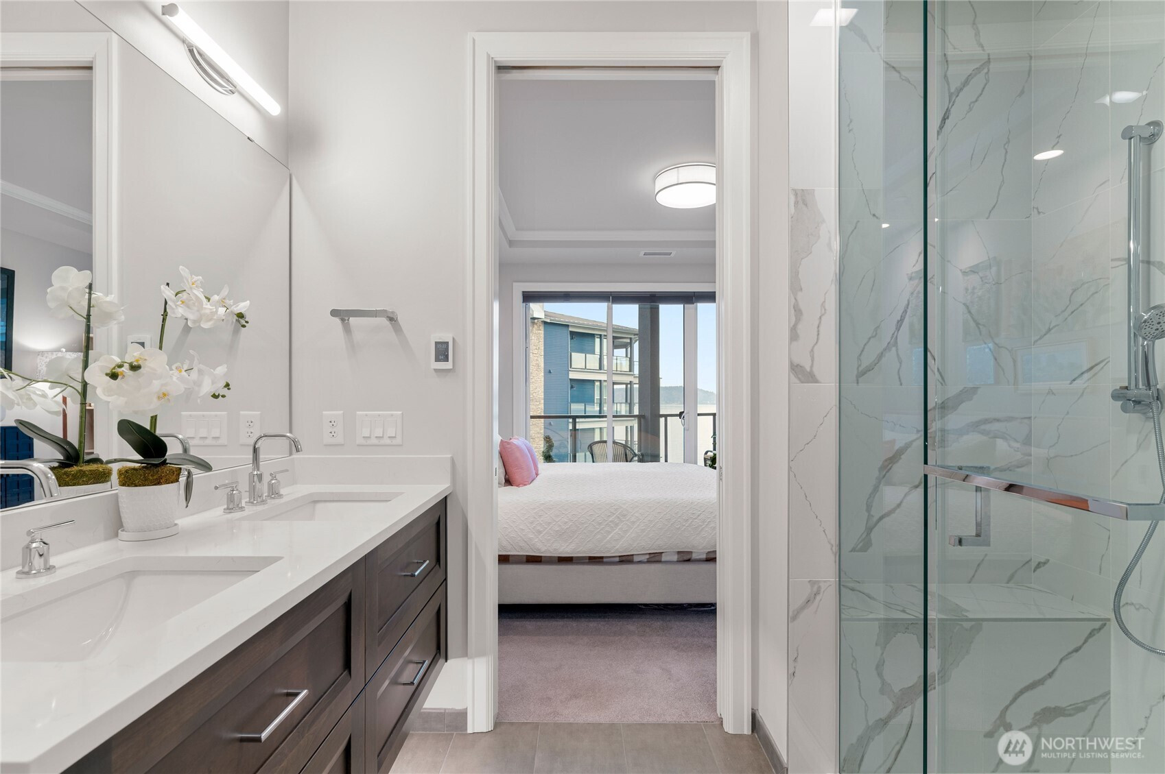 From sunrise balcony views to evenings at Pt. Ruston’s shops, dining, and cinema—this waterfront home places lifestyle at the center. This secure residence is refined elegance with natural light. The stunning great room features tray ceilings, an electric fireplace, and a covered balcony with views. The chef’s kitchen impresses with Bosch appliances, quartz counters, rich cabinetry, pull-out storage, and a generous walk-in pantry with a wine bar. Retreat to the spa-like primary suite with a private view balcony and a walk-in closet. Includes a flexible den, stylish guest suite, luxe 5-piece bath, abundant storage, a private storage room, and two secure garage parking spaces. Ruston’s vibrant shops, restaurants, and cinema await.