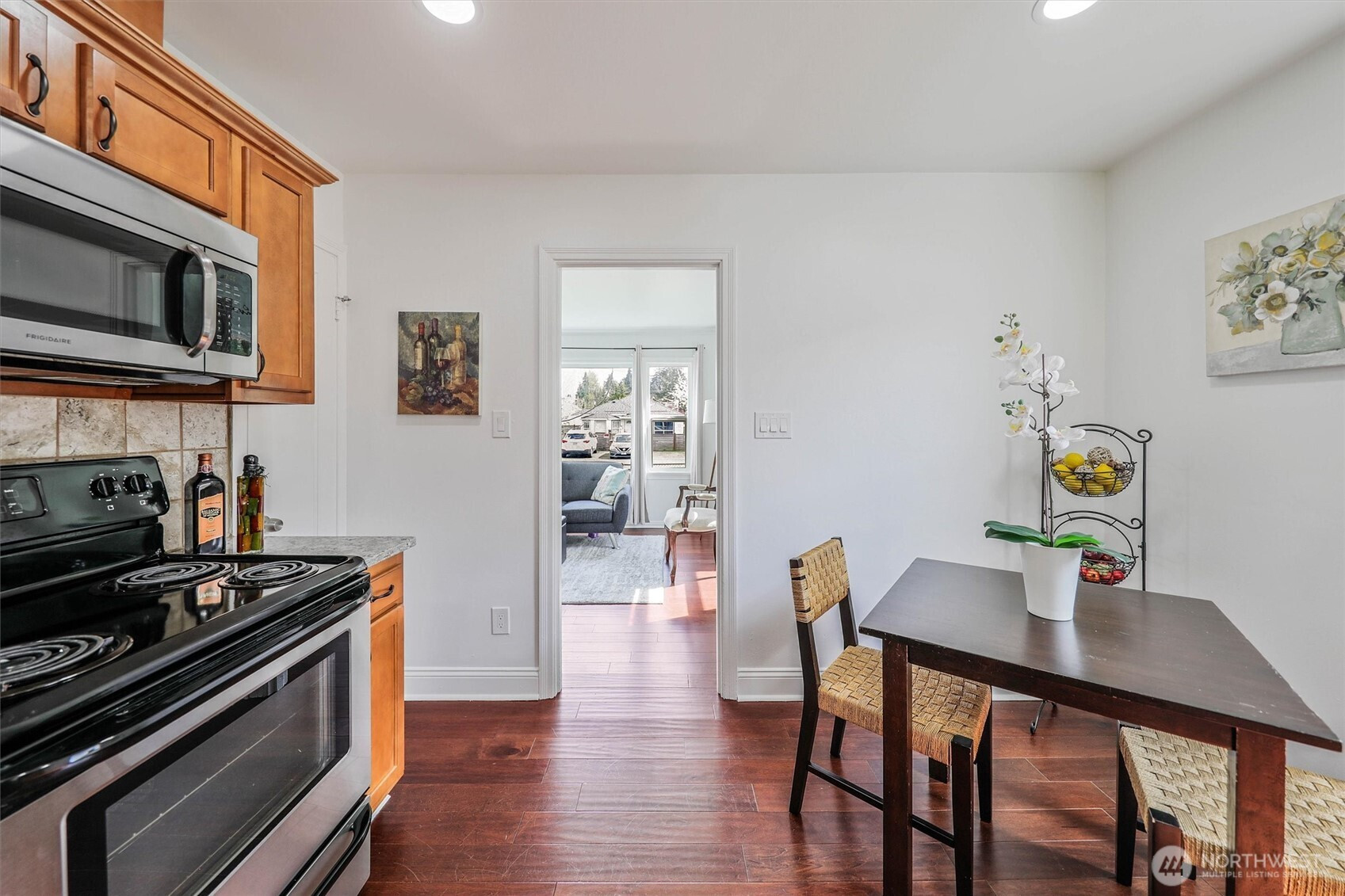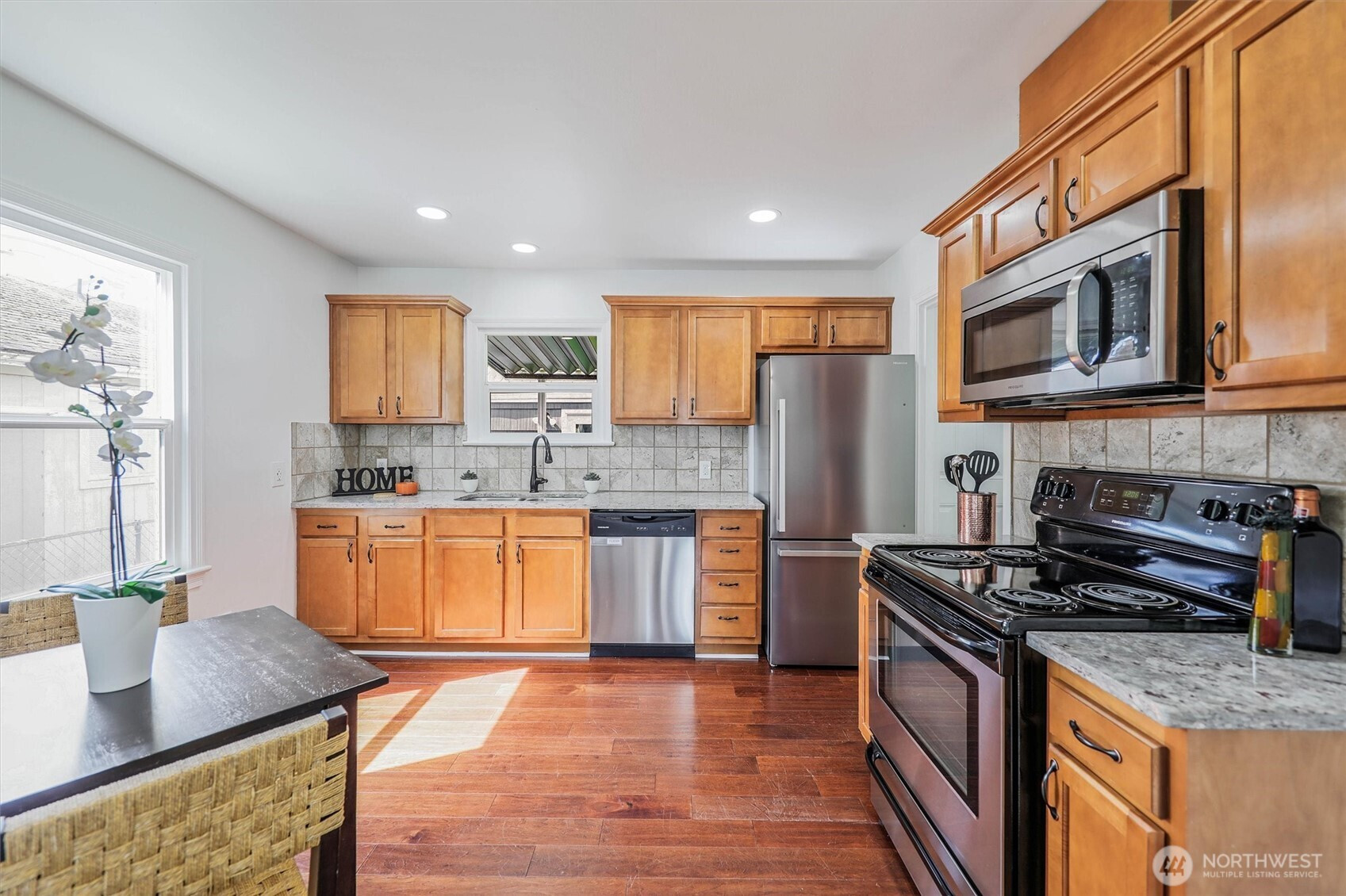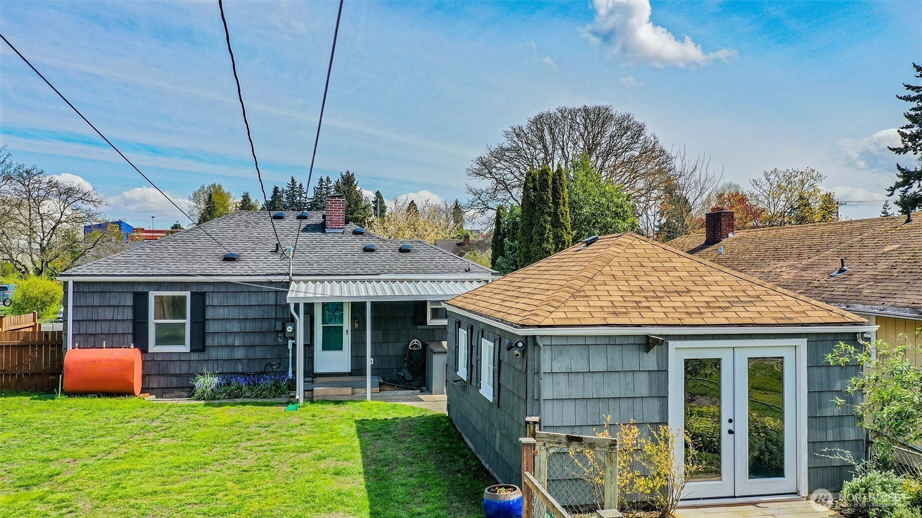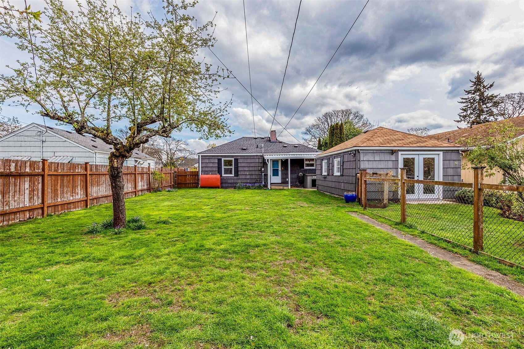 Charming rambler full of character and warmth! Lovingly maintained and move-in ready, this home features updated paint, windows, and hardwood flooring in the living room and kitchen. The newer kitchen shines with designer cabinetry, granite countertops, and stainless-steel appliances—perfect for everyday living and entertaining.Enjoy a light-filled interior with stylish finishes and a newer bathroom complete with a tiled shower, updated vanity, and granite counter. Step outside to a fully fenced yard with garden space, fruit trees, and a detached garage—currently used as a workshop—offering flexible space for hobbies, a home gym, or additional storage. Situated on a spacious lot with alley access and exciting DADU potential, this property offers both charm and opportunity. Minutes to Tacoma Mall and I-5. Must See!