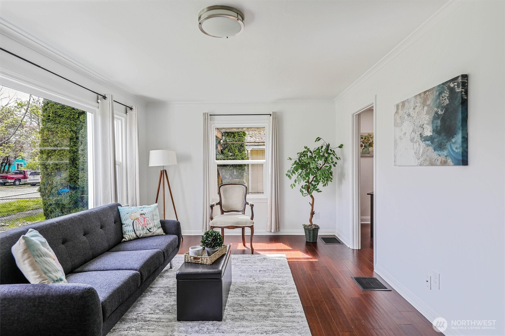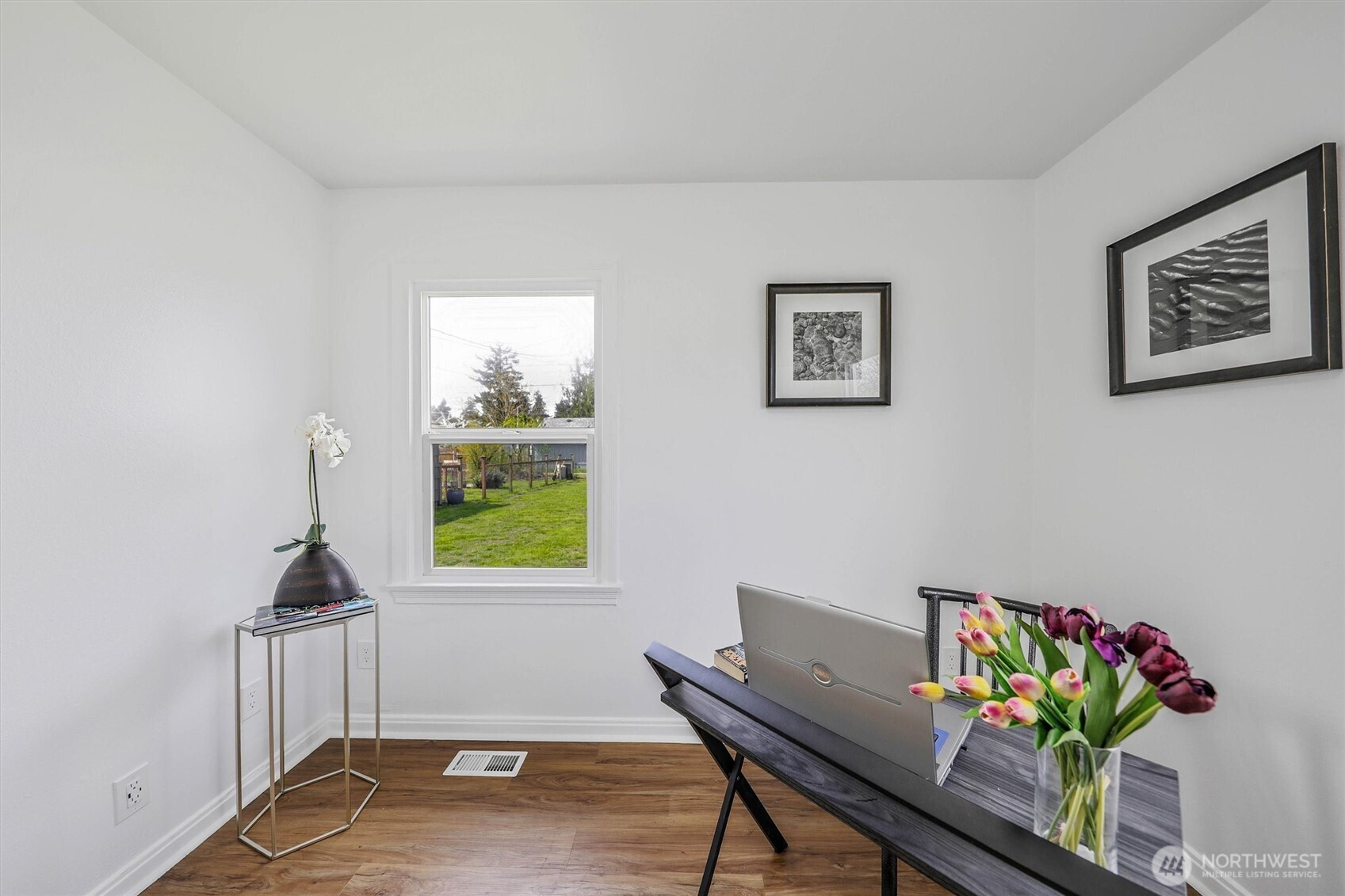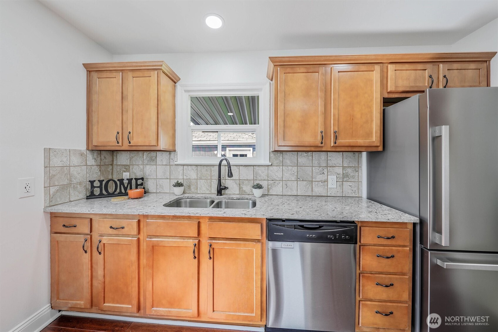 Charming rambler full of character and warmth! Lovingly maintained and move-in ready, this home features updated paint, windows, and hardwood flooring in the living room and kitchen. The newer kitchen shines with designer cabinetry, granite countertops, and stainless-steel appliances—perfect for everyday living and entertaining.Enjoy a light-filled interior with stylish finishes and a newer bathroom complete with a tiled shower, updated vanity, and granite counter. Step outside to a fully fenced yard with garden space, fruit trees, and a detached garage—currently used as a workshop—offering flexible space for hobbies, a home gym, or additional storage. Situated on a spacious lot with alley access and exciting DADU potential, this property offers both charm and opportunity. Minutes to Tacoma Mall and I-5. Must See!