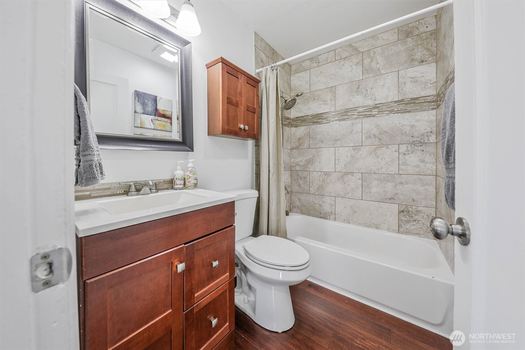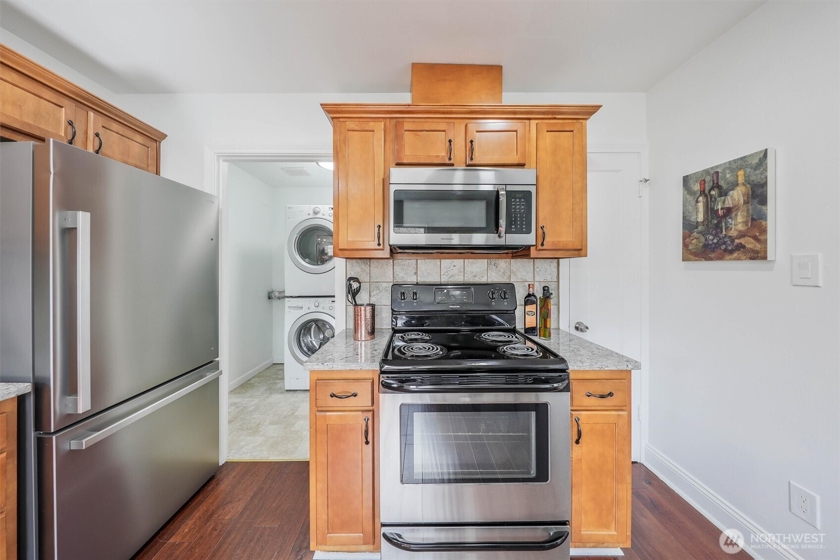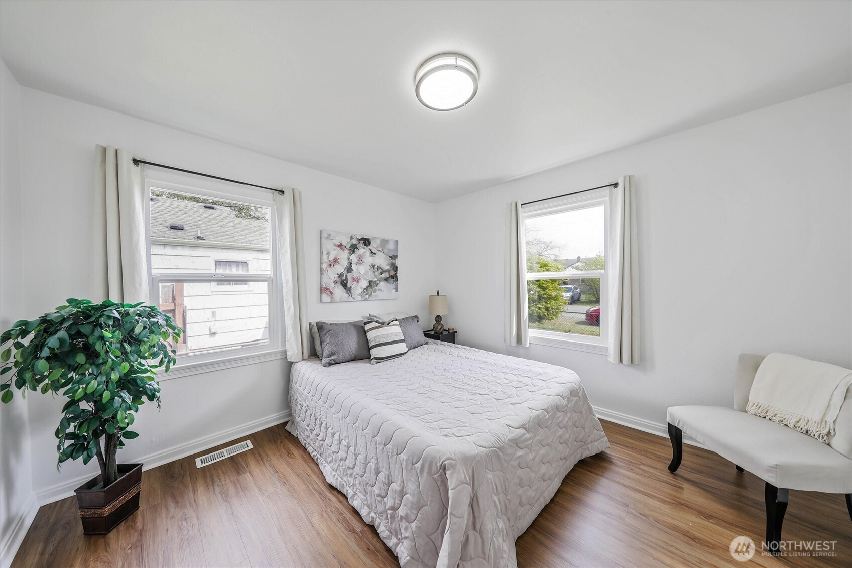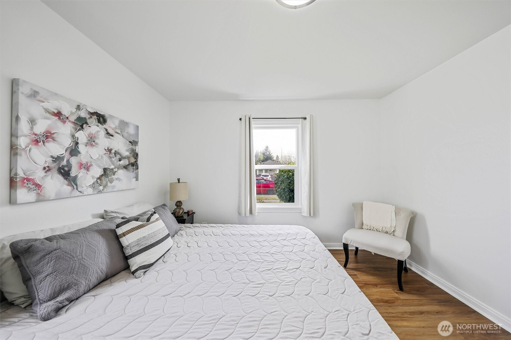 Charming rambler full of character and warmth! Lovingly maintained and move-in ready, this home features updated paint, windows, and hardwood flooring in the living room and kitchen. The newer kitchen shines with designer cabinetry, granite countertops, and stainless-steel appliances—perfect for everyday living and entertaining.Enjoy a light-filled interior with stylish finishes and a newer bathroom complete with a tiled shower, updated vanity, and granite counter. Step outside to a fully fenced yard with garden space, fruit trees, and a detached garage—currently used as a workshop—offering flexible space for hobbies, a home gym, or additional storage. Situated on a spacious lot with alley access and exciting DADU potential, this property offers both charm and opportunity. Minutes to Tacoma Mall and I-5. Must See!