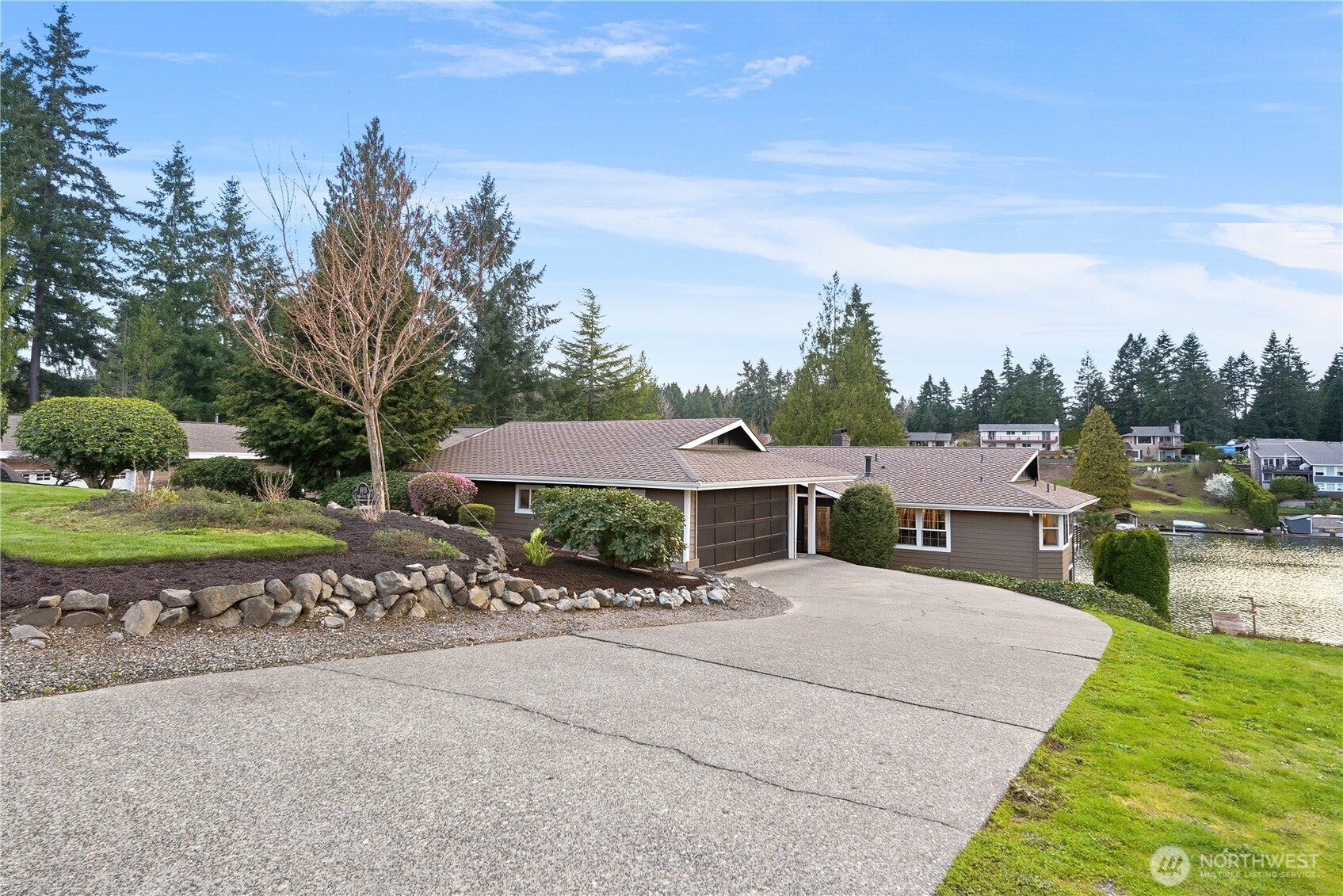 Experience refined waterfront living in this fully reimagined Lake Tapps retreat, where high-end design meets effortless indoor-outdoor living. Thoughtfully remodeled throughout, this 3-bedroom, 2.5-bath home showcases exceptional craftsmanship and a layout designed for both everyday comfort and elevated entertaining. The chef’s kitchen is a true centerpiece, featuring quartz and granite countertops, an abundance of prep space, and an oversized bar that comfortably seats 6–8, perfect for gathering. Kitchen Aid and DSC appliances elevate your kitchen, prep sink. Formal living and dining spaces offer timeless appeal with a gas fireplace, while the expansive rec room with its own fireplace and game area creates an ideal setting for hosting. Seamless access to covered decks from both levels invites year-round enjoyment, overlooking a professionally manicured lawn and exceptional waterfront setting. The outdoor experience is unmatched, complete with a gazebo featuring a built-in bar, hot tub, and a concrete dock with a private boat slip—designed for unforgettable lake days. The oversized primary suite offers a true retreat with sweeping lake views, a spa-inspired bath, & an oversized walk-in closet. Located in the desirable Jenks Point community with convenient access for commuting, this is a rare opportunity to own a turnkey waterfront home where every detail has been thoughtfully elevated. Sumner-Bonney Lake School District. Access to Jenks Point Park & amenities.