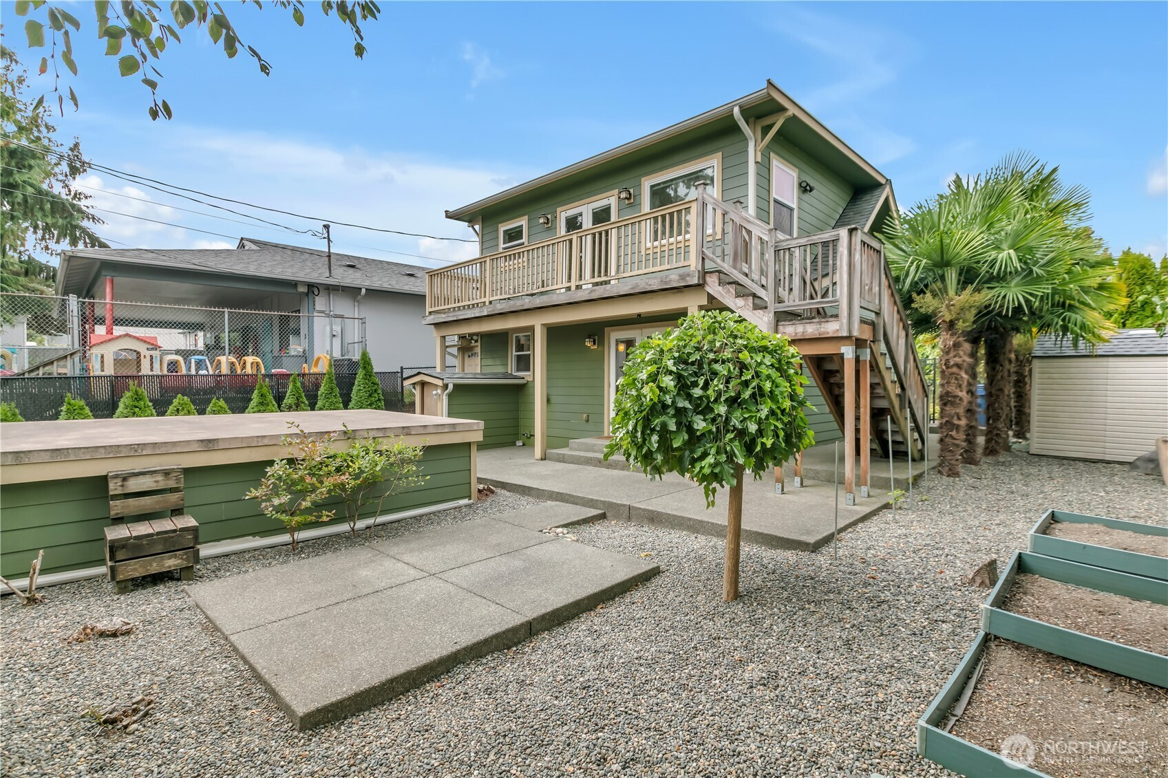 Pearl Street Beauty! It speaks character from the min you walk up to the front door. Highly desireable area in Ruston on the main strip. Two bedrooms and 1.75 bathrooms. Upper level is the primary suite with a private deck with french doors. Easy to maintain landscaping. Great potential for home buisness with stairs or ramp access, handicap accessible bathroom. Possible commercial use with Pearl District zoning, buyer to verify. Fully fenced front and back yard. Low maintenance yard. Outbuilding and detached garage for storage only.