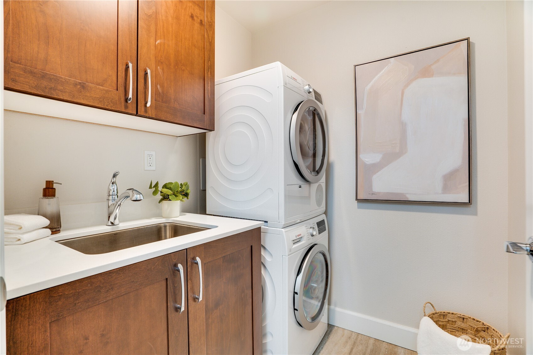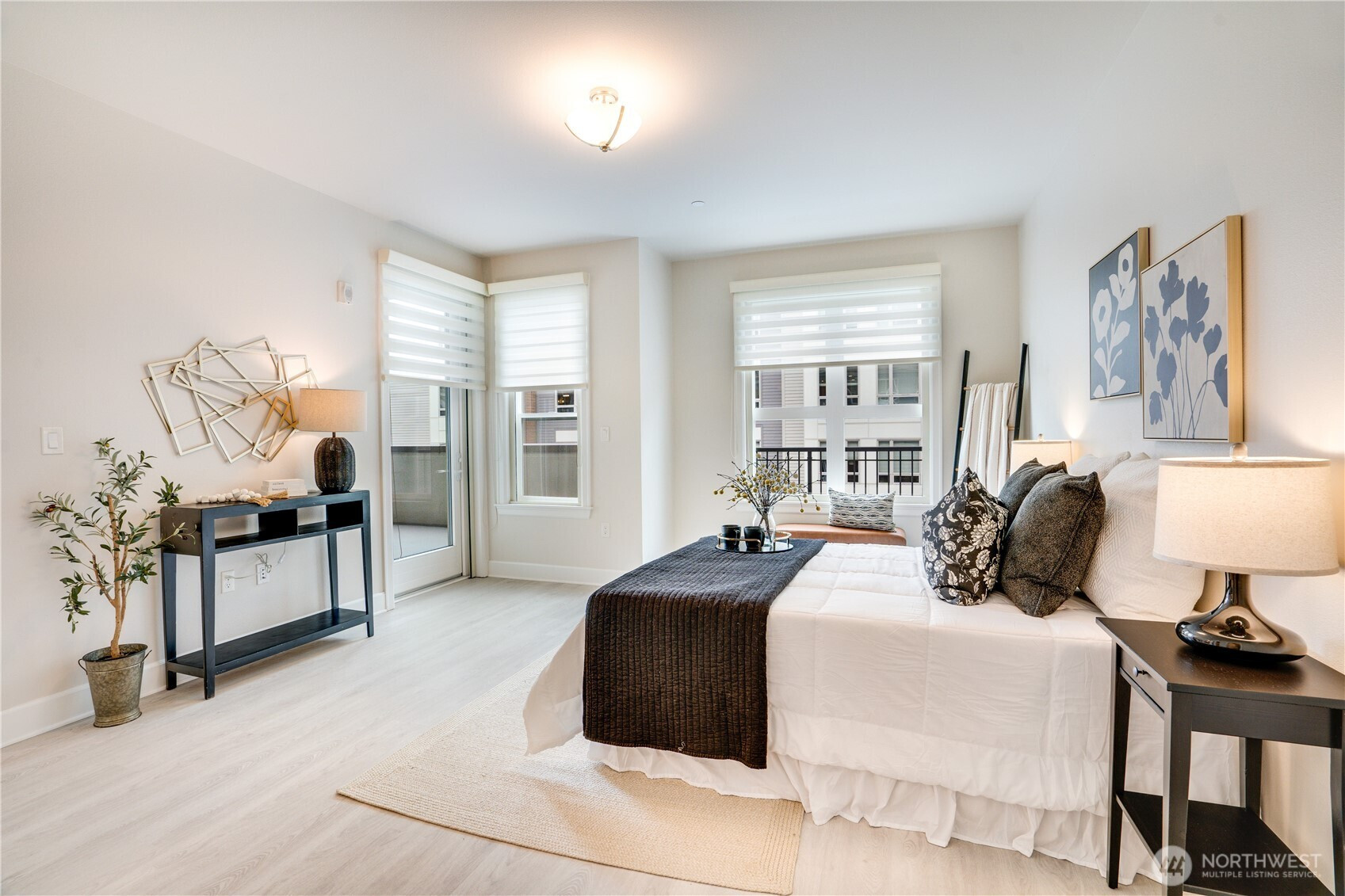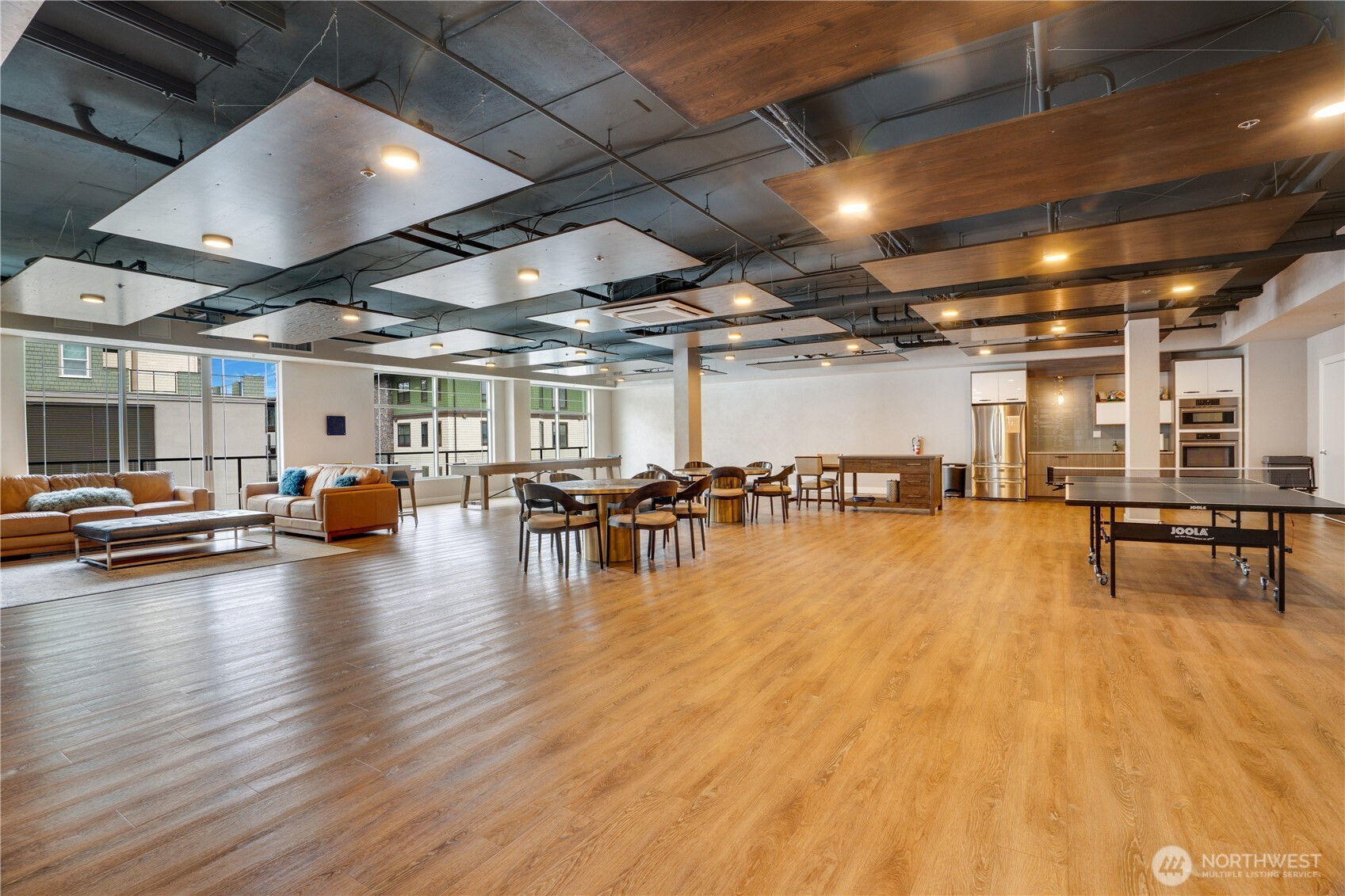 Live in the heart of Point Ruston, where waterfront strolls, dining, shopping, and entertainment are just steps from your door. This 5th-floor residence offers a rare connection to the beautifully designed courtyard, complete with a putting green & bocce ball, creating an extension of your living space beyond the walls of the home. Inside, the light-filled living area features a cozy gas fireplace & flows seamlessly to an exceptional 258 sq ft patio deck, ideal for relaxing, entertaining, or enjoying the energy of the surrounding community. New laminate flooring has just been installed throughout, giving the home a fresh, modern feel. The kitchen is thoughtfully designed with quartz countertops, stainless steel appliances, & bar seating that works perfectly for both everyday living & hosting guests. The spacious primary suite includes an ensuite bath & a generous walk-in closet, while the second bedroom is conveniently located near a full bath. In-unit laundry room includes a utility sink & storage. Residents also enjoy expansive indoor and outdoor community spaces designed for larger gatherings. Two garage parking spaces and a storage unit are included.