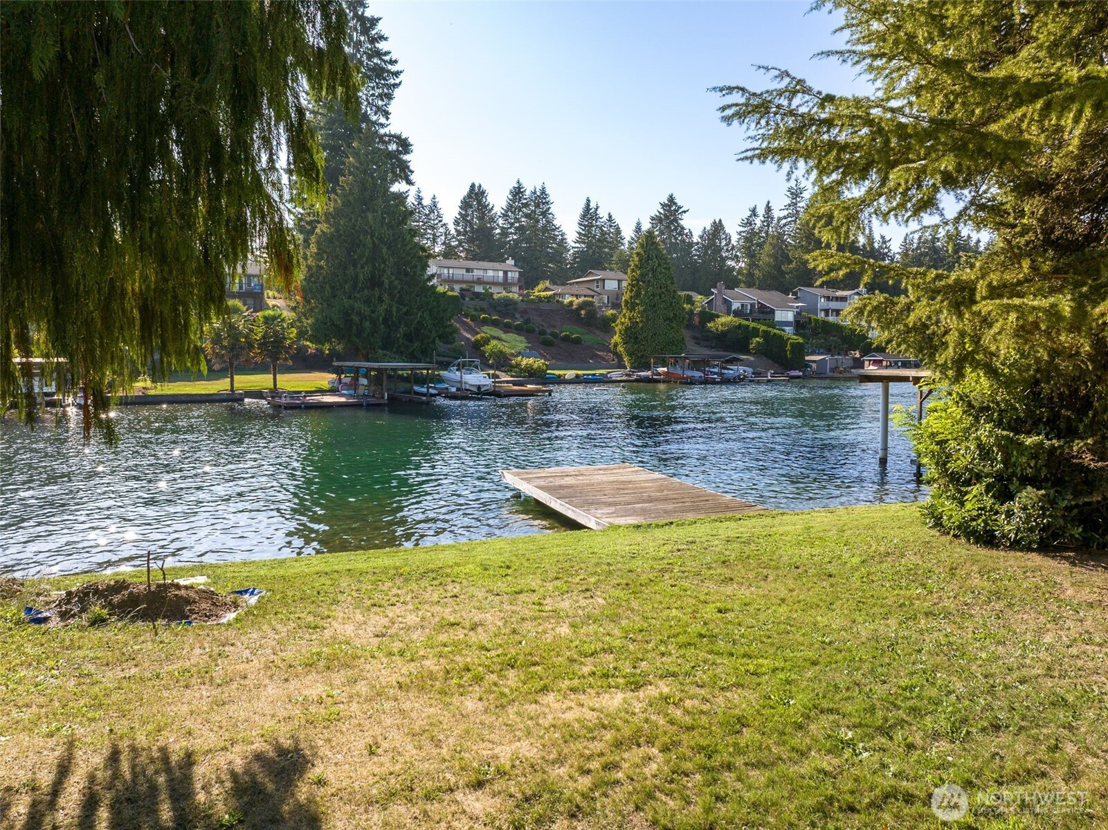 Lake Tapps waterfront vacant land on Jenks Point, west side, and tucked in a more protected pocket away from the open water. This 12,600 sq ft lakefront lot delivers the real deal: your own shoreline, bulkhead, private dock, and electricity already onsite. Morning coffee on the dock, paddle straight from your own spot, boat days that start at home, and sunset hangs that never require packing up or fighting for access. Quiet dead-end road neighborhood, Sumner Bonney Lake School District, and then the bonus: additional private access to Jenks Park with gated entry, sandy beach, boat launch, plus tennis and pickleball courts. Rare chance to lock in true Lake Tapps frontage with extra amenities built in.