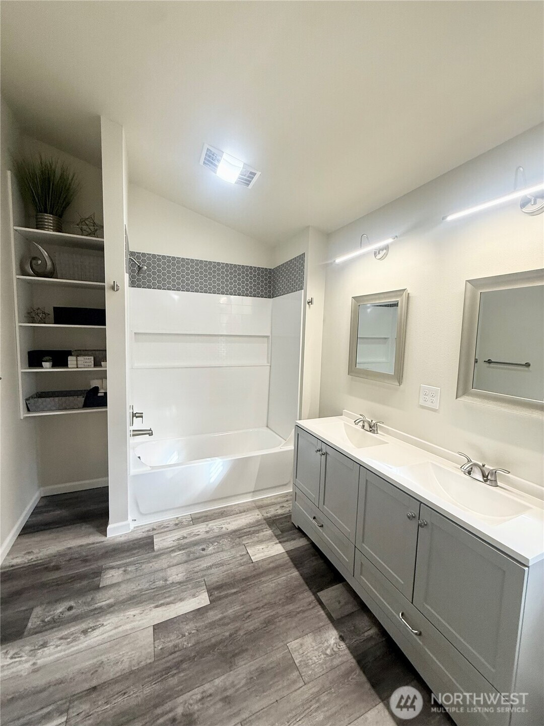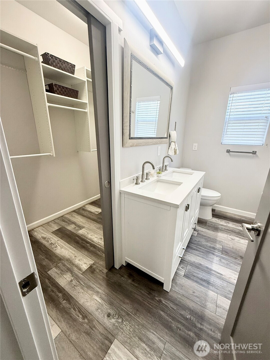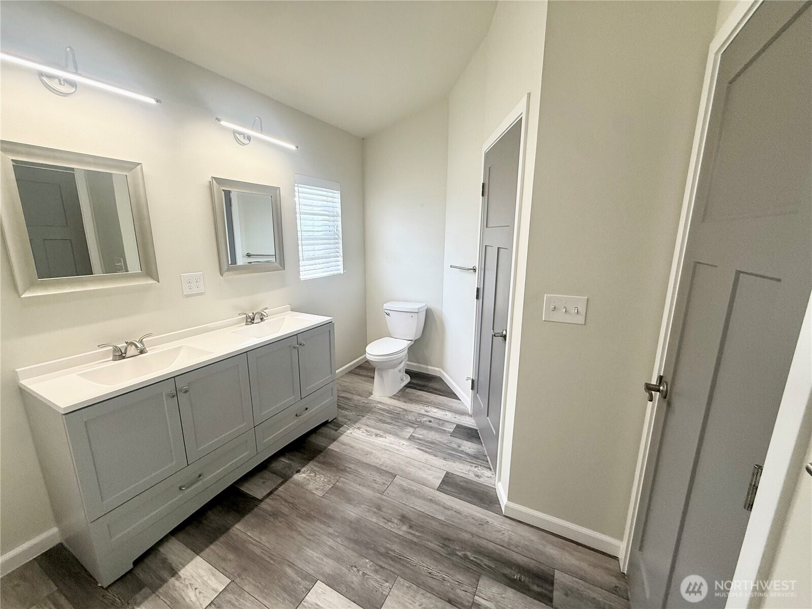 Looking for a multi-generational setup? This 2021 full-rebuild has a layout that truly works for modern life, including TWO Primary Suites & no HOA! Step inside to 2484 sq ft., tall ceilings & an open concept. The kitchen is a showstopper, starring a massive island with storage & black stainless appliances. A clever use of space includes a built-in nook tucked perfectly under the staircase, along with a possible pet bed area, these special features await your personalization, perhaps a coffee station?. With a walk-in pantry, dedicated dining space, & seamless flow into the living room, you’ll never be separated from the action. The first level features a full primary suite, ideal for guests, in-laws, or those looking to avoid stairs. Upstairs, the second level opens up with dramatic vaulted ceilings, housing the second primary suite, an additional large bedroom, family room & an office area. The LVP flooring throughout features a mix of cool & warm tones, ensuring your existing furniture will look right at home. Custom blinds, new plush carpet & fresh paint provide a turn-key experience for the new owners. Enjoy the outdoor living on the wrap around deck & expansive patio while having peace of mind knowing the major components of this 4 bedroom 3 bath home are only 5 years old. Walkability to local businesses & an easy commute location off of I5 make this property a must see! Current road resurfacing & sidewalk additions by Tacoma near this home will be the cherry on top.