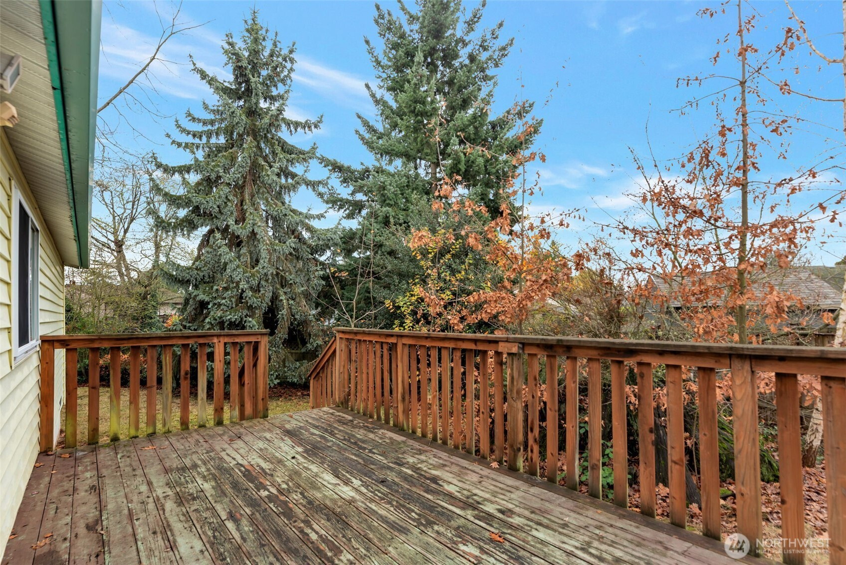 Wonderful potential for downsizers, first-time buyers, or investors. Well-maintained 3BR, 1.75BA rambler on quiet cul-de-sac features heat pump with AC to keep you warm (or cool!) Living room has vaulted ceilings and a wood-burning fireplace for cozy winter evenings. Large kitchen with eating area, plus a raised dining room with slider to a spacious deck. All appliances included. Fenced back yard has a fairytale feel - outbuilding and newer gas lawnmower inclued with sale. Garage is a craftsperson's dream with shop area, workbench, tons of storage, and a spare freezer. Don't miss this one!