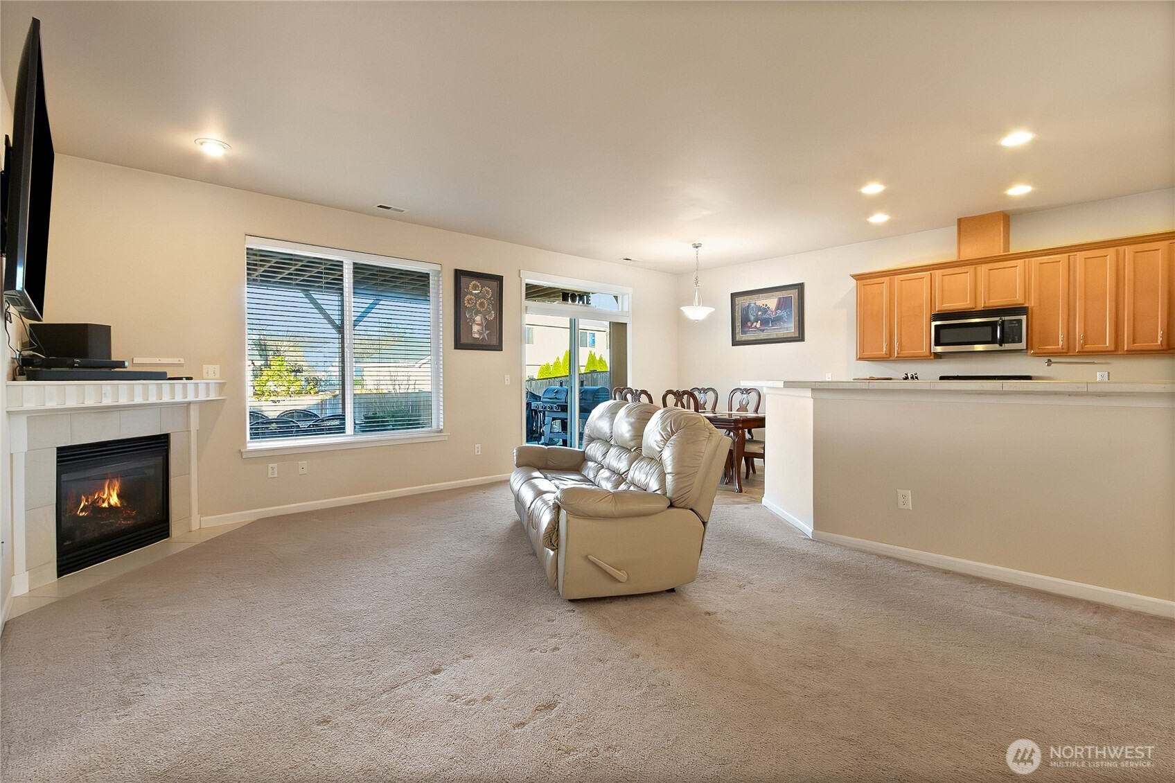 Welcome to this beautiful rambler in the wonderful Meadows community! This 1,430 sq/ft 3-bedroom, 2-bath home boasts an open concept, perfect for enjoying gatherings in the large living room, which is open to the dining nook and kitchen. Spacious kitchen w/tile countertops & bar stool seating, lots of cabinet space & direct access to formal dining. Large slider off nook allows for an abundance of natural light. Large main bedroom w/ 5-piece bath & walk-in closet. New gas furnace installed in 2024. New 288Sq/ft covered patio~perfet for the summer BBQ's and fully fenced backyard. Gas fireplace in the living room for chilly days. This home is a must-see!