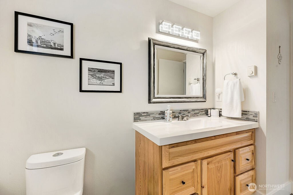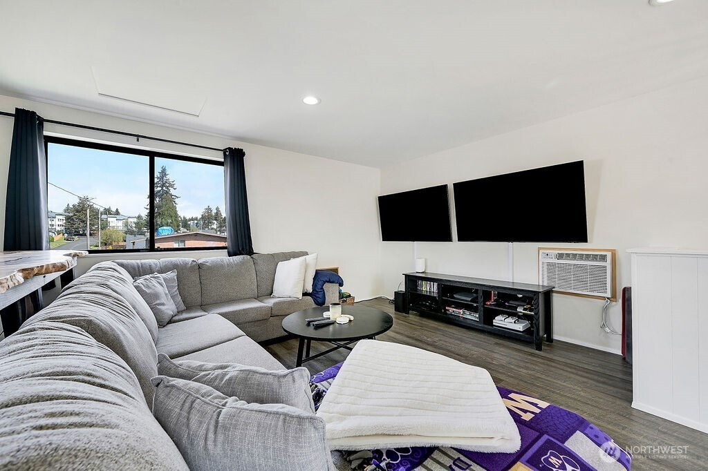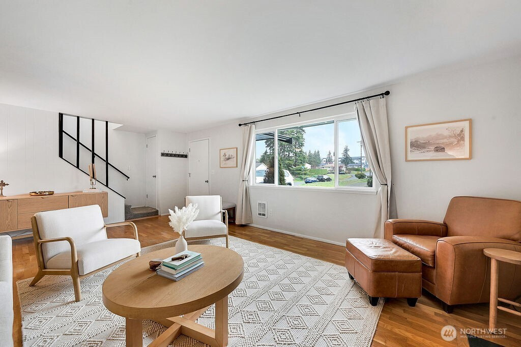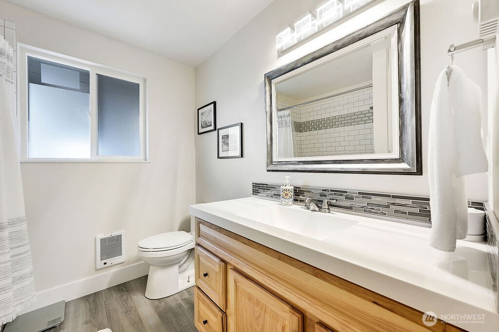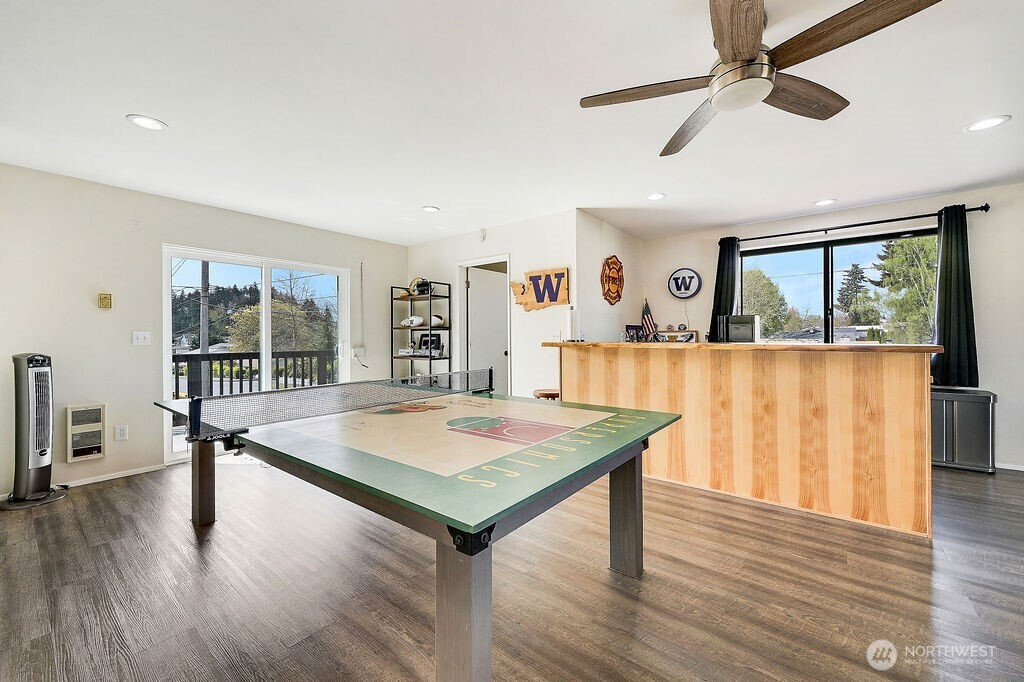 Beautifully updated Tacoma home situated on a spacious corner lot! This 3-bedroom, 2.75-bath home offers a versatile and functional layout with all bedrooms conveniently located on the main floor. Step inside to find stunning hardwood floors in your cozy and inviting living room, complete with a wood stove! The family room leads into a tastefully updated kitchen that blends style and functionality—perfect for everyday living and entertaining. Upstairs, a massive bonus room provides endless possibilities, complete with built-in entertaining space—ideal for a media room, game room, or just an additional space to relax. Enjoy outdoor living in the fully fenced backyard featuring a patio area for gatherings, plus a shed/shop space for hobbies or extra storage. The sewer lines have also been replaced, offering peace of mind for years to come. This move-in ready home combines comfort, space, and thoughtful updates in a prime Tacoma location! Welcome Home!