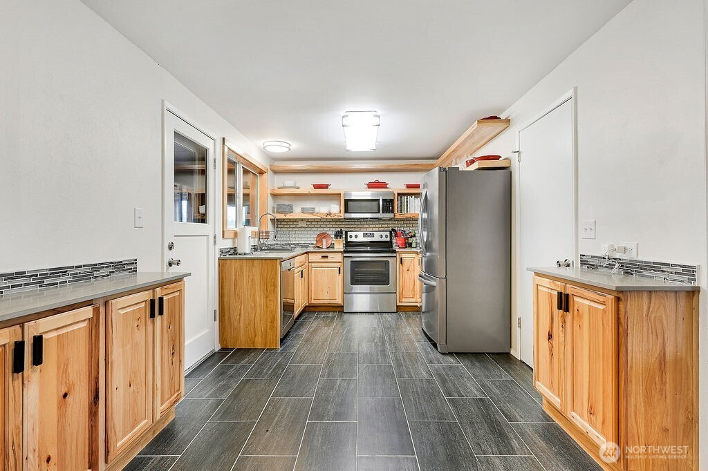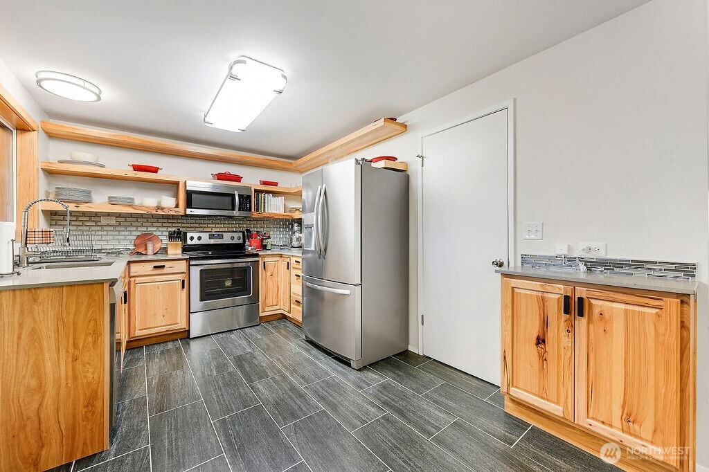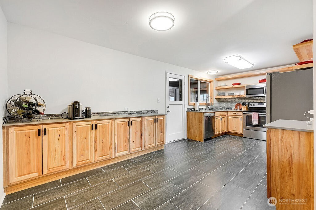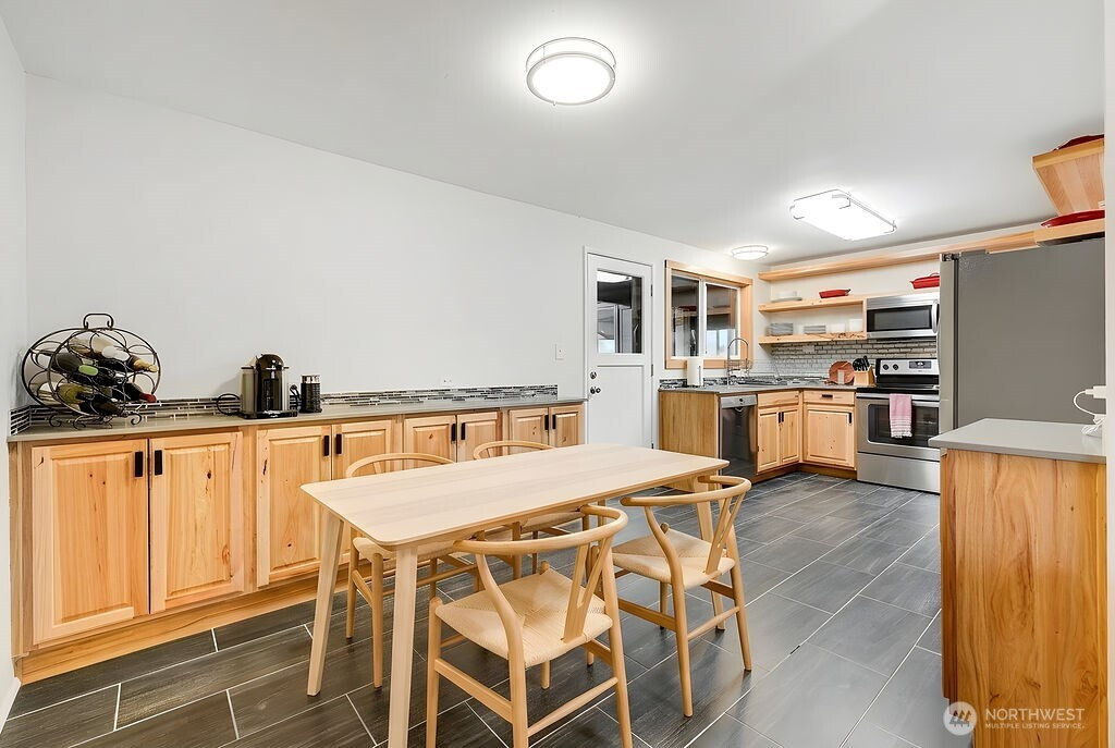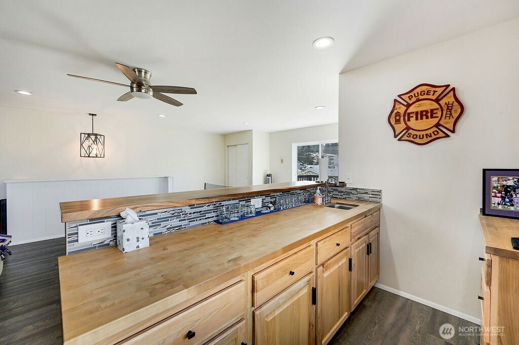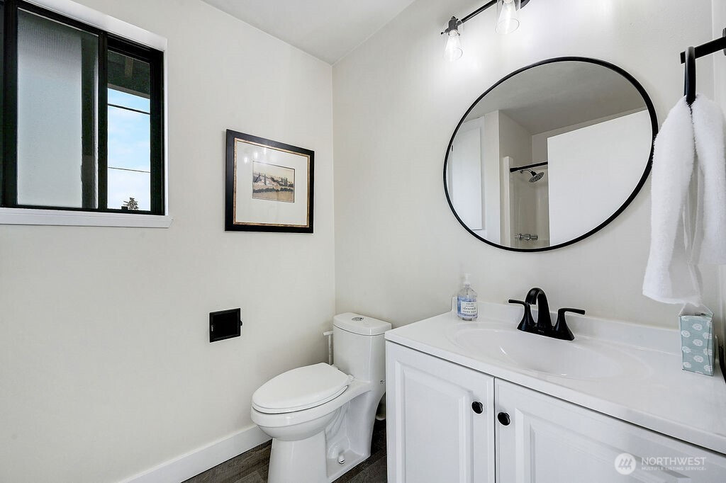 Beautifully updated Tacoma home situated on a spacious corner lot! This 3-bedroom, 2.75-bath home offers a versatile and functional layout with all bedrooms conveniently located on the main floor. Step inside to find stunning hardwood floors in your cozy and inviting living room, complete with a wood stove! The family room leads into a tastefully updated kitchen that blends style and functionality—perfect for everyday living and entertaining. Upstairs, a massive bonus room provides endless possibilities, complete with built-in entertaining space—ideal for a media room, game room, or just an additional space to relax. Enjoy outdoor living in the fully fenced backyard featuring a patio area for gatherings, plus a shed/shop space for hobbies or extra storage. The sewer lines have also been replaced, offering peace of mind for years to come. This move-in ready home combines comfort, space, and thoughtful updates in a prime Tacoma location! Welcome Home!