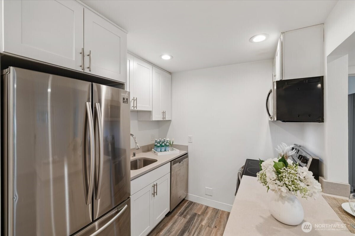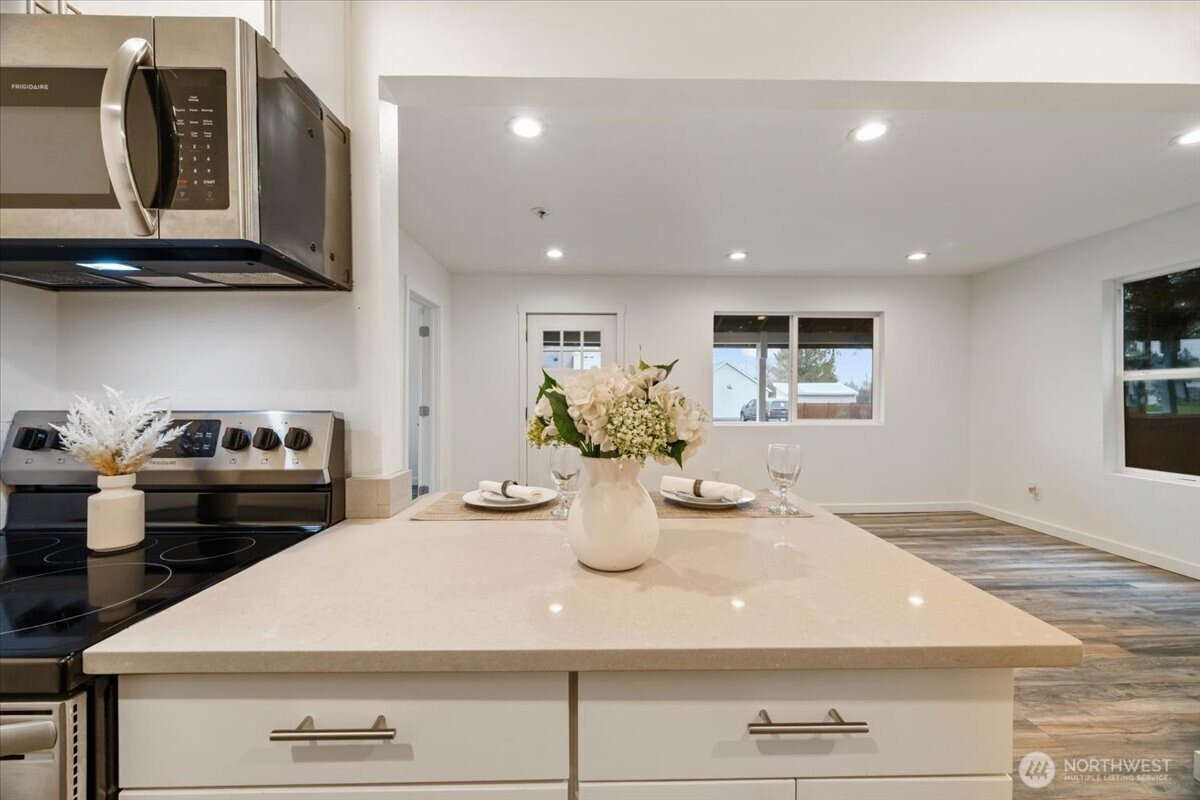 Great opportunity to own a charming 3 bed 1.75 bath rambler in the heart of Buckley! This 1,120 sq ft home has been tastefully updated. Light and bright living area greets you when you walk in. Kitchen includes SS appliances, quartz counters and adorable lighting. Spacious, primary suite with vaulted ceilings and two closets. Updated ensuite bath features beautiful tile and spa like ambiance. Newer laminate flooring in primary, updated wiring and panel, updated plumbing. Fresh interior paint and newer roof. Close to walking, hiking, shopping, schools and parks. Don't miss this wonderful opportunity to call this home!