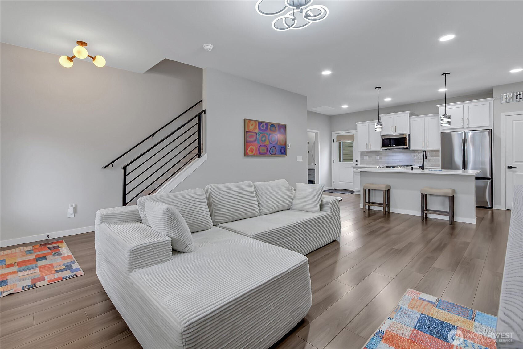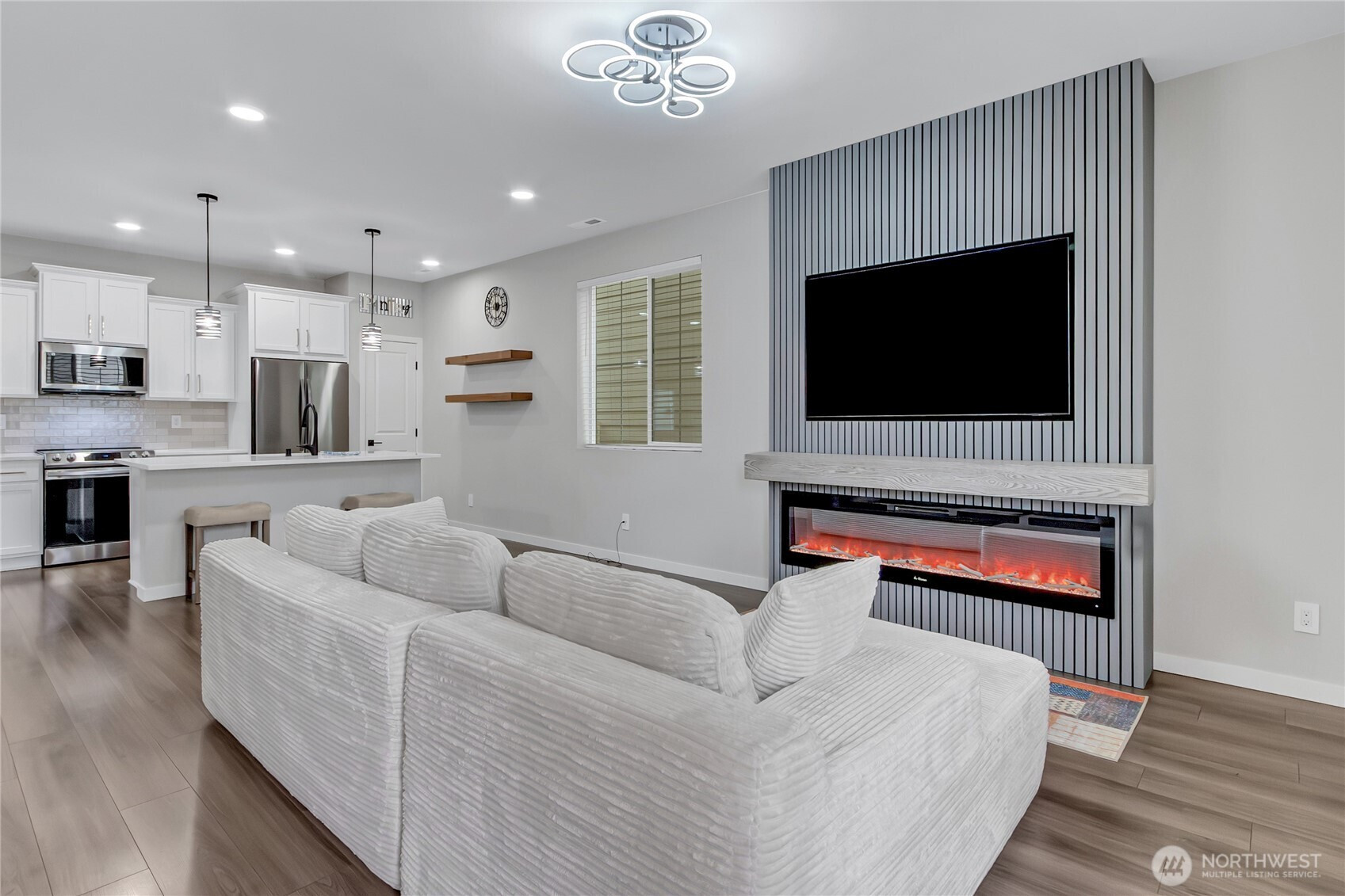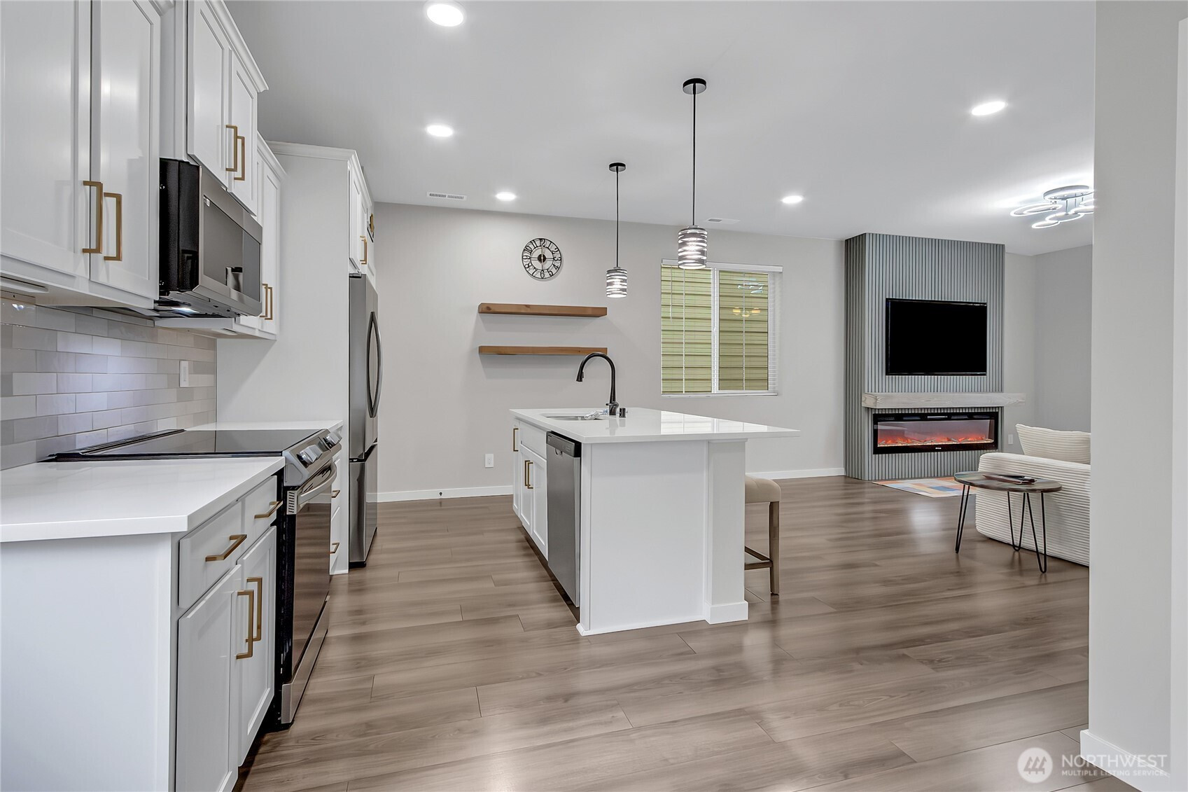 A home where modern elegance combines with intentional design, offering a truly better-than-new living experience. Carefully upgraded, this home provides all the advantages of new construction without the wait or extra cost. At the center of the home, the kitchen has sleek quartz countertops, a spacious island with plenty of seating, and an open layout that flows smoothly into the main living space. A custom fireplace with an integrated TV creates a striking focal point, while modern open railings and smart switches add style and convenience. Upstairs, the primary suite is a peaceful retreat, complete with a walk-in closet and a beautifully designed bath. Two additional well-sized bedrooms, a full bathroom, and a large laundry room offer comfort and practicality. A versatile loft provides flexible space for a game room, media lounge, or dedicated home office. The low-maintenance yard means more time enjoying your home and less time on upkeep. Enjoy the neighborhood park, community garden, and walking trails year-round.