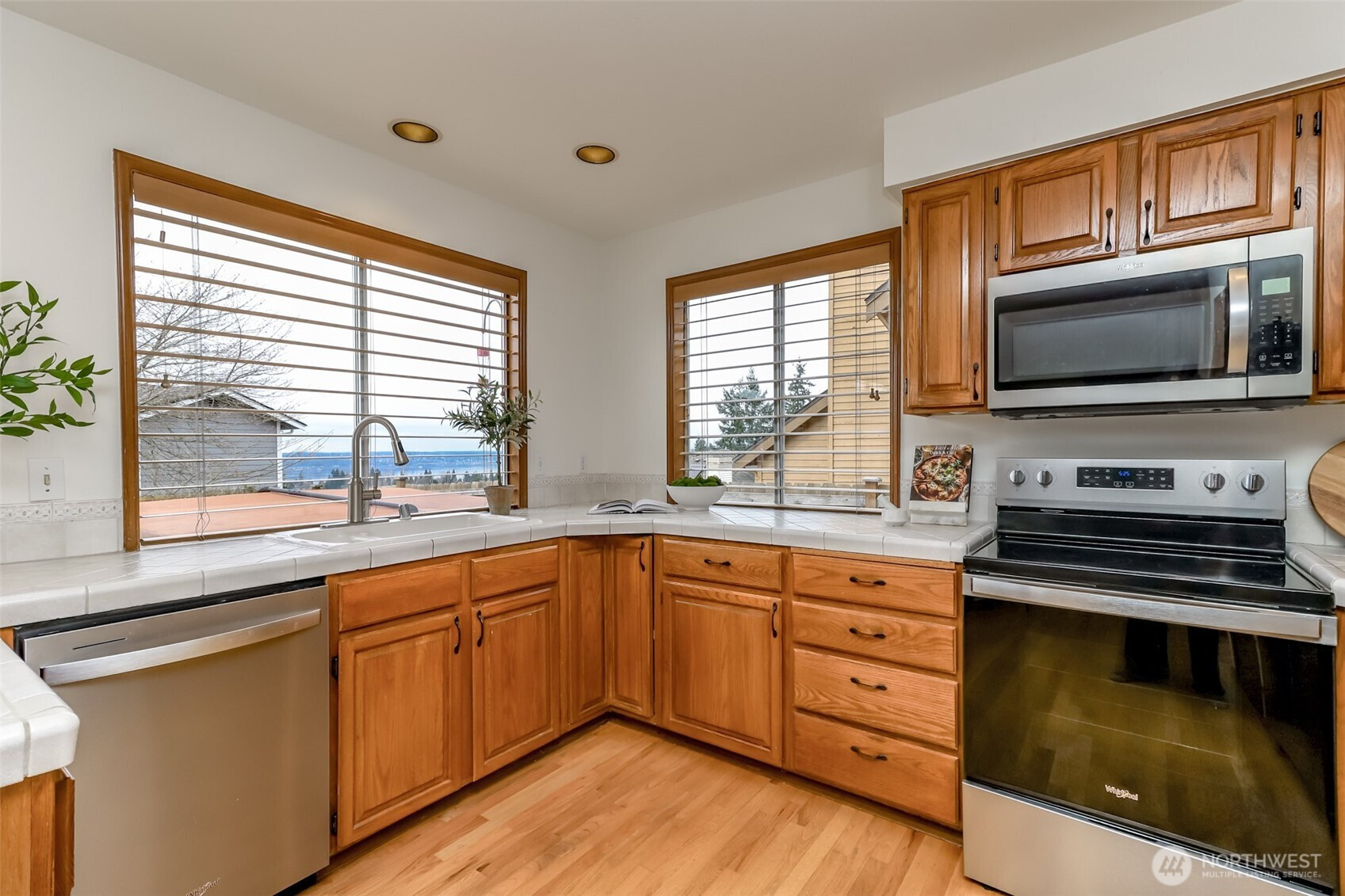 Remarkable Home! Nestled in the Upper Harbor Ridge community of Browns Point, this is a truly expansive 3-bedroom, 2.5-bath view-home offering an outstanding open floor plan and wonderful Puget Sound views. Positioned on a private corner lot along a quiet street with few neighboring homes, the setting provides quietness and privacy. This home is full of light, has tall ceilings and a beautiful solid wood staircase adding to the warm and inviting atmosphere. The generously sized primary suite is a true sanctuary, featuring stunning updates, a beautifully spa-like remodeled bath, and an additional attached room that is ideal for a home office, nursery, or hobby space — all complemented by incredible views. Enjoy outdoor living on the spacious deck and a fully fenced yard with mature landscaping, complete with a hot tub, perfect for relaxing evenings or entertaining guests. Move-in ready! With Modern and thoughtful upgrades including kitchen appliances, and beautiful bathrooms. This is a great opportunity to own an exceptional view home in upper Harbor Ridge.