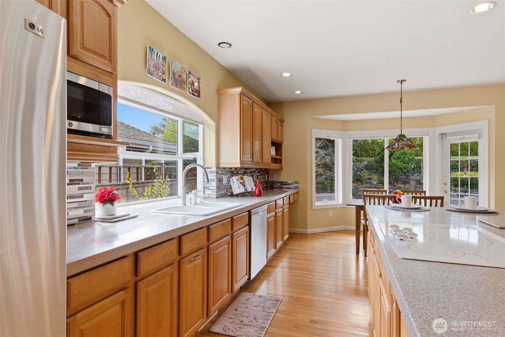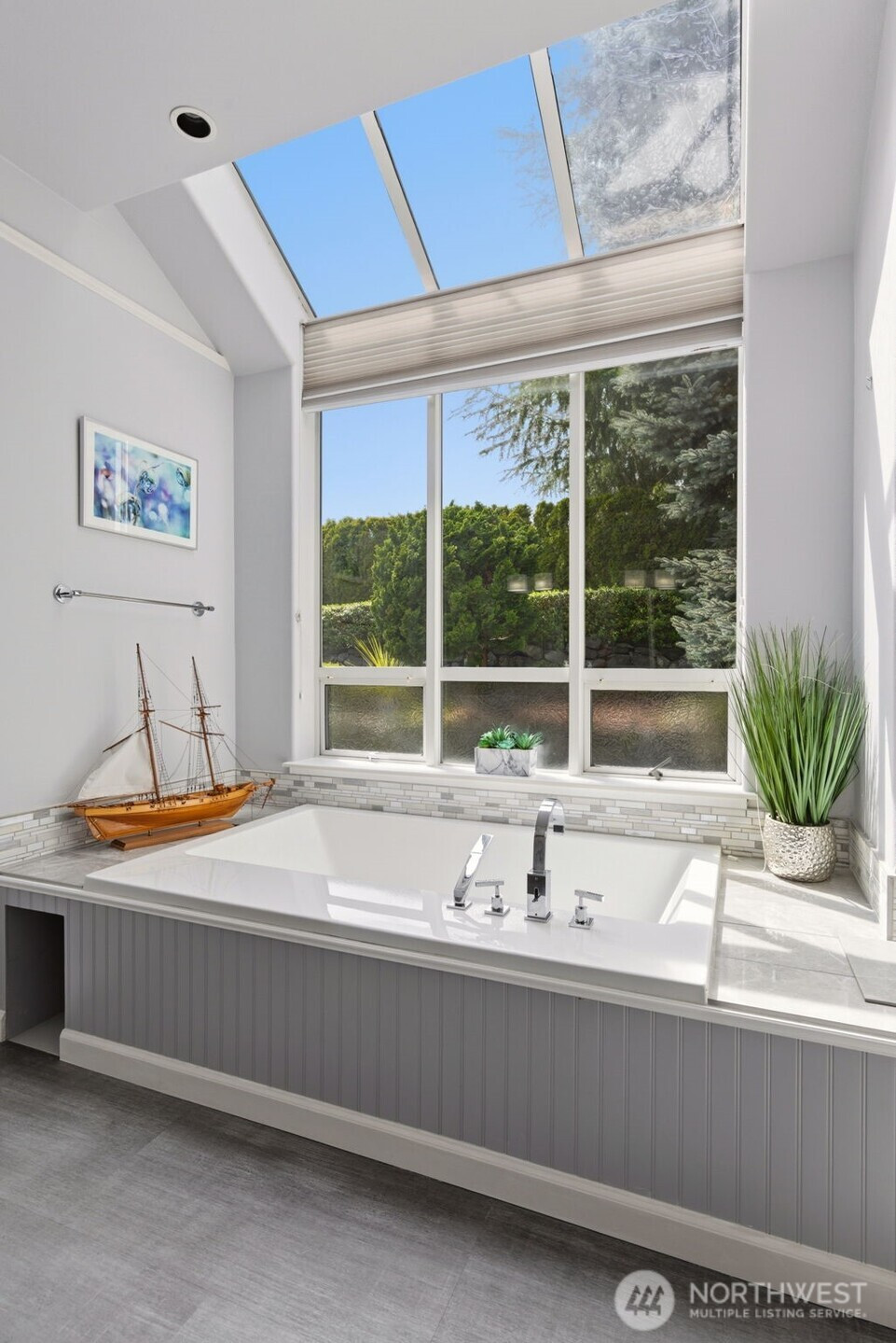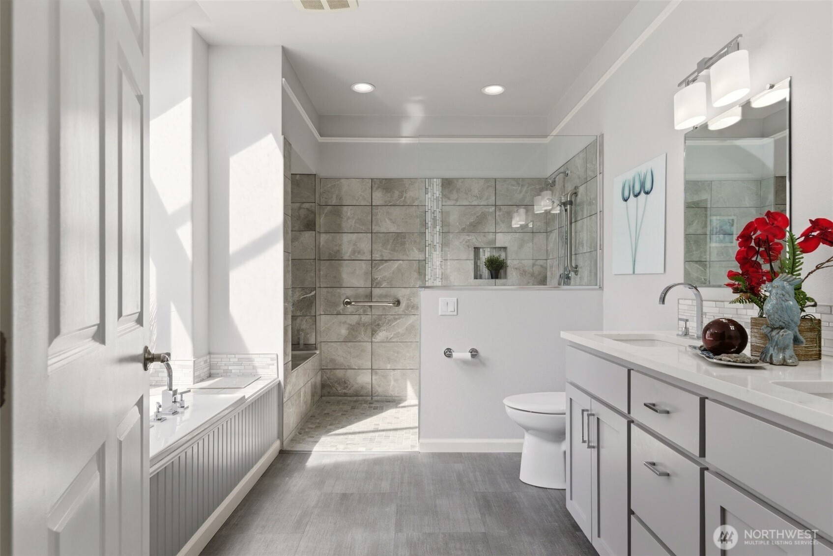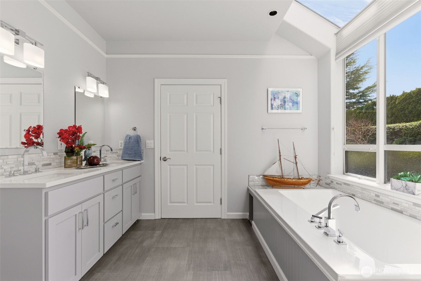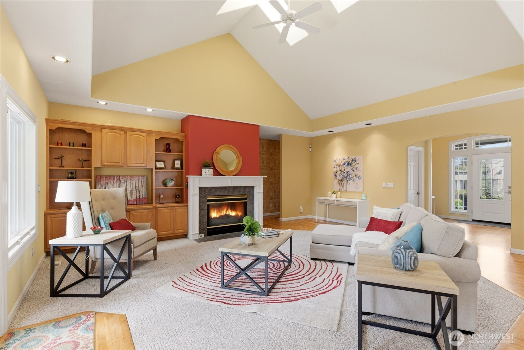 Welcome to effortless Northwest living in this coveted rambler in the heart of University Place. Nestled in the gated community, The Berkshire, quiet streets and sidewalks create a true neighborhood feel. This beautifully maintained home offers exceptional curb appeal with lush, mature, and manicured landscaping. Inside, the open-concept design is elevated by soaring vaulted ceilings and abundant natural light. The heart of the home is the stunning kitchen, featuring an oversized island perfect for gathering, flowing seamlessly into the inviting living area complete with a gas fireplace and custom built-ins. The oversized primary suite is a private retreat, showcasing a fully remodeled 5-piece en-suite designed for comfort and luxury. Plantation shutters add timeless style and privacy. Two additional generous bedrooms, one with gorgeous custom woodwork, are joined by a jack-and-jill bathroom. Thoughtful upgrades to the home include a newer furnace and central AC, ensuring year-round efficiency and peace of mind. Feeding directly into the award-winning University Place school district and ideally located just minutes from shopping, restaurants, and the beautiful Chambers Bay golf course, this home offers the perfect balance of tranquility and convenience. A rare opportunity to enjoy single-level living in one of the area’s most desirable communities.