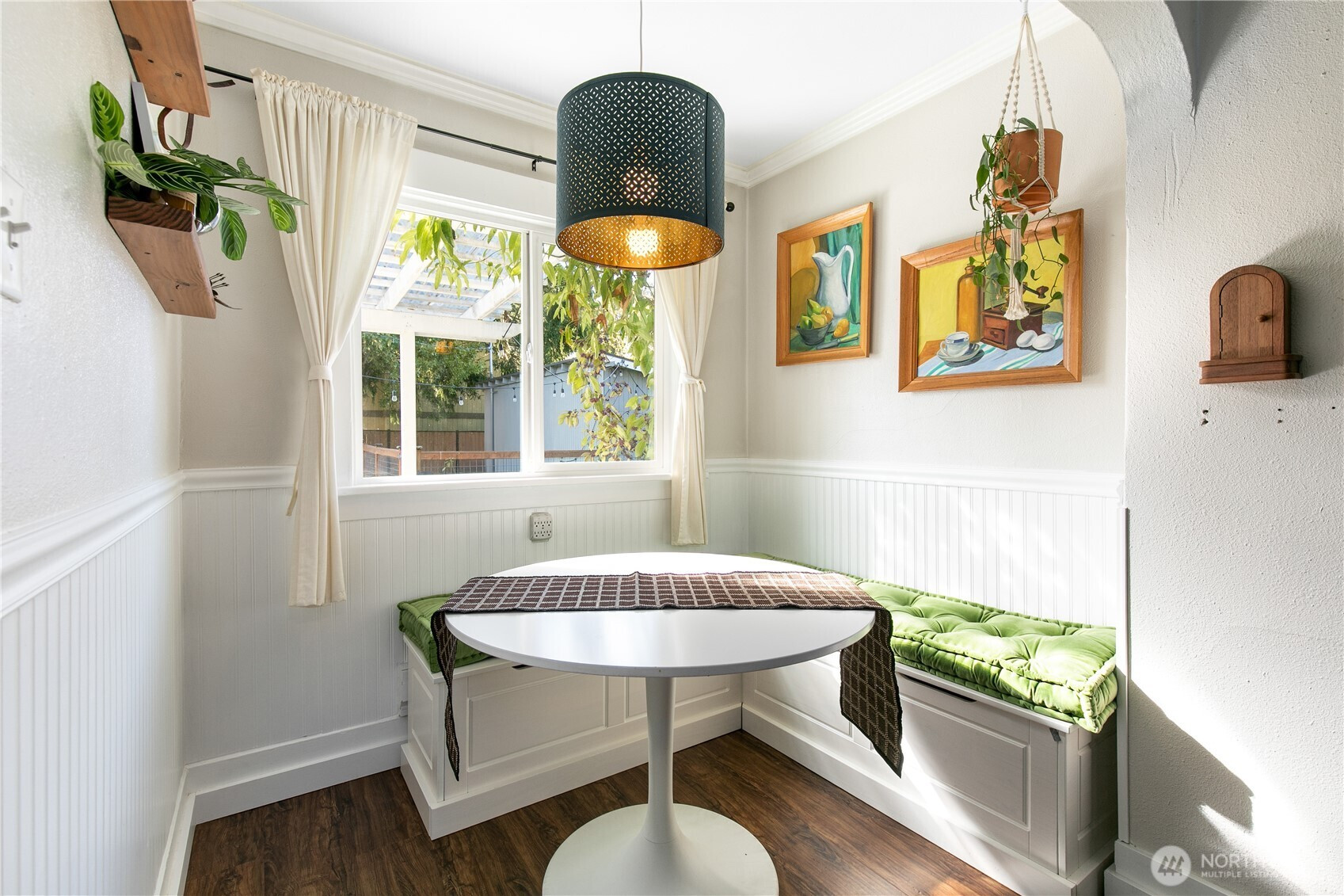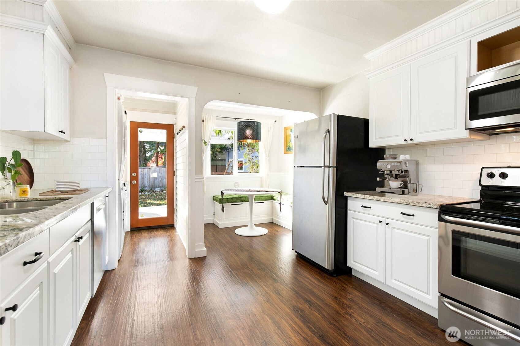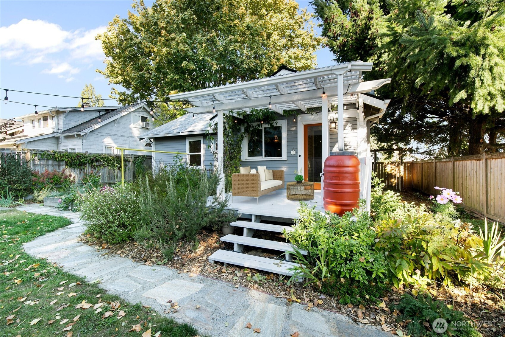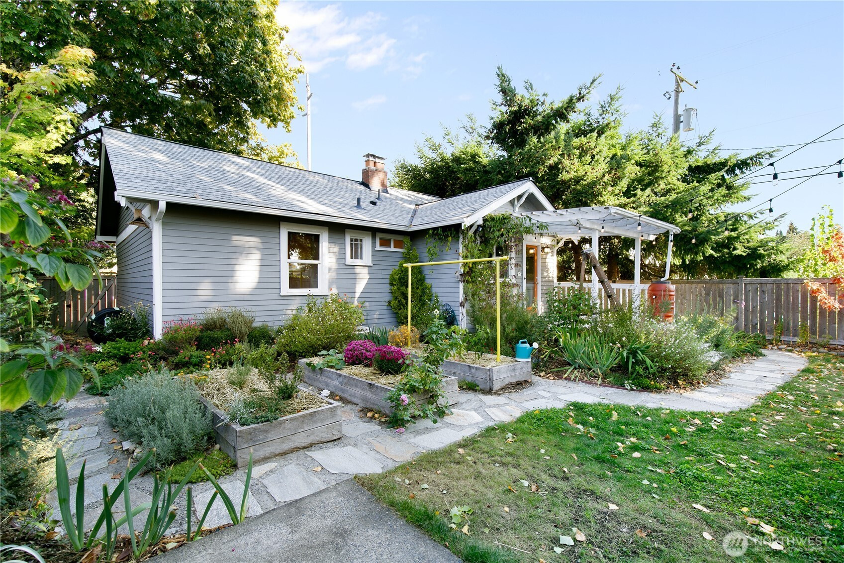 Nestled in the heart of North Tacoma, this storybook home is brimming with charm and thoughtful detail. Impeccably remodeled, it features a light and bright kitchen that opens to a cozy custom dining nook—perfect for morning coffee or intimate dinners. A beautifully updated bathroom and modern touches throughout blend comfort with timeless style. The fully fenced, oversized lot is a gardener’s dream with lush blooms, pathways, and inviting outdoor spaces. With a detached garage, new roof, and enchanting curb appeal, this 2-bed, 1-bath gem offers the ideal mix of character and convenience. Mortgage savings may be available for buyers of this listing.