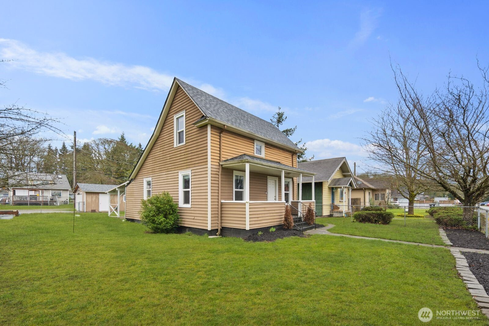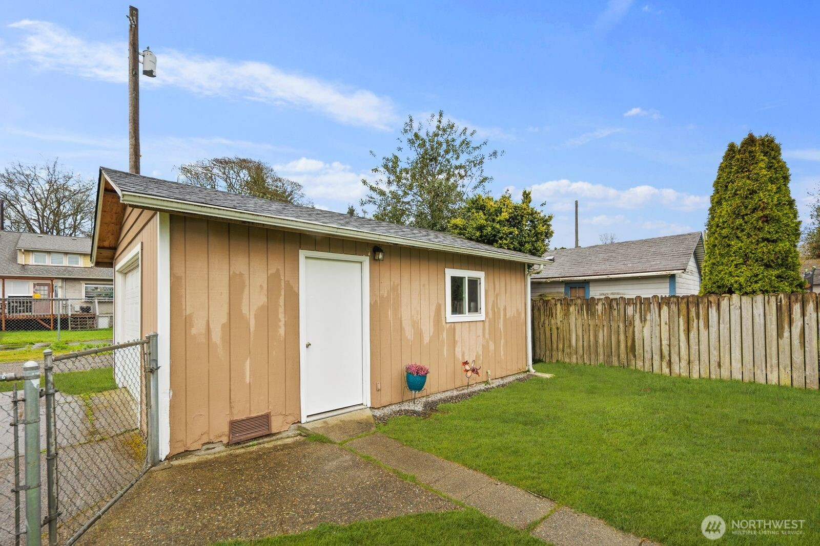 Beautiful South Tacoma Craftsman with Fully Fenced 6,000sqft lot, just minutes from I-5! NEW 30-year roof was installed on both the home and garage in 2023! This home has a bright, open living and dining area featuring new LVP flooring, new fresh carpet, and abundant natural light from large windows throughout. Also, the spacious kitchen comes complete with all appliances included. Enjoy the convenience of a main-floor bedroom or office, with two additional bedrooms upstairs. The bathroom offers both a separate tub and a walk-in shower. A dedicated laundry room sits just off the kitchen for added functionality. Outside, you’ll find a large, level, fully fenced yard with garden beds and a BBQ—perfect for entertaining. The covered back patio makes year-round outdoor living easy. The oversized one-car garage offers space for two small vehicles or a workshop setup, with access from the alley. Find 2-3 additional parking spots through the alley, with more parking available street side. This home has all the right updates you need for peace of mind and low cost of ownership!