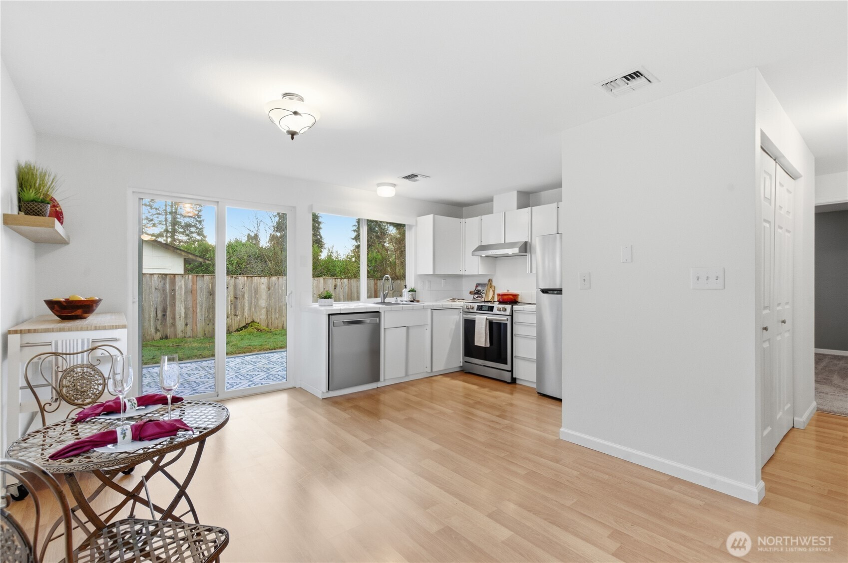 Just what you were waiting for! Come experience this charming one-level home nestled in a quiet cul-de-sac in a wonderful community. This updated gem offers easy living with an inviting layout and abundant natural light. The cozy living area flows into a functional dining space and kitchen, perfect for daily living or entertaining. All bedrooms are generously sized, and the single-level design provides comfort and convenience. Outside, enjoy a spacious fully fenced rear yard with room to relax, garden, or play. Located in a friendly neighborhood with their private park, close to Chambers Bay, Cirque Park, schools, and local amenities, this home is ideal for anyone seeking comfort, simplicity, and a great sense of community.