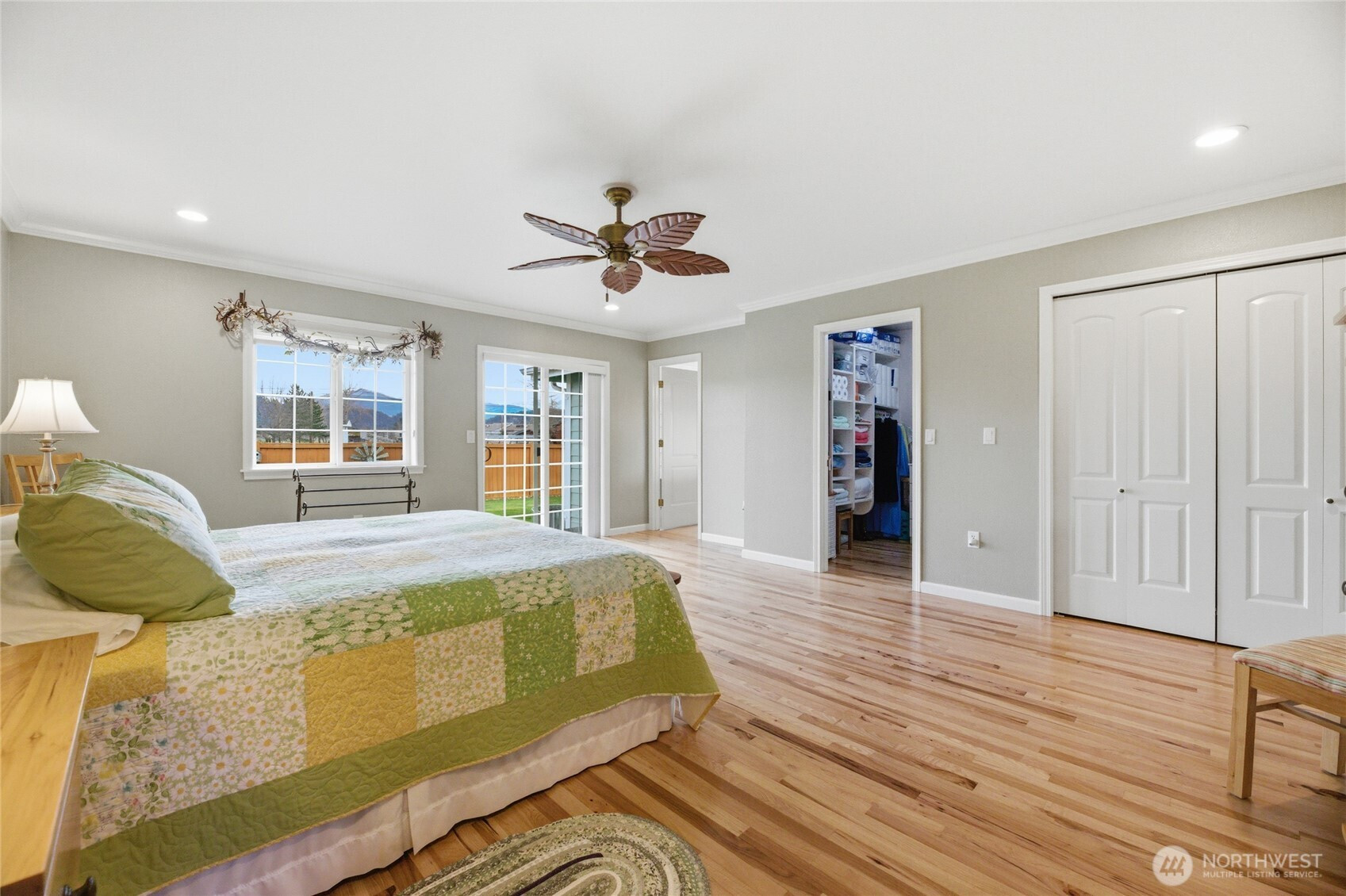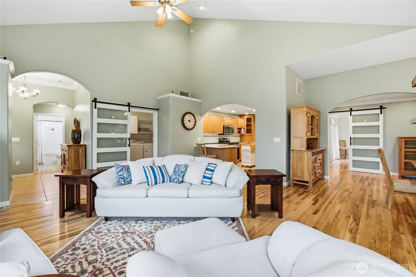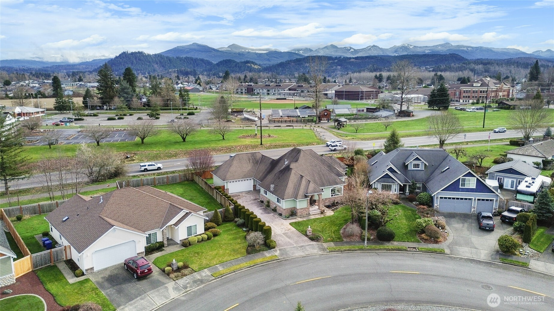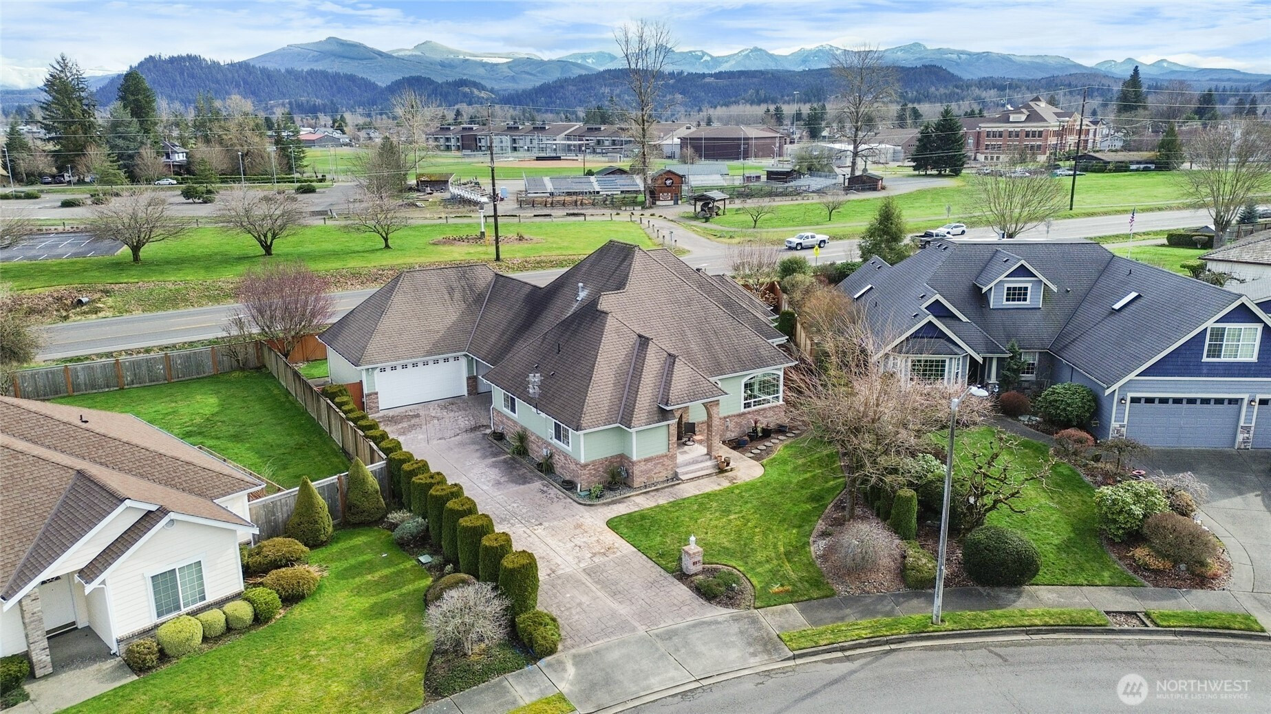Welcome home to this beautiful 4-bedroom, 2.5-bath rambler in the highly sought-after Mountain Circle neighborhood in Buckley. Situated on a spacious 12,307 sq ft lot, this home offers comfort, quality, and one of the best views of Mount Rainier you’ll ever see. Fresh interior and exterior paint, brand-new Hickory hardwood flooring, and new quartz kitchen countertops create an updated move-in-ready feel. Vaulted ceilings and a cozy gas fireplace enhance the open living space. The fourth bedroom offers private patio access, ideal for guests or a home office. The oversized primary suite is a true retreat, featuring a jetted tub, dual vanities, custom tile shower, walk-in closet, and an additional standard closet for exceptional storage. A major standout feature is the included generator and oversized detached three-car garage with dedicated shop space. The shop is equipped with a new mini split system providing both heat and air conditioning for year-round comfort. The garage also includes a half bath, finished storage loft, and an additional utility bay door for easy backyard access. Enjoy central A/C, a natural gas furnace, and a laundry/utility room with abundant cabinetry and storage. A large covered breezeway and stamped concrete driveway add function and curb appeal. Close to shopping and scenic walking trails, this exceptional home offers upgrades, space, and unforgettable views.