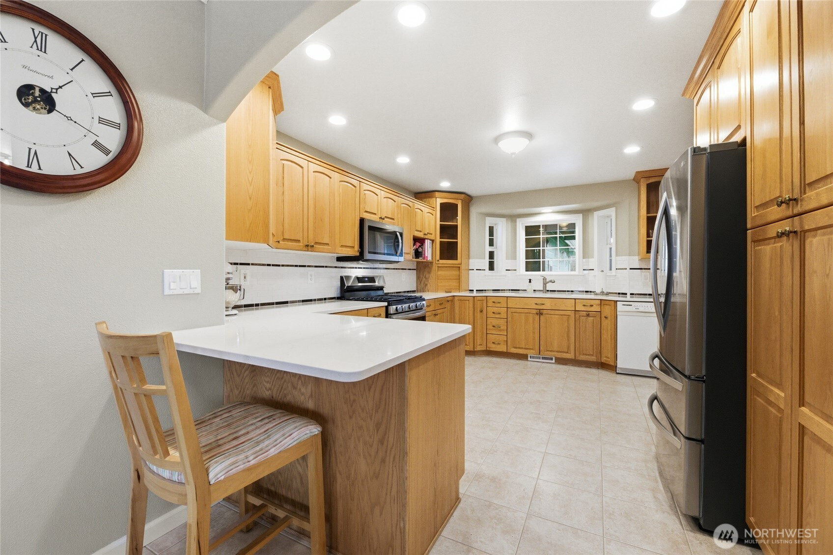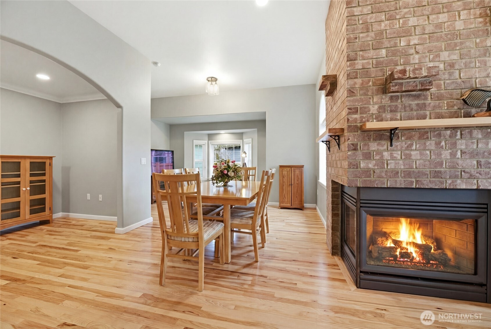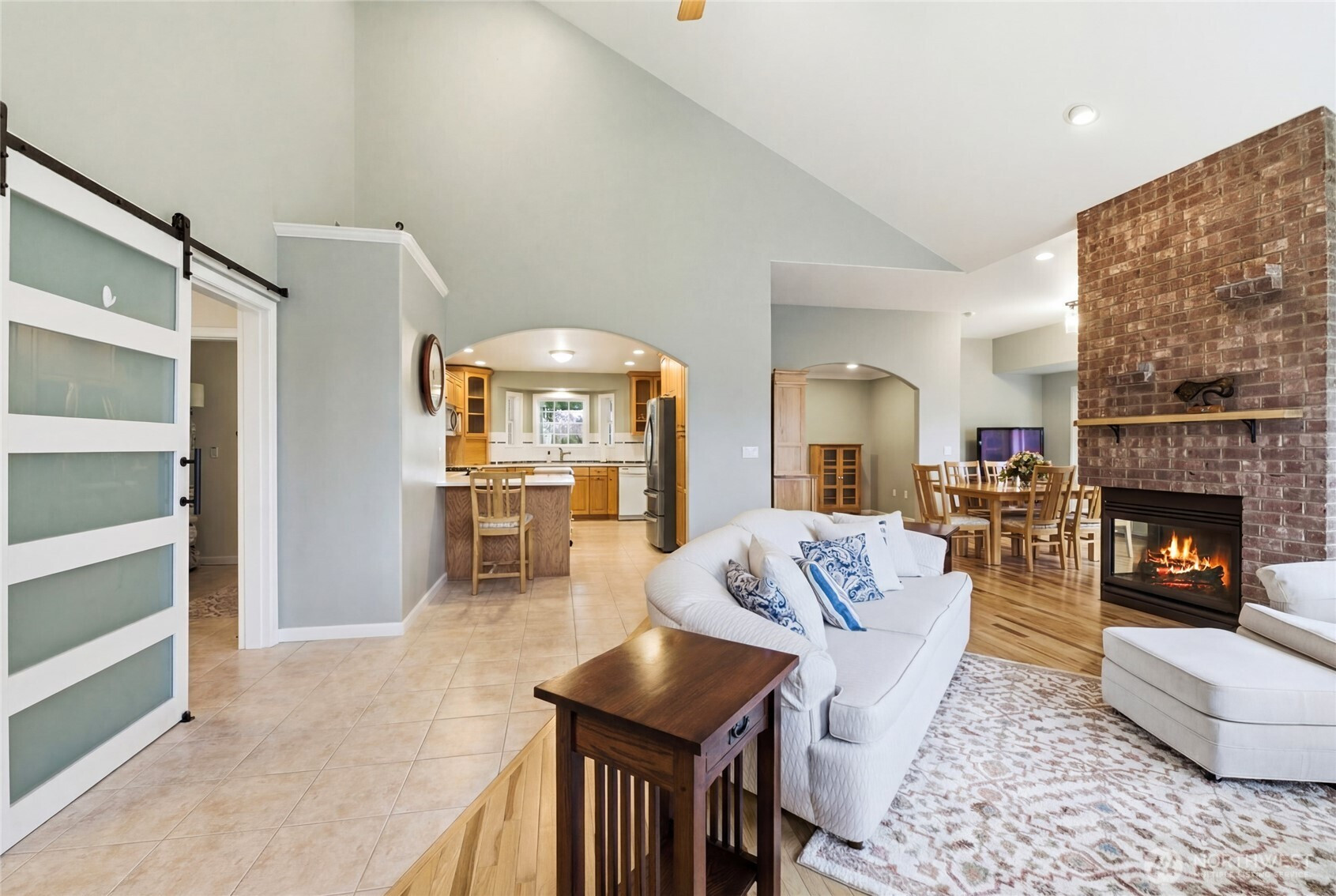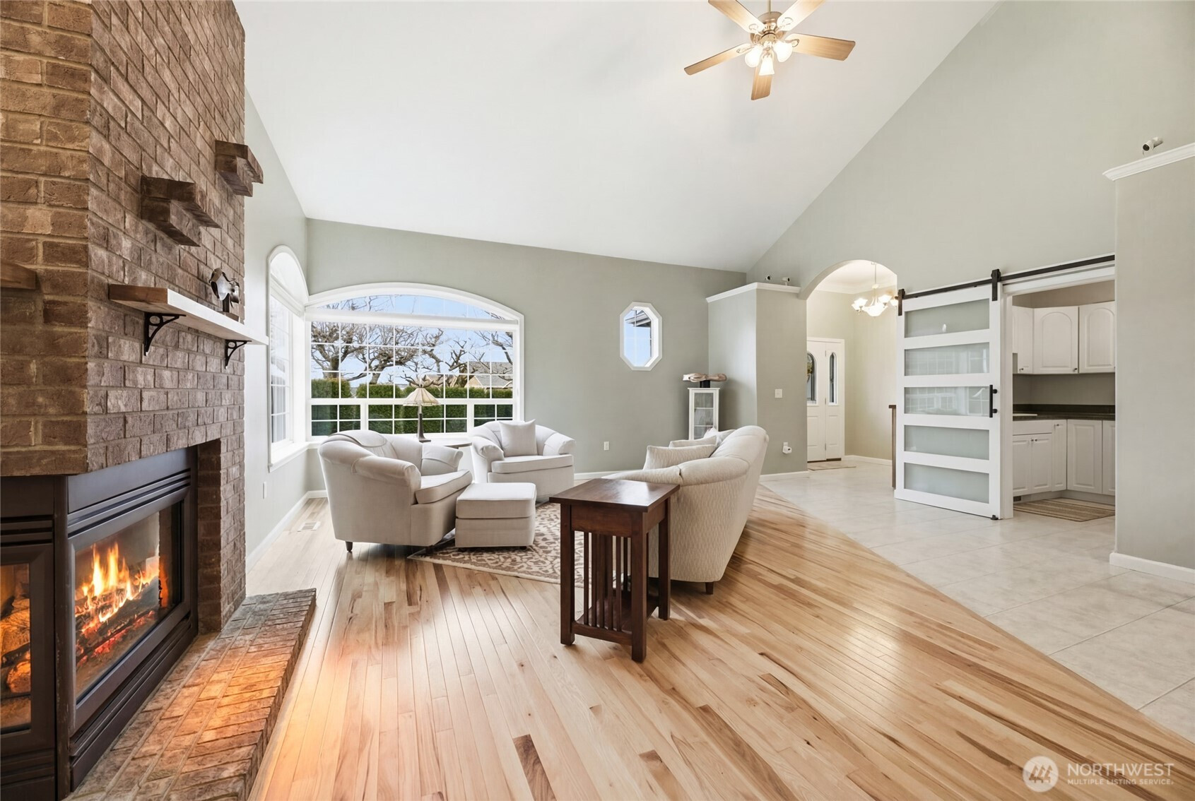 Welcome home to this beautiful 4-bedroom, 2.5-bath rambler in the highly sought-after Mountain Circle neighborhood in Buckley. Situated on a spacious 12,307 sq ft lot, this home offers comfort, quality, and one of the best views of Mount Rainier you’ll ever see. Fresh interior and exterior paint, brand-new Hickory hardwood flooring, and new quartz kitchen countertops create an updated move-in-ready feel. Vaulted ceilings and a cozy gas fireplace enhance the open living space. The fourth bedroom offers private patio access, ideal for guests or a home office. The oversized primary suite is a true retreat, featuring a jetted tub, dual vanities, custom tile shower, walk-in closet, and an additional standard closet for exceptional storage. A major standout feature is the included generator and oversized detached three-car garage with dedicated shop space. The shop is equipped with a new mini split system providing both heat and air conditioning for year-round comfort. The garage also includes a half bath, finished storage loft, and an additional utility bay door for easy backyard access. Enjoy central A/C, a natural gas furnace, and a laundry/utility room with abundant cabinetry and storage. A large covered breezeway and stamped concrete driveway add function and curb appeal. Close to shopping and scenic walking trails, this exceptional home offers upgrades, space, and unforgettable views.