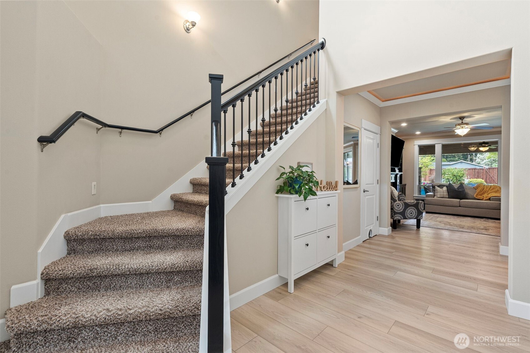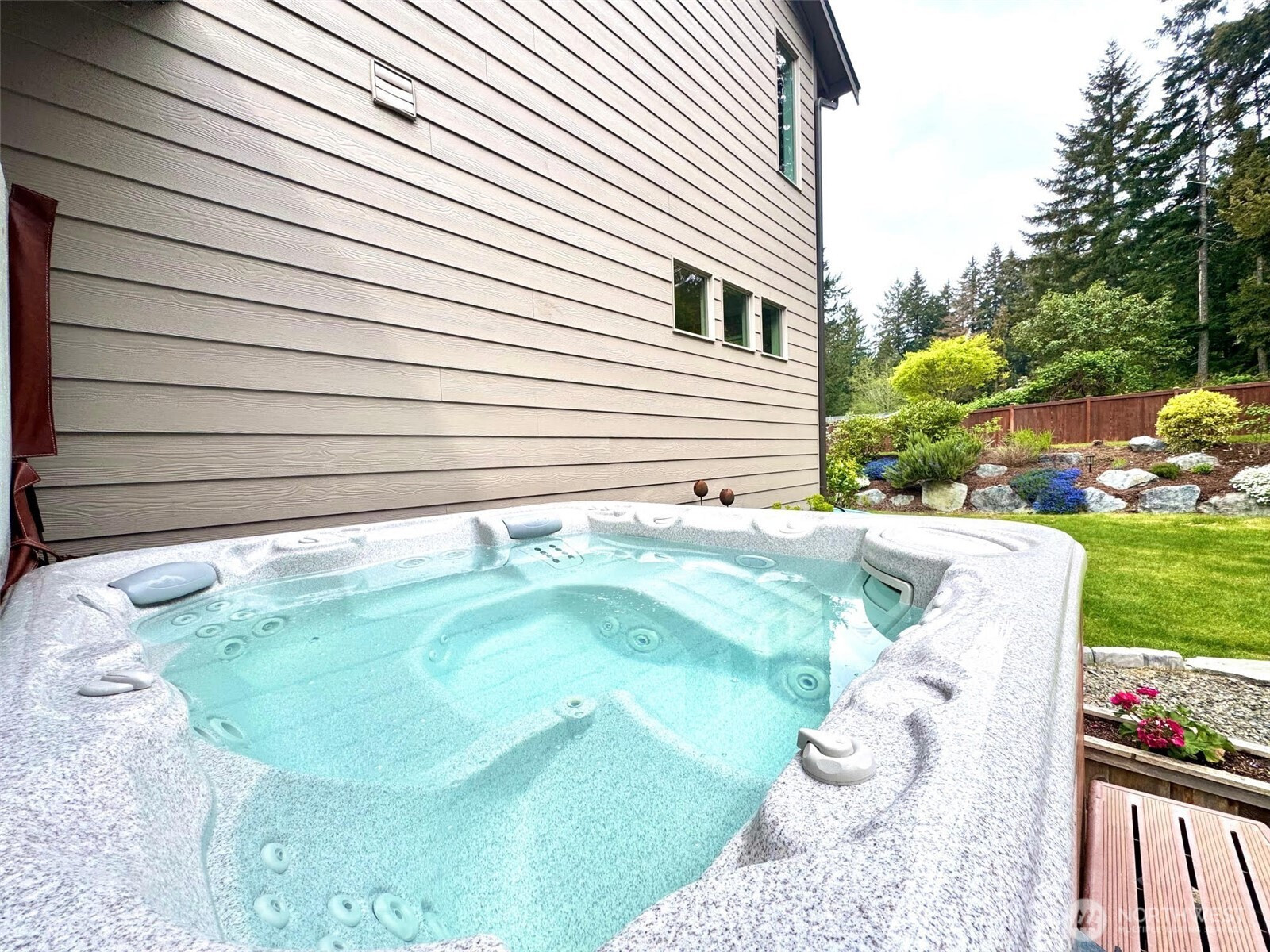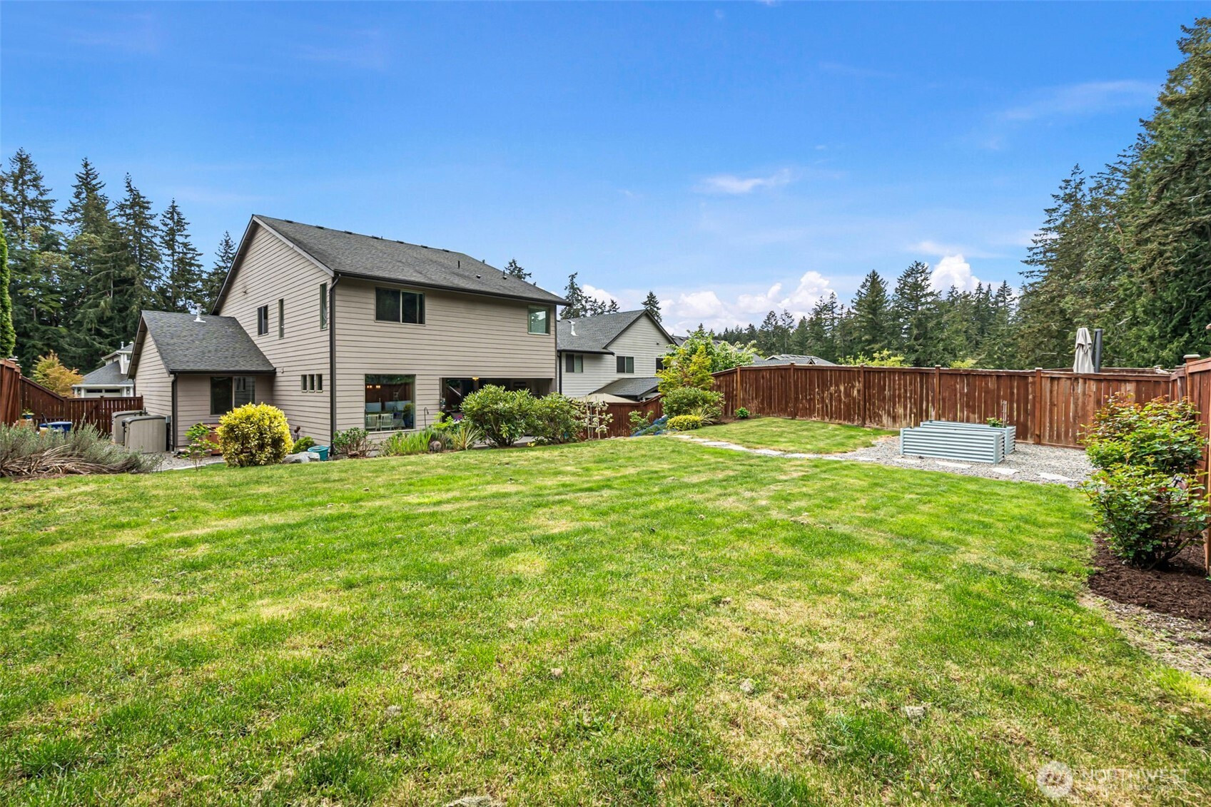 Experience peace & privacy in the gated Lexington community, where this exceptional High Country Home showcases impeccable craftsmanship & attention to detail throughout. From crown molding & extensive millwork to wainscoting, rounded corners, custom built-ins, and beautifully finished cabinetry, every element has been thoughtfully designed. This stunning 2,746 sq.ft. home offers a versatile & functional layout, featuring a junior en suite with a ¾ bath on the main level—perfect for guests or multi-generational living. Upstairs, you’ll find the spacious primary suite, 2 additional bedrooms, a dedicated office, & a large bonus room or fifth bedroom, along with convenient upper-level laundry. The gourmet kitchen is a chef’s dream, complete with granite countertops, full tile backsplash, stainless steel appliances, double ovens, and an oversized refrigerator. Step outside to enjoy year-round outdoor living with a covered patio featuring a gas fireplace, built-in speakers, & TV wiring—ideal for entertaining. The fully fenced yard includes a sprinkler system, garden beds, hot tub for added comfort & convenience. Additional highlights include central A/C, 3 car garage, & a private gate providing direct access to community walking trails. Located within a highly desirable neighborhood known for its strong sense of community & excellent schools.