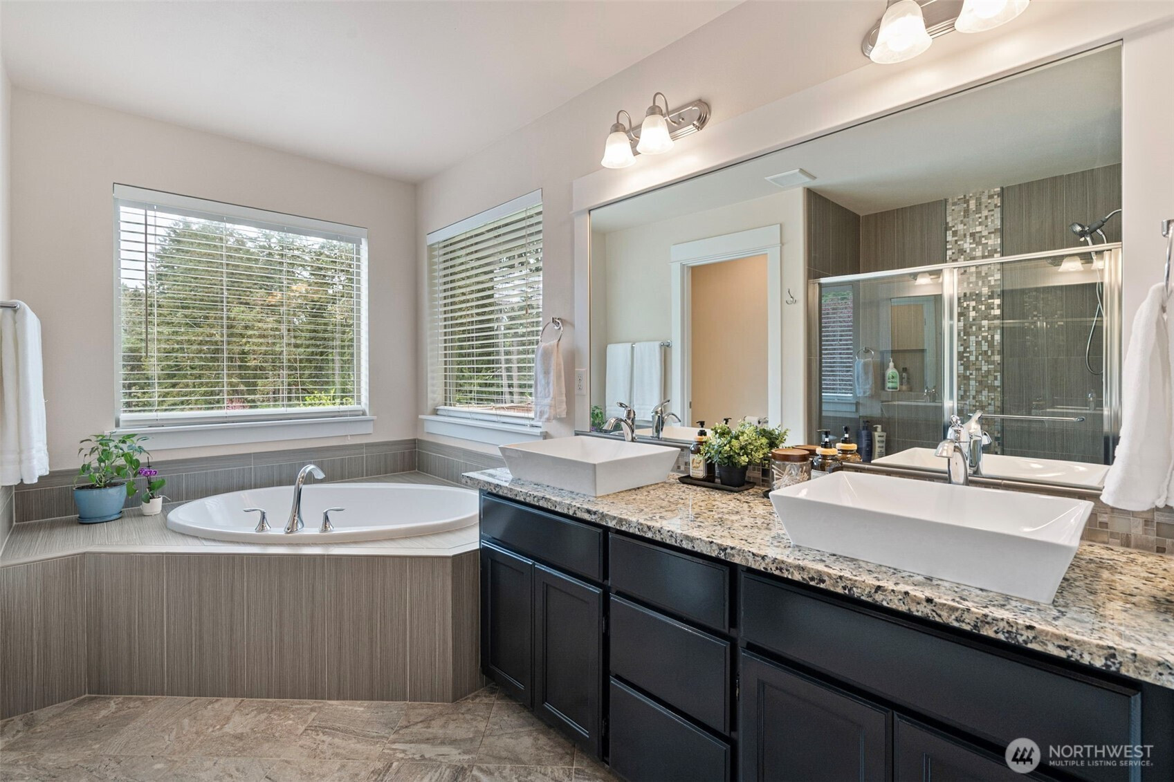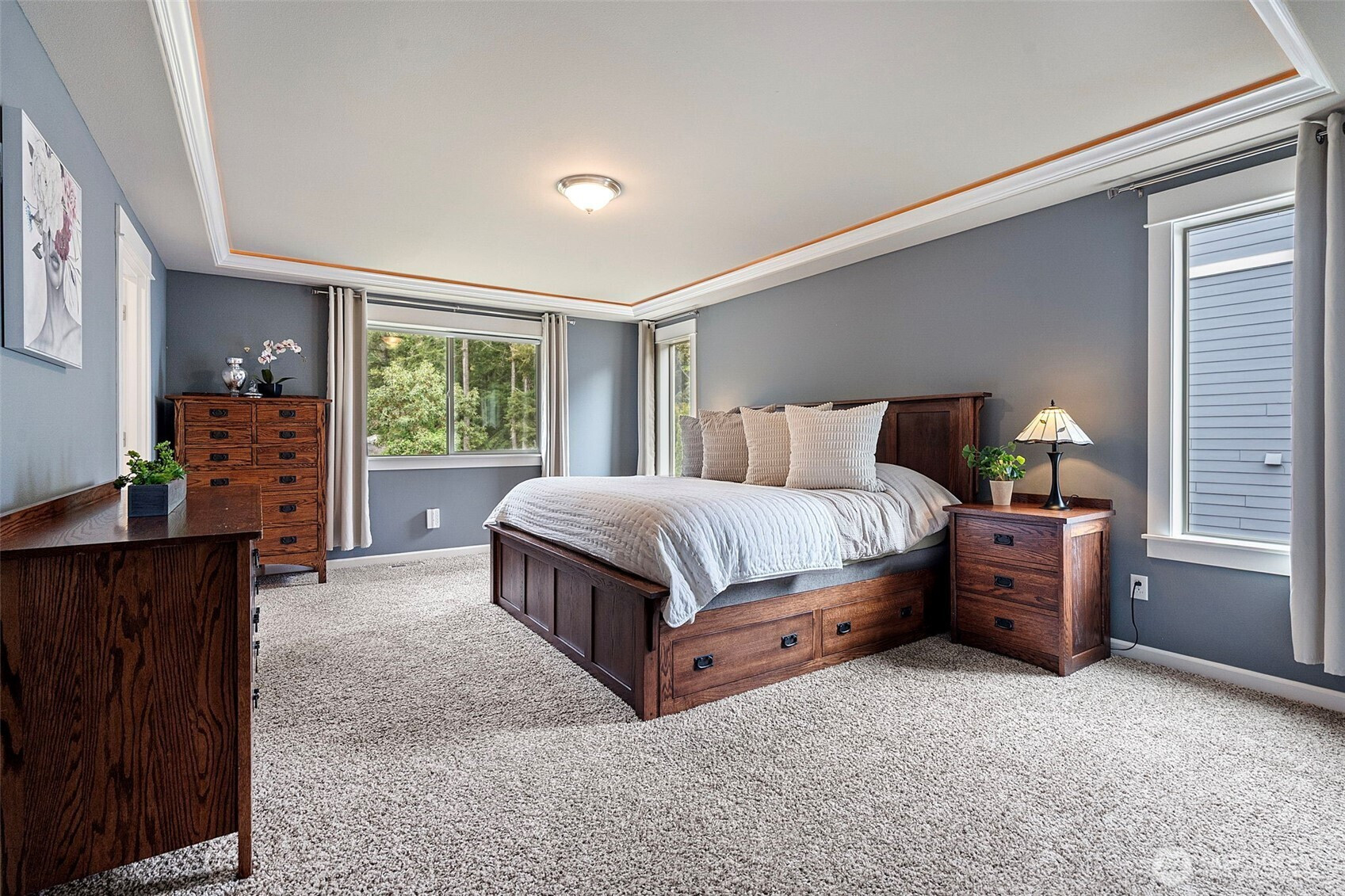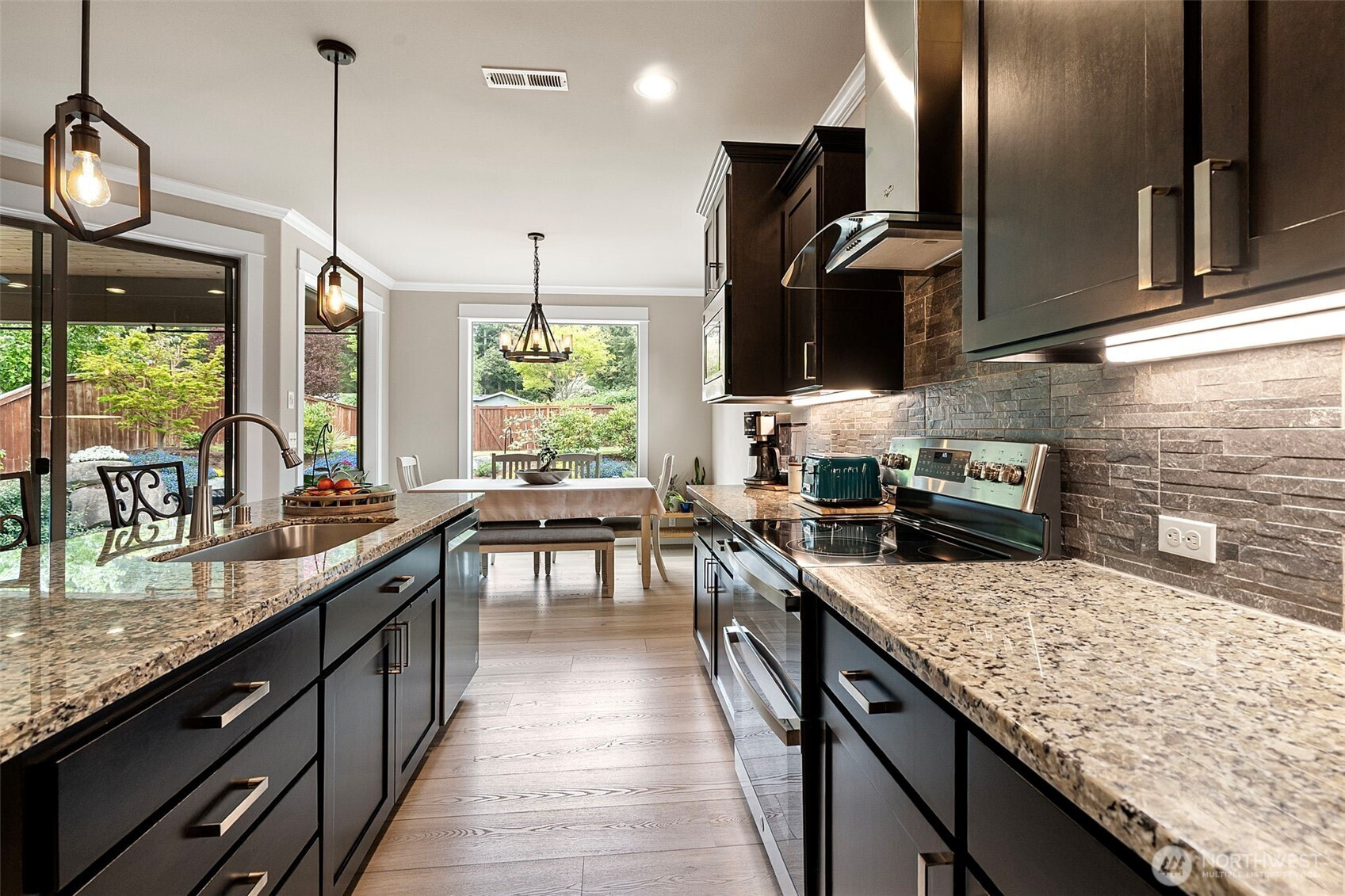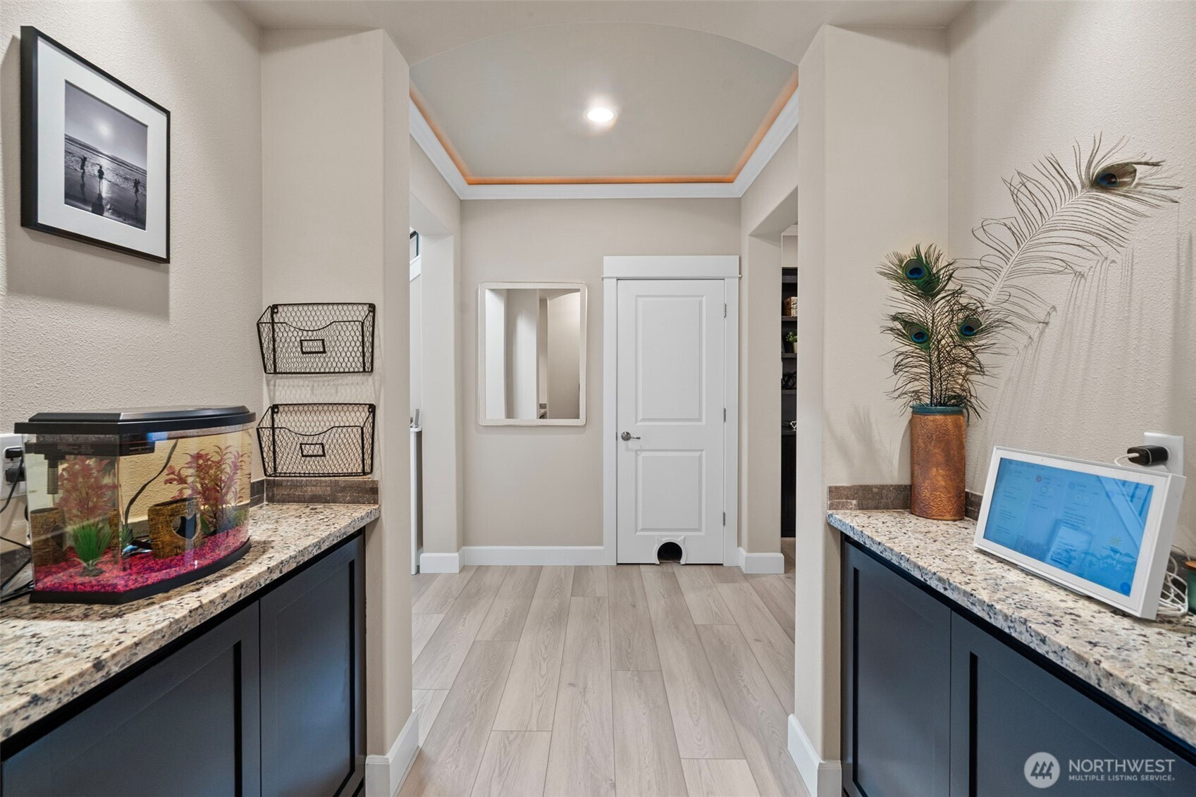 Experience peace & privacy in the gated Lexington community, where this exceptional High Country Home showcases impeccable craftsmanship & attention to detail throughout. From crown molding & extensive millwork to wainscoting, rounded corners, custom built-ins, and beautifully finished cabinetry, every element has been thoughtfully designed. This stunning 2,746 sq.ft. home offers a versatile & functional layout, featuring a junior en suite with a ¾ bath on the main level—perfect for guests or multi-generational living. Upstairs, you’ll find the spacious primary suite, 2 additional bedrooms, a dedicated office, & a large bonus room or fifth bedroom, along with convenient upper-level laundry. The gourmet kitchen is a chef’s dream, complete with granite countertops, full tile backsplash, stainless steel appliances, double ovens, and an oversized refrigerator. Step outside to enjoy year-round outdoor living with a covered patio featuring a gas fireplace, built-in speakers, & TV wiring—ideal for entertaining. The fully fenced yard includes a sprinkler system, garden beds, hot tub for added comfort & convenience. Additional highlights include central A/C, 3 car garage, & a private gate providing direct access to community walking trails. Located within a highly desirable neighborhood known for its strong sense of community & excellent schools.