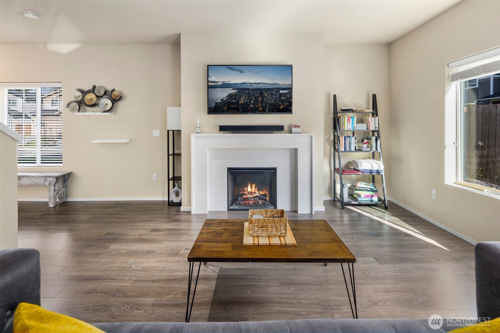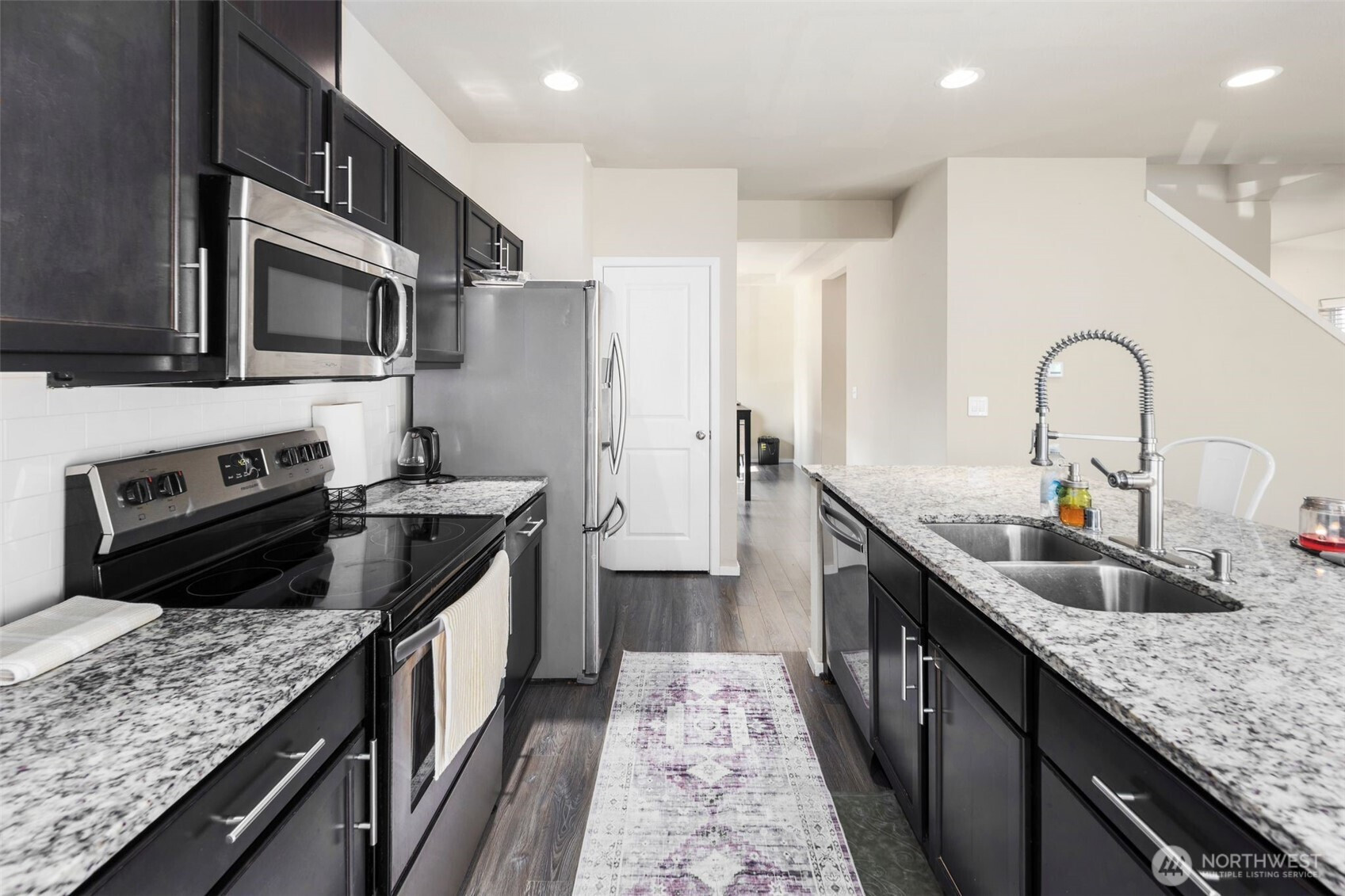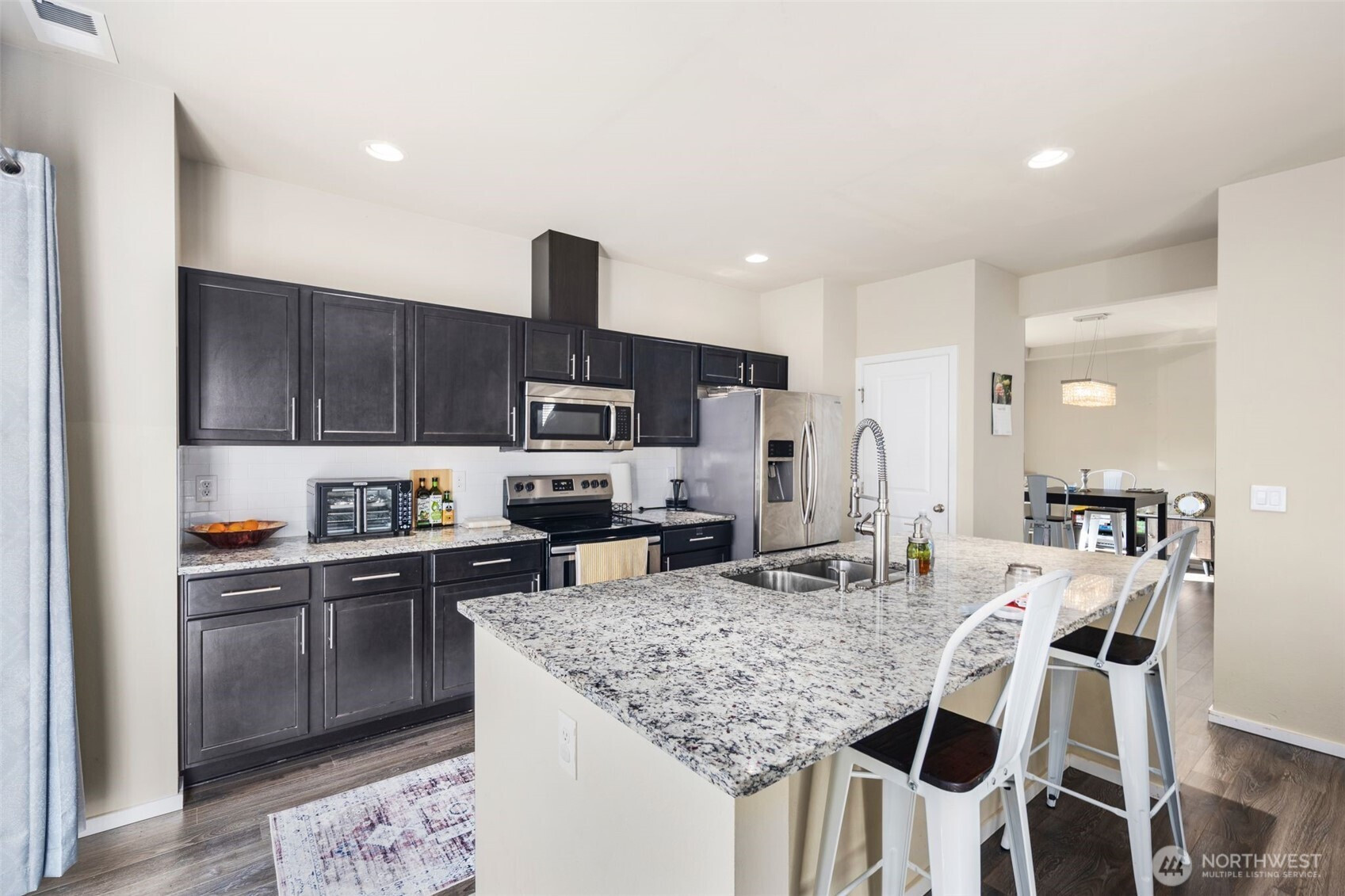 Come see this beautiful home, with many high end finishes awaits you. Located in a beautiful small neighborhood in the heart of Puyallup. This beauty comes with engineered hardwood floors through out most areas of home. You will be greeted with the 9ft ceiling grand entrance, which leads you to the large living room with gas fireplace. Kitchen has large granite Island that overlooks the living room, giving it the open floor plan ambiance. Large primary bedroom with walk in closet and five piece bath. custom built in closet, beautiful subway tiles and dual floating vanity. Nice community park for playtime or summer get togethers, and a low maintenance, fully fenced backyard.