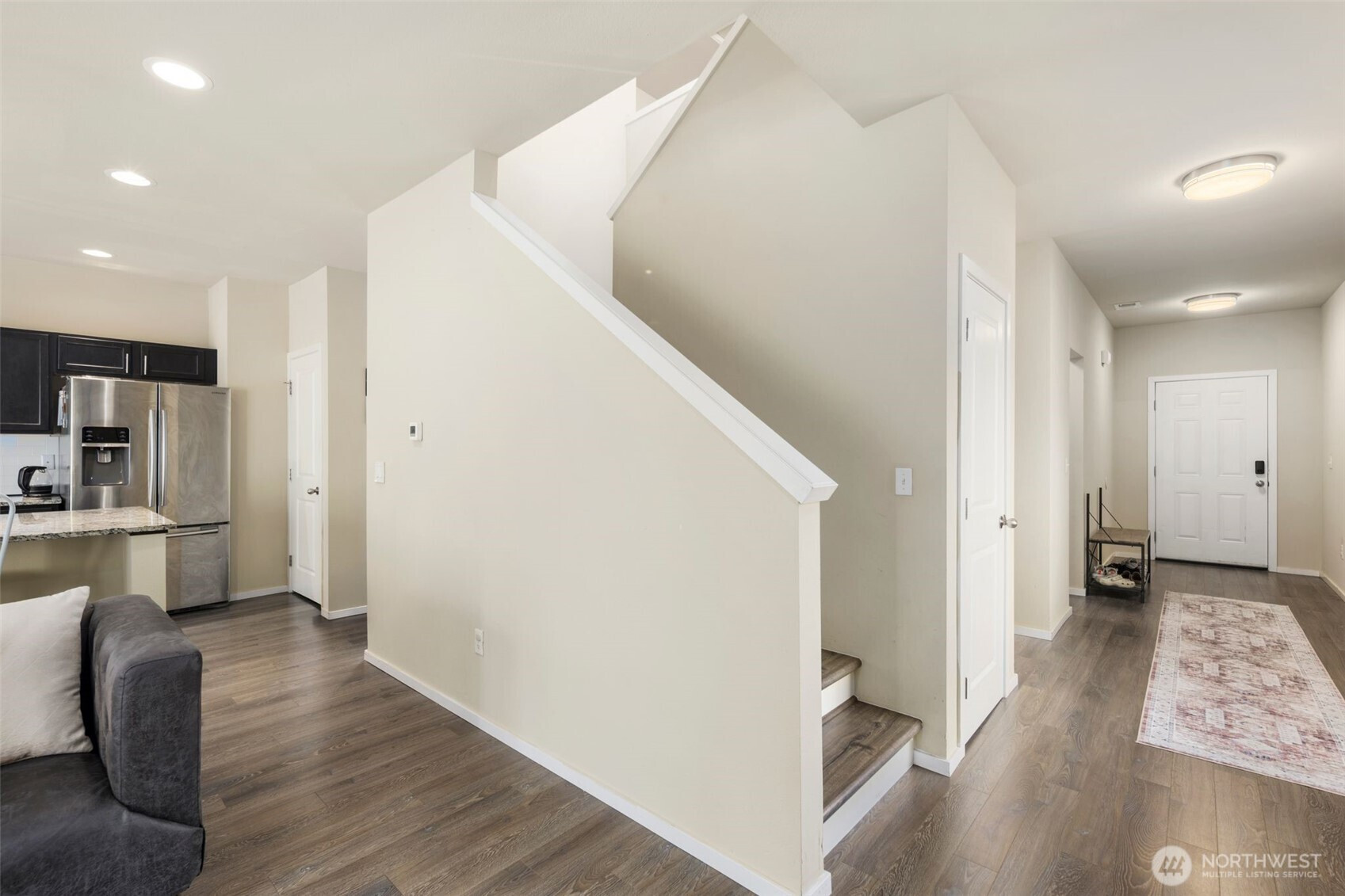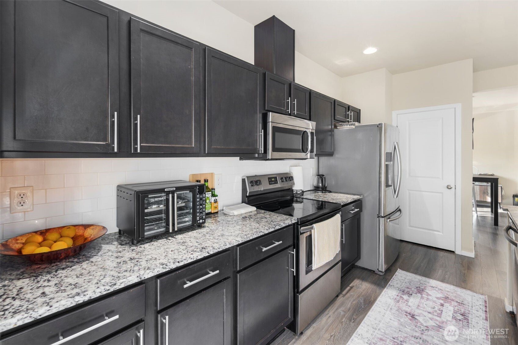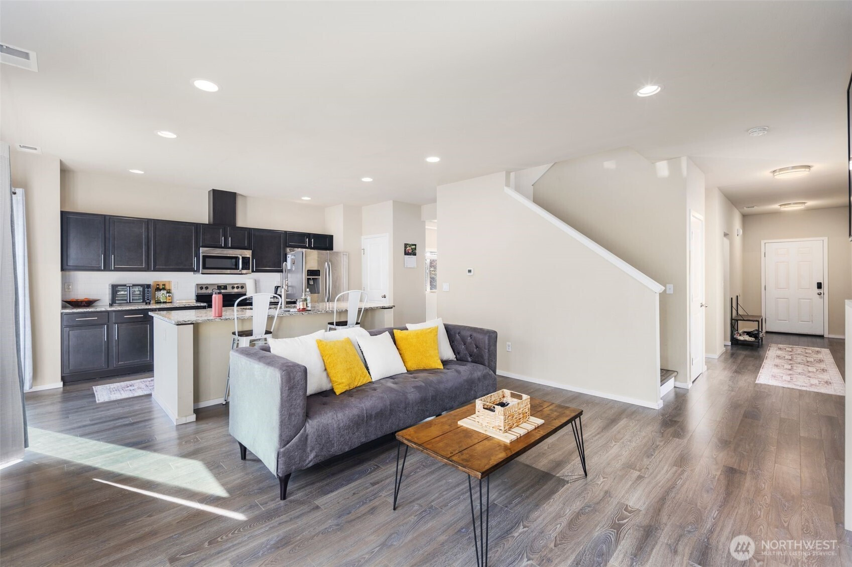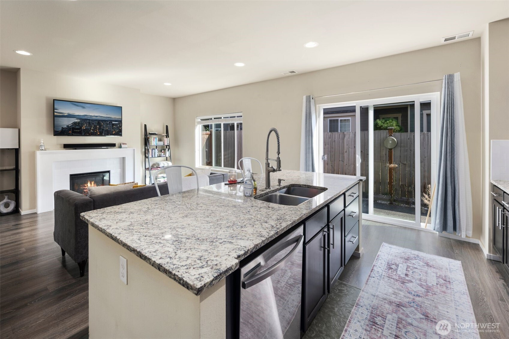 Come see this beautiful home, with many high end finishes awaits you. Located in a beautiful small neighborhood in the heart of Puyallup. This beauty comes with engineered hardwood floors through out most areas of home. You will be greeted with the 9ft ceiling grand entrance, which leads you to the large living room with gas fireplace. Kitchen has large granite Island that overlooks the living room, giving it the open floor plan ambiance. Large primary bedroom with walk in closet and five piece bath. custom built in closet, beautiful subway tiles and dual floating vanity. Nice community park for playtime or summer get togethers, and a low maintenance, fully fenced backyard.