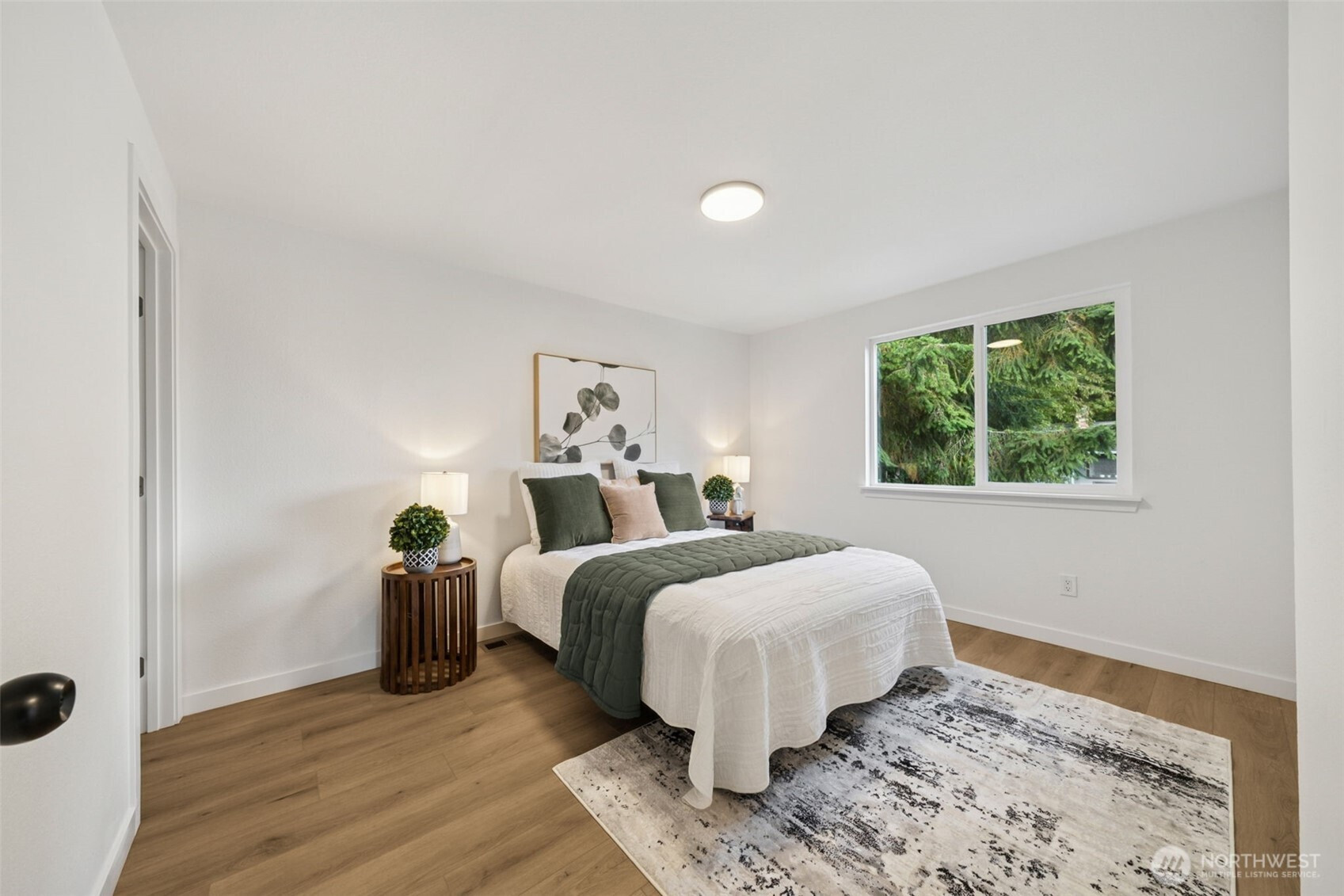 This stunning gallery-style home offers 1,772 sq ft of beautifully redesigned living space! Upstairs features a chef’s kitchen with ample counter space, upgraded cabinets, and a large island with bar seating. The spacious living room boasts a charming wood-burning fireplace, and the light-filled dining area opens to a huge deck. Three bedrooms include a luxurious primary suite. Downstairs showcases a spectacular rec room—perfect for entertaining or movie nights! Set on a 1/3-acre lot with extensive renovations: new roof, windows, paint, flooring, baths, kitchen, water heater, fixtures, doors & millwork!