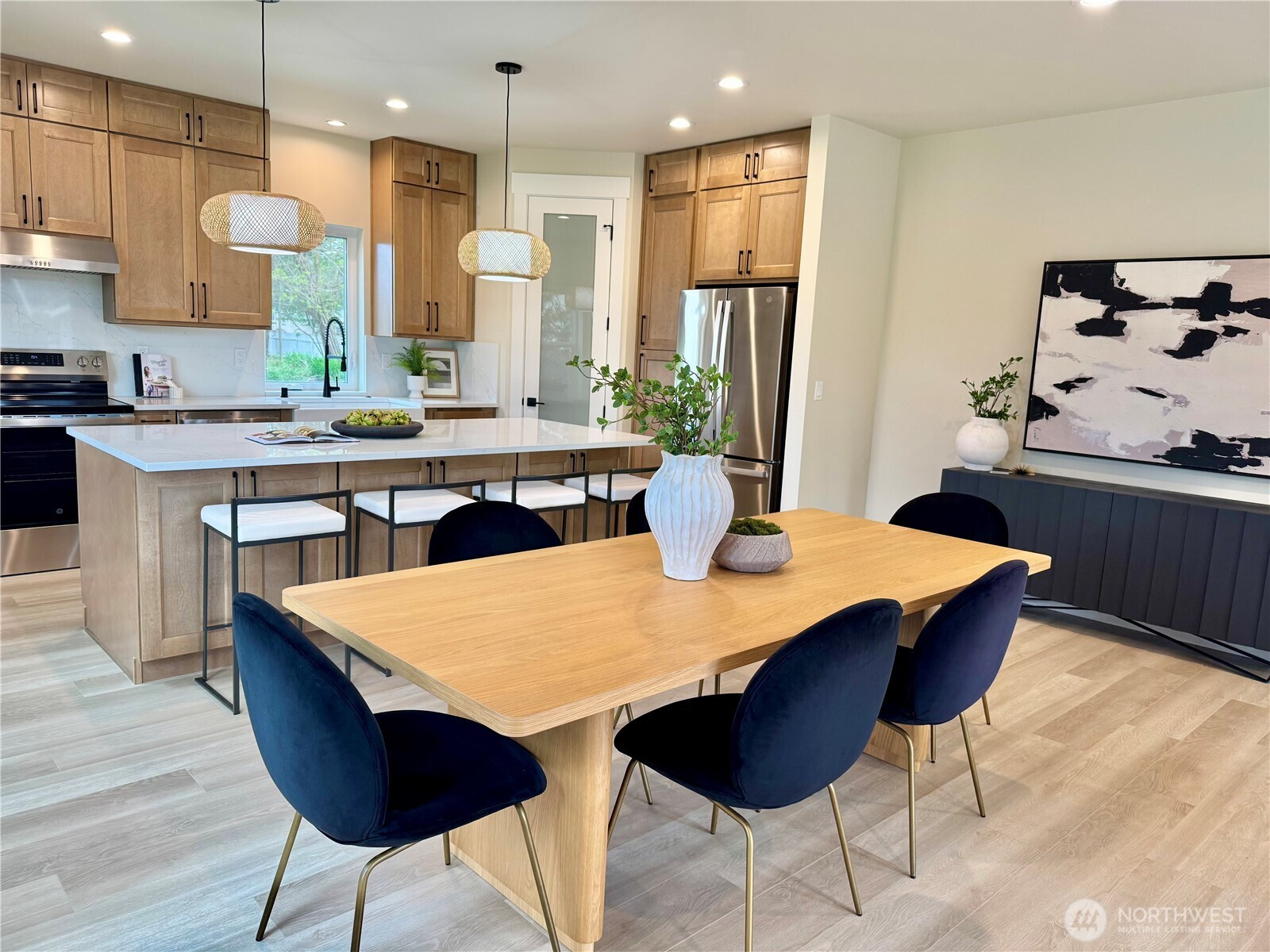 Exquisite new construction in Downtown Sumner. This refined 4-bed, 2.75-bath home blends modern luxury with energy-efficient design, all within steps of shopping, parks, schools, and the nearby train station for easy commuting to Seattle or Portland. Enjoy radiant heated tile floors, a designer kitchen with ceiling-height cabinetry, walk-in pantry, oversized island, Quartz countertops and full Quartz backsplash, plus an undermount farmhouse sink and electric stove. The open great room features an elegant electric fireplace and abundant natural light from energy-efficient windows. The spa-inspired primary suite offers a rain shower, soaking tub, heated floors, premium cabinetry, and Quartz slab finishes. Additional bedrooms include walk-in closets, with durable laminate flooring throughout. Comfort is elevated with AC and heat forced-air system, LED lighting, and a hybrid water heater. Exterior upgrades include R5 insulated 1-inch energy-efficient exterior, Hardie siding, fully landscaped yard, and an oversized 2-car garage with EV charging outlet. This home delivers luxury, efficiency, and timeless design in one of Sumner’s most desirable locations. New construction home with a spacious open-concept layout and luxury finishes throughout. This one truly stands out. Schedule your tour today before it’s gone.