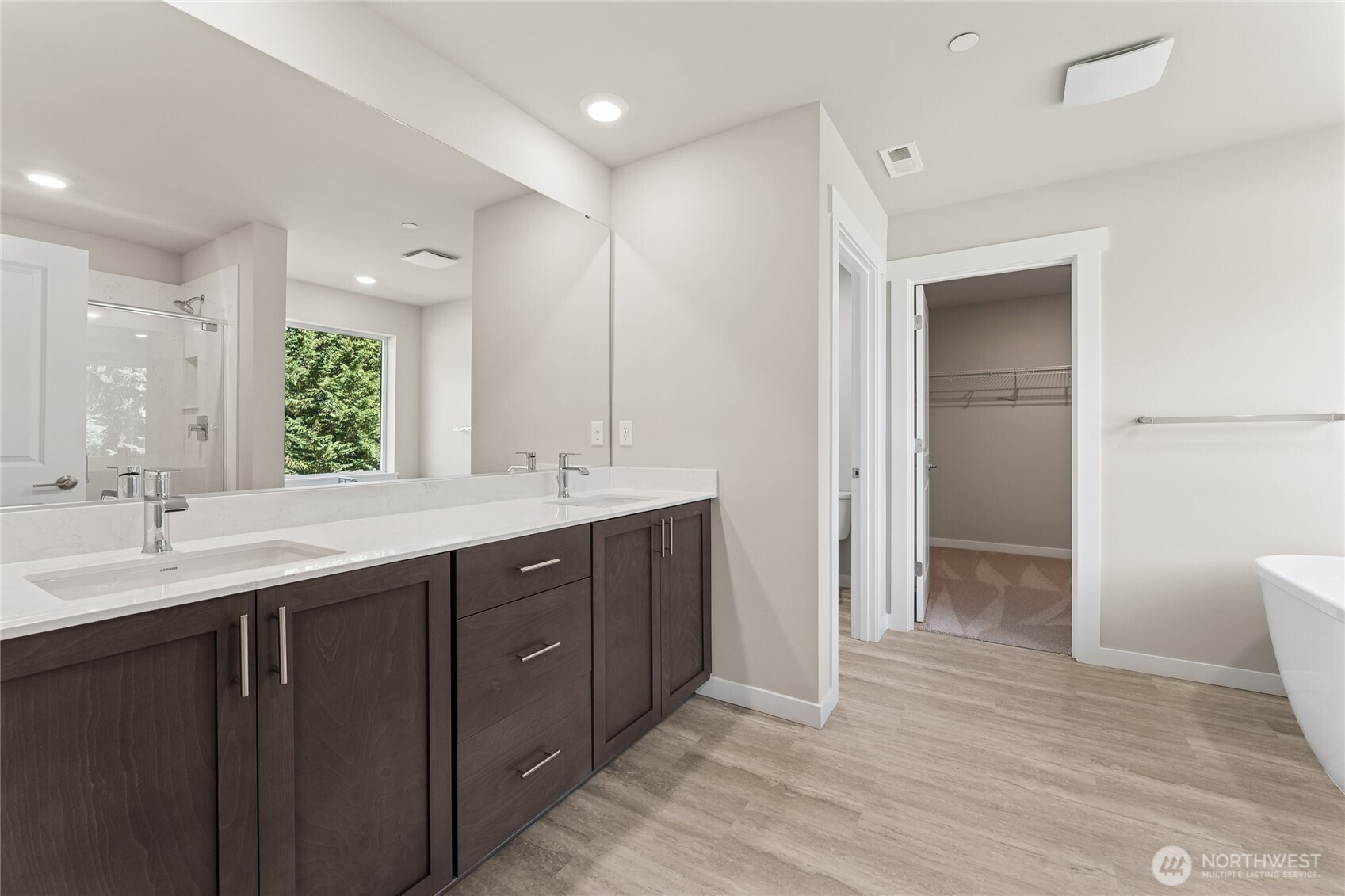 Welcome to the Ashland by D.R. Horton, America's #1 Builder. Refrigerator Included! This welcoming roomy home sits on huge lot in a prime location! 5min to I-5! This layout offers an open concept with never ending space/storage. Bedroom down with 3.25bath perfect for guests. Dining room with space for a table that fits everyone. Open great room and kitchen perfect for hosting. Walk-in pantry and additional storage because let's face it, you can never have enough. Bonus room upstairs perfect for a game room or play-room. Grand primary bedroom fit for a king...bed. Primary bath with tiled shower and stand-alone tub. Quartz countertops throughout! Luxury vinyl flooring throughout the downstairs. Laundry room upstairs with built in quartz counter. E/V wiring for E/V charging. Buyers must register their broker on-site at their first visit, including open houses.