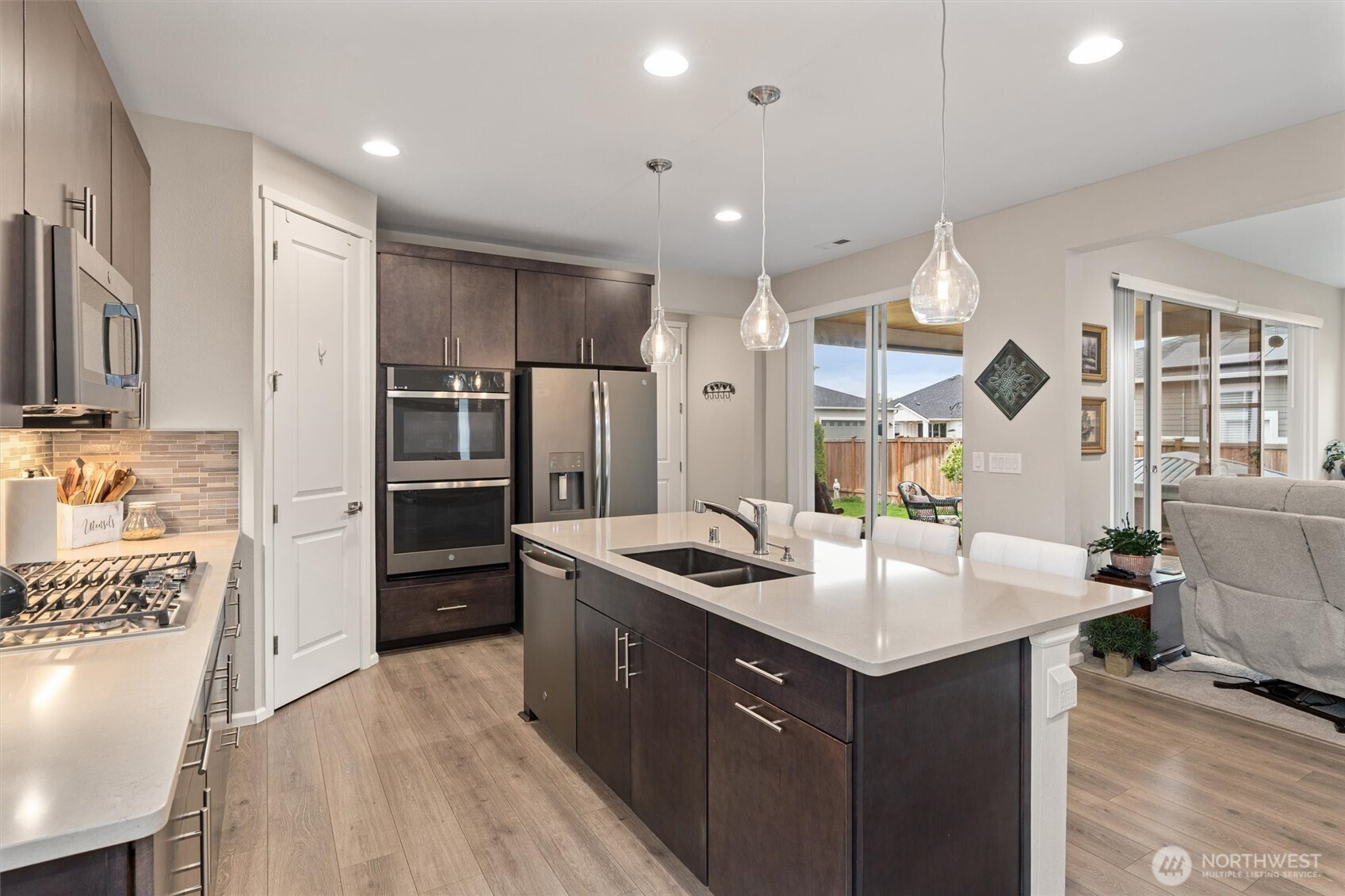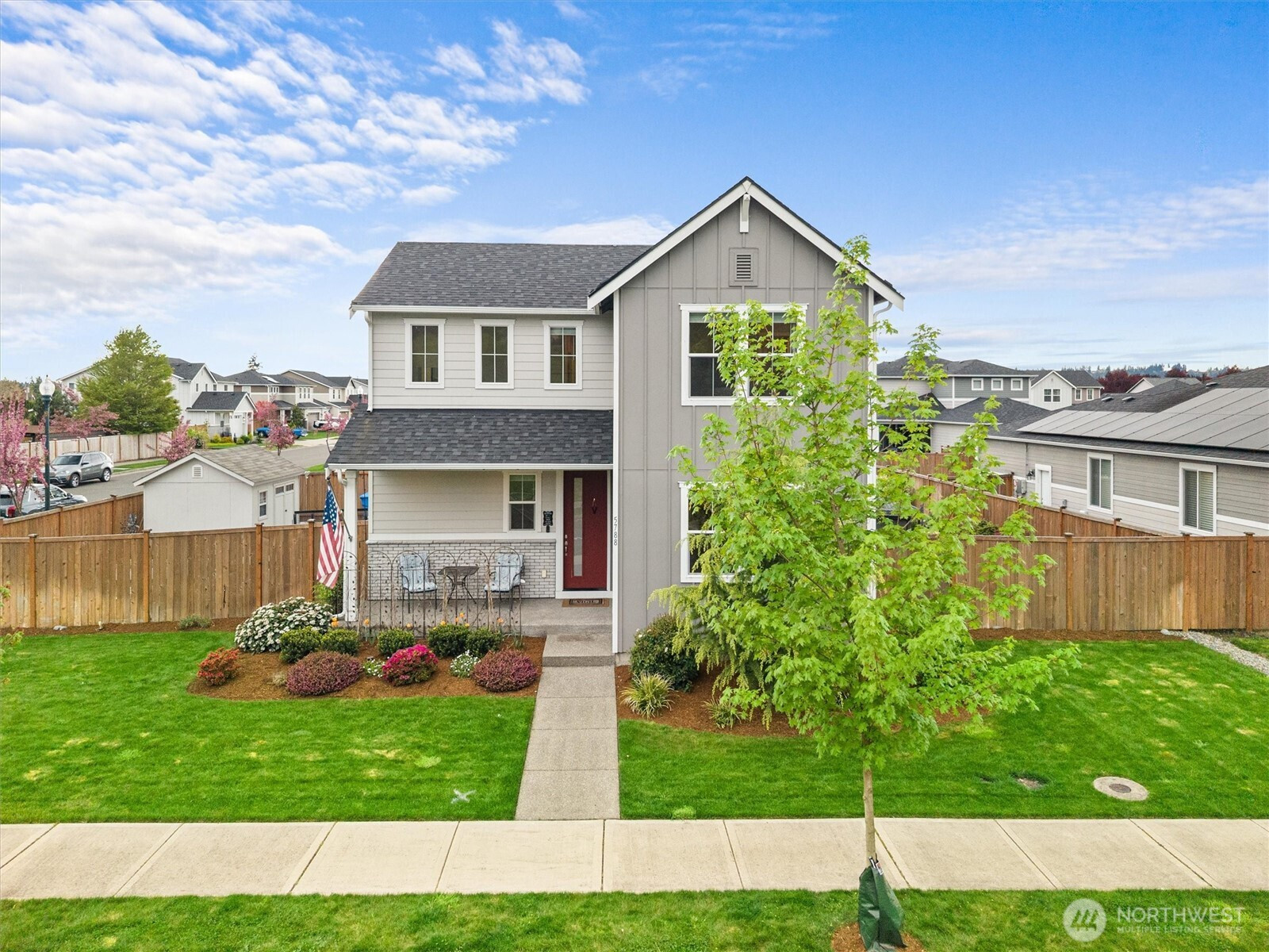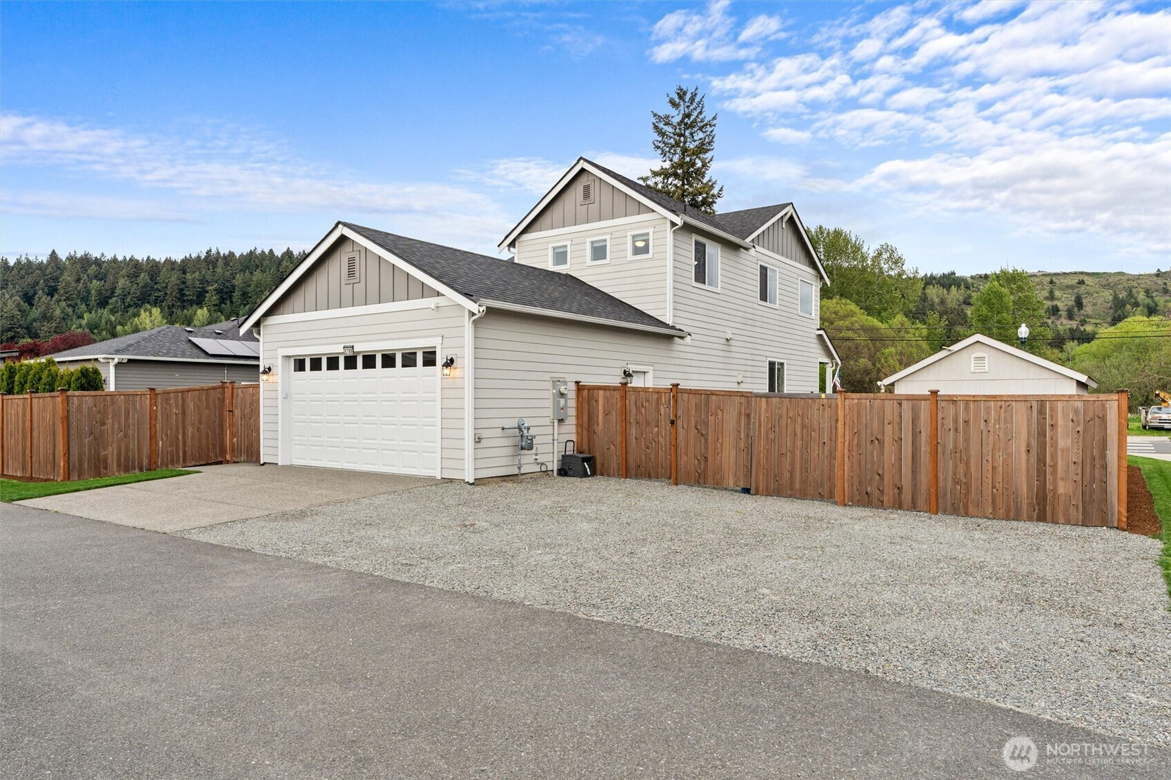 Better-Than-New Corner Lot Living in the Heart of Sumner. Why wait for new construction when this 2020 built home already has the upgrades done for you? This 4 bedroom, 3 bath, 2,267 sq ft home sits on a premium corner lot in one of Sumner’s most desirable neighborhoods, offering space, flexibility, and a location that’s hard to beat. Main floor bedroom paired with full bath creates instant versatility, perfect for guests, multi-generational living, or a private home office. Open-concept great room is built for everyday living and entertaining, anchored by a gourmet kitchen featuring upgraded quartz countertops and seamless flow to the covered outdoor patio, great for year round enjoyment. Upstairs, the spacious primary suite offers a true retreat with a fully tiled walk-in shower and an oversized walk-in closet. Two additional generously sized bedrooms complete the upper level. Step outside to a thoughtfully designed yard featuring a manicured lawn, raised garden beds, and large outbuilding for storage or hobbies. Alley access garage with an extended graveled area provides additional parking and low maintenance flexibility, hard to find in newer communities. Additional highlights include a heat pump with A/C for year round comfort and energy efficiency. All of this in a top rated school district, with quick access to Hwy 410 and 167, close to the Sounder Train, and an easy walk to downtown Sumner shops and dining.