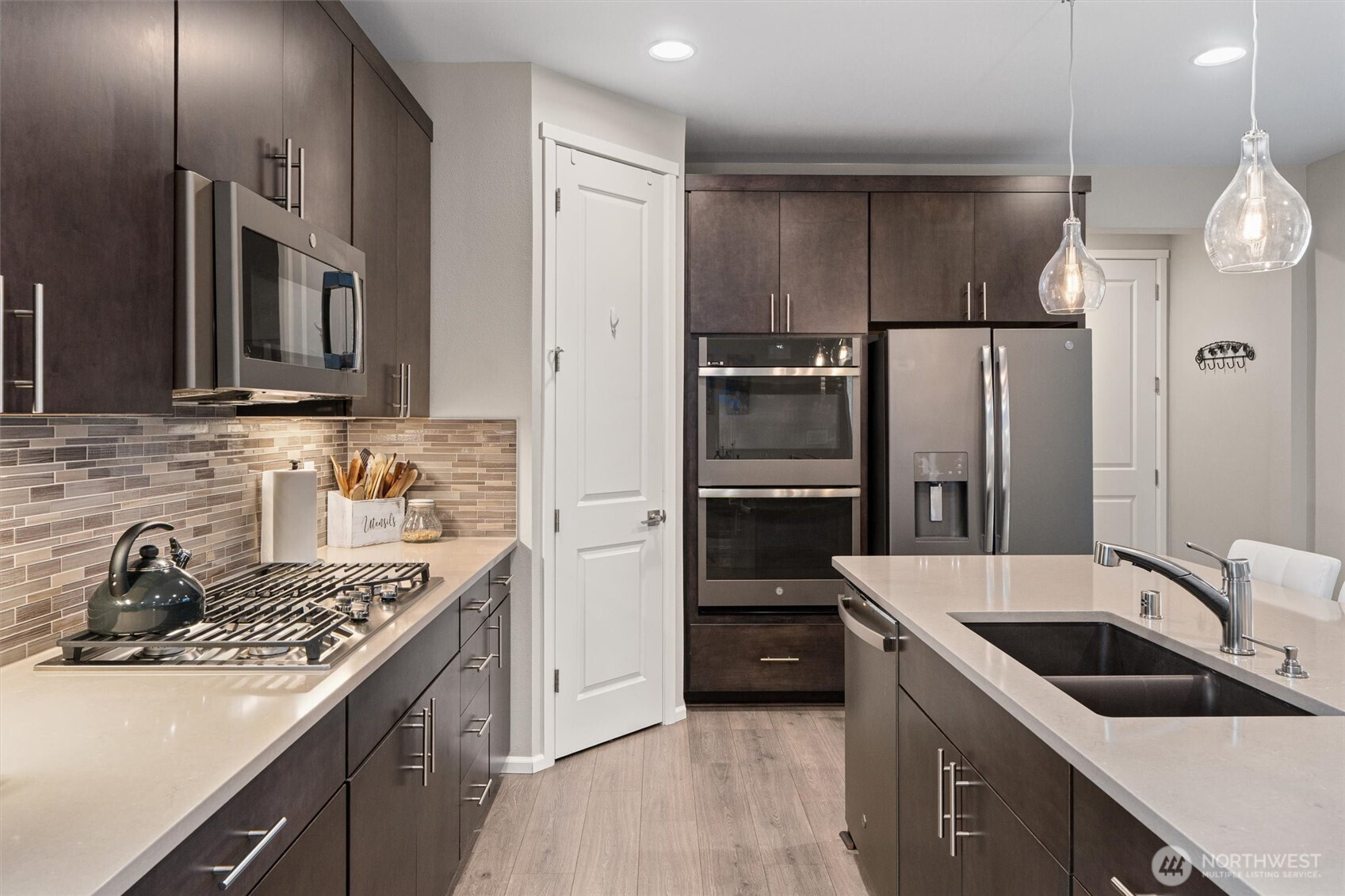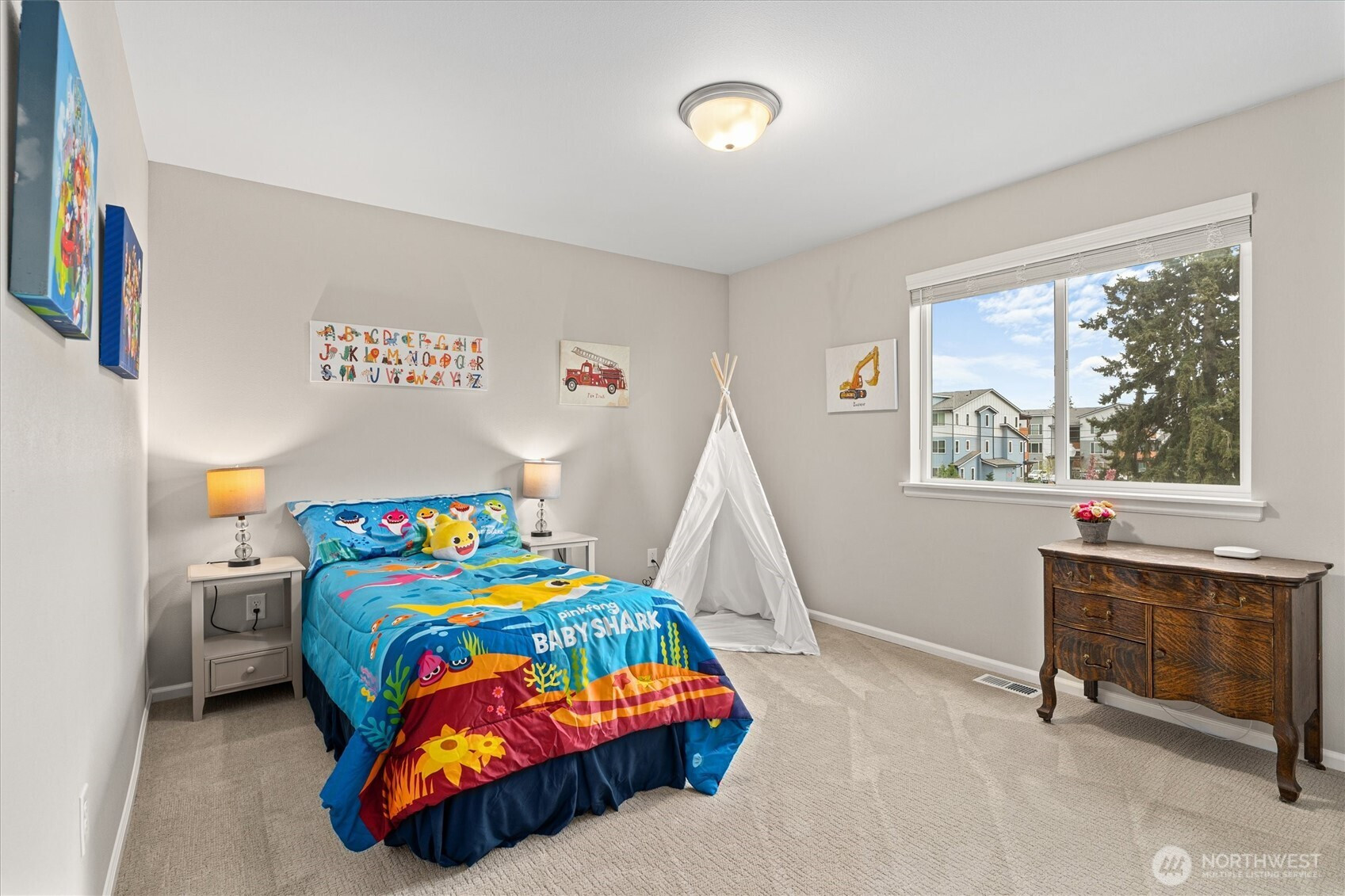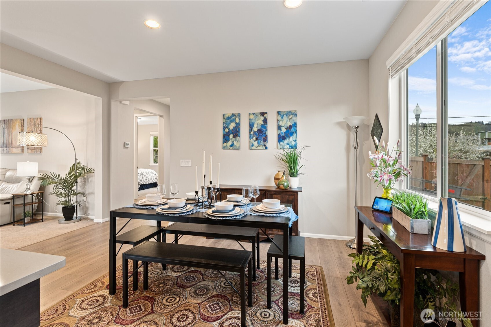 Better-Than-New Corner Lot Living in the Heart of Sumner. Why wait for new construction when this 2020 built home already has the upgrades done for you? This 4 bedroom, 3 bath, 2,267 sq ft home sits on a premium corner lot in one of Sumner’s most desirable neighborhoods, offering space, flexibility, and a location that’s hard to beat. Main floor bedroom paired with full bath creates instant versatility, perfect for guests, multi-generational living, or a private home office. Open-concept great room is built for everyday living and entertaining, anchored by a gourmet kitchen featuring upgraded quartz countertops and seamless flow to the covered outdoor patio, great for year round enjoyment. Upstairs, the spacious primary suite offers a true retreat with a fully tiled walk-in shower and an oversized walk-in closet. Two additional generously sized bedrooms complete the upper level. Step outside to a thoughtfully designed yard featuring a manicured lawn, raised garden beds, and large outbuilding for storage or hobbies. Alley access garage with an extended graveled area provides additional parking and low maintenance flexibility, hard to find in newer communities. Additional highlights include a heat pump with A/C for year round comfort and energy efficiency. All of this in a top rated school district, with quick access to Hwy 410 and 167, close to the Sounder Train, and an easy walk to downtown Sumner shops and dining.