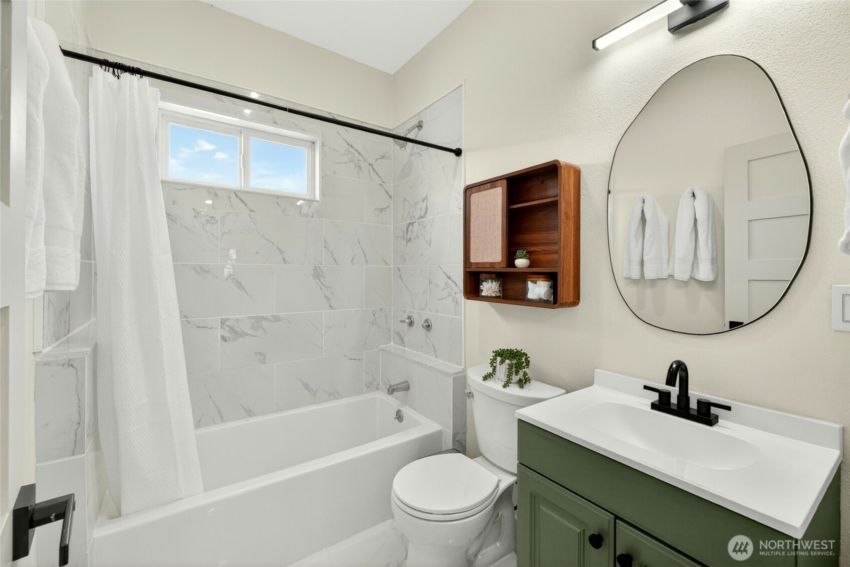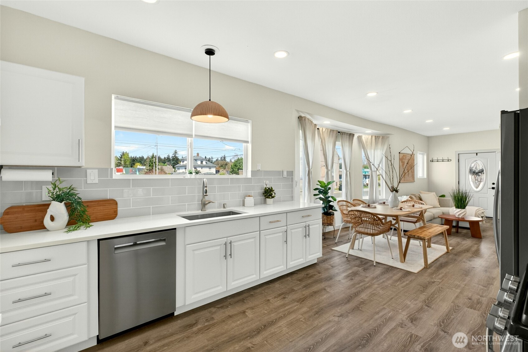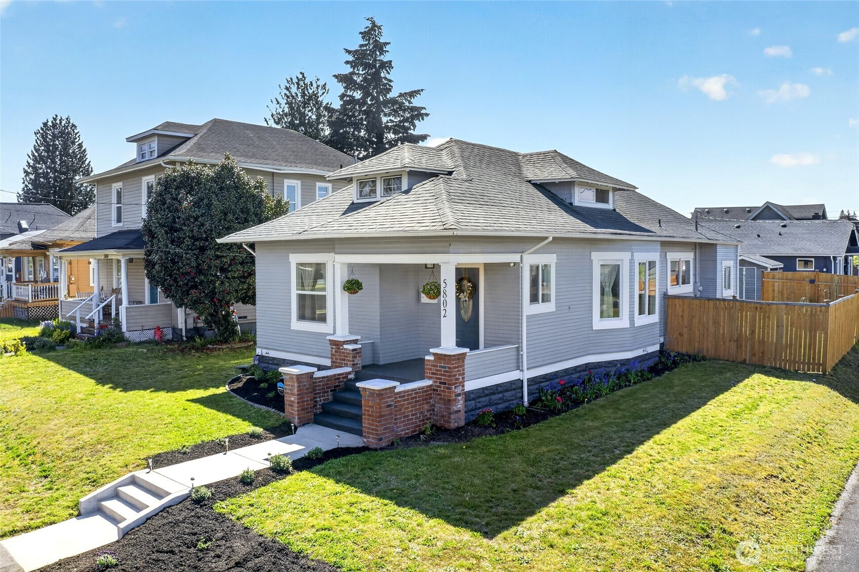 Move-in ready and full of must-have features, this 4-bedroom, 2.5-bath home sits on a fully fenced corner lot in Tacoma and was completely updated in 2022, including a new roof. Enjoy the convenience of main-level living with 3 bedrooms on the main floor, including a primary suite with en suite bathroom, plus a second full bath for guests’ comfort. Upstairs offers a spacious loft-style bedroom with a half bath—ideal for a home office, guest retreat, or flexible bonus space. The open-concept floor plan creates seamless flow between the kitchen, dining, and living areas—perfect for entertaining or everyday living. The kitchen features quartz countertops and a gas stove, combining style and functionality, while natural light fills the home and enhances the warm, inviting feel throughout. Step outside to a fully fenced yard with garden beds ready for your personal touch, plus the added space and privacy that comes with a corner lot. Located just a short walk from S Tacoma Way, you’ll love the easy access to local shops, dining, and festivals that make this area so special—all while having a place to come home to and unwind.