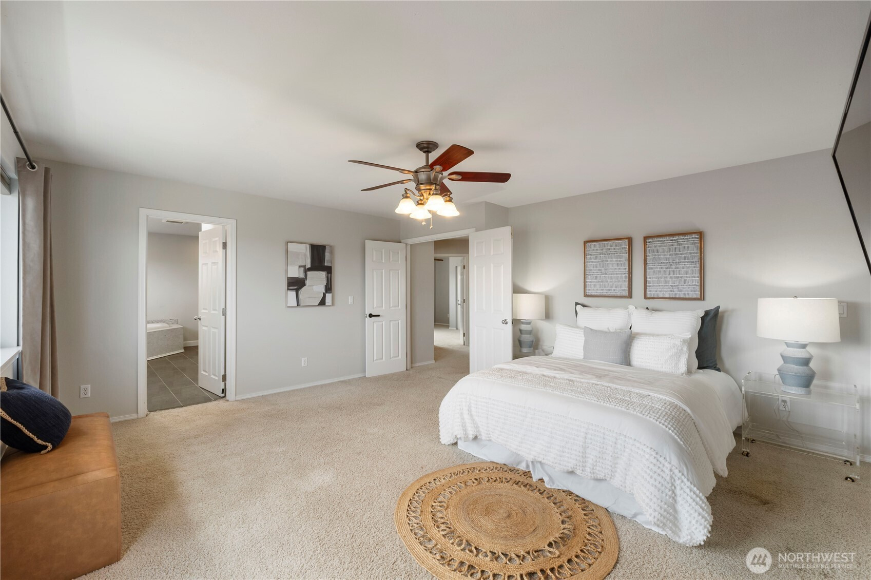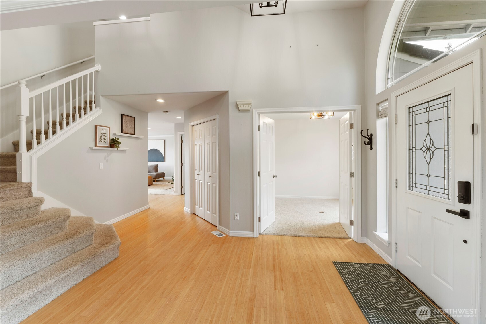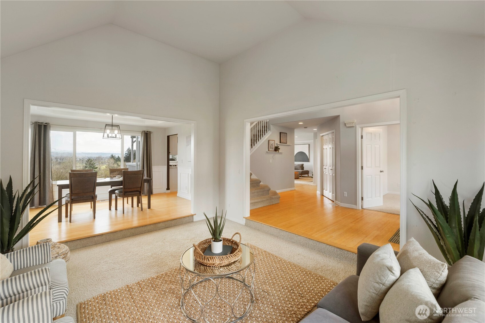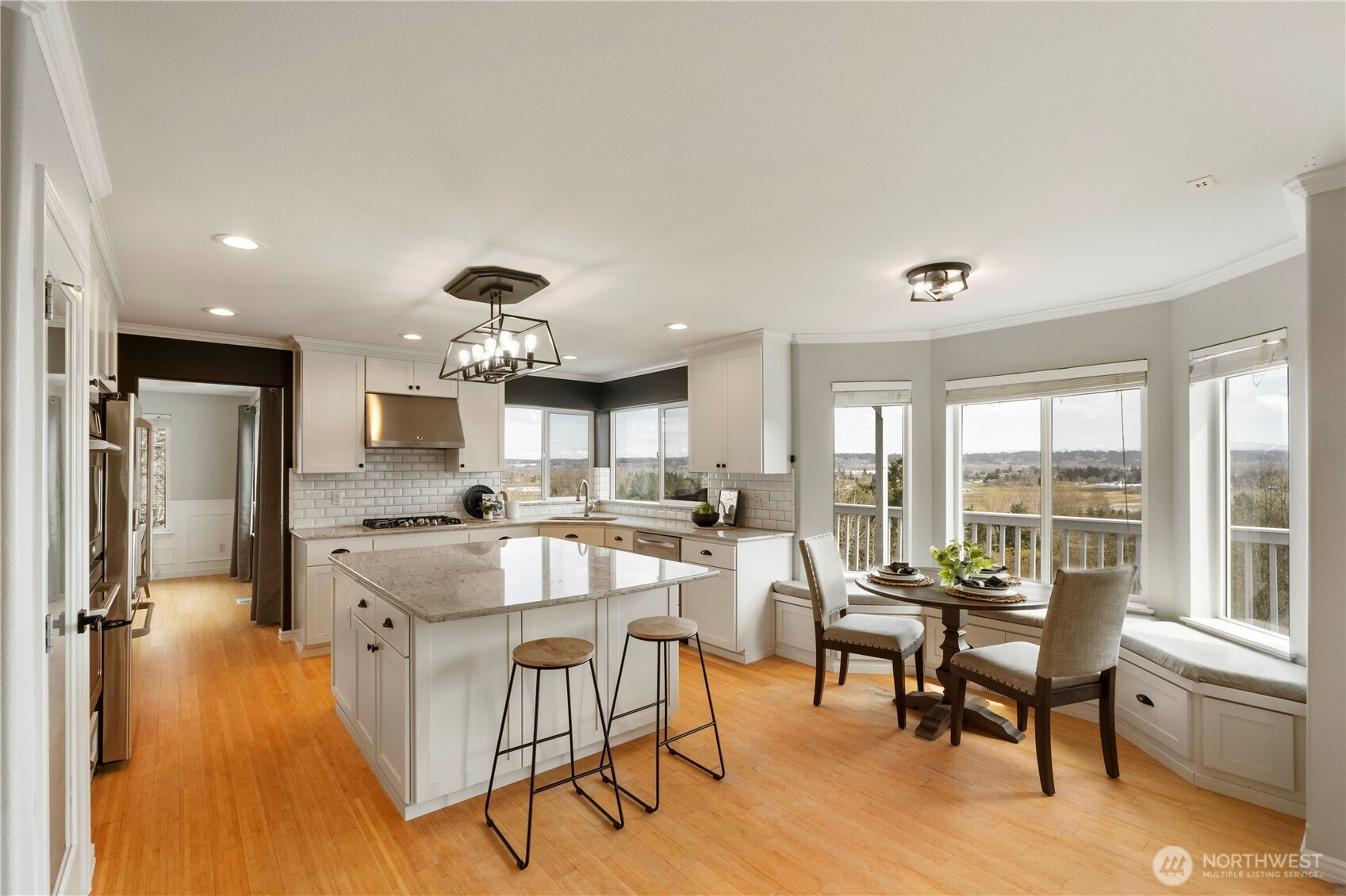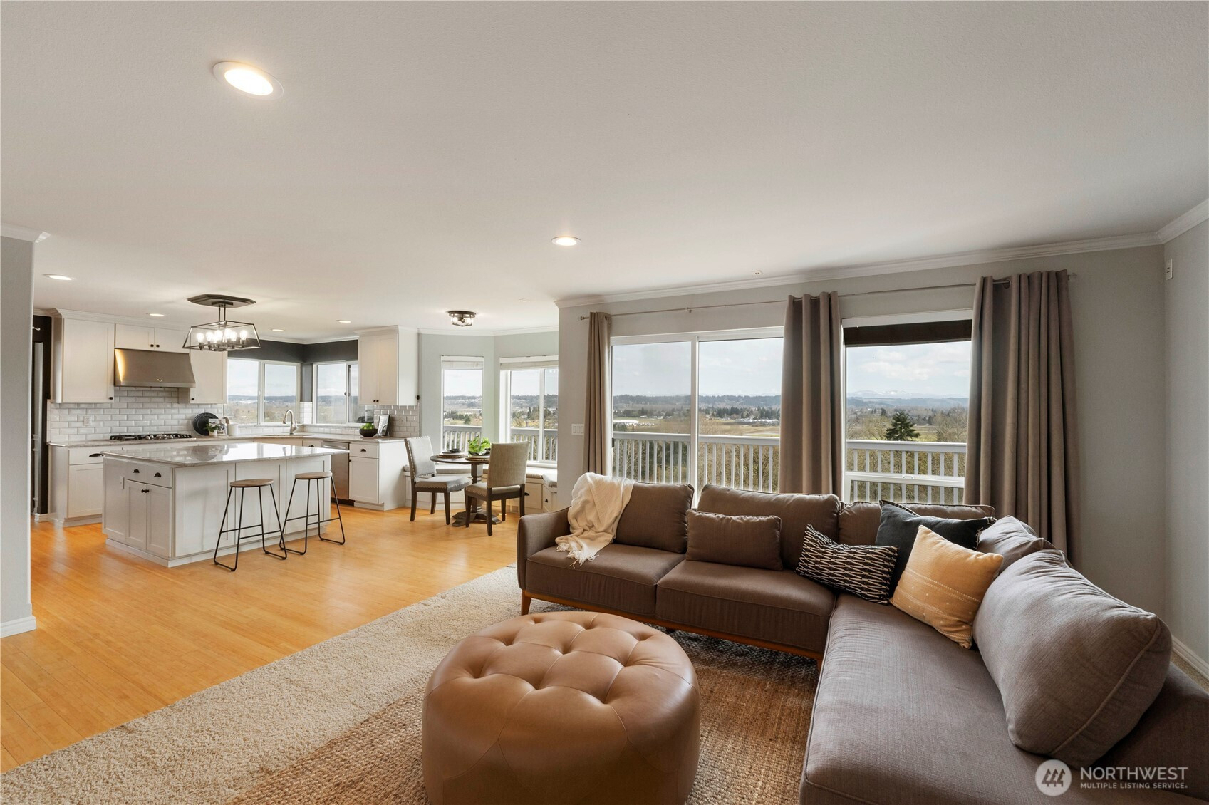 Welcome home to this stunning custom retreat with sweeping views of the Puyallup Valley and Mt. Rainier! Ask about the $820,000 assumable VA loan at 2.4%—a rare and valuable opportunity! Offering 3,600 sq ft, this home features 4 bedrooms, including a private primary suite with a 5-piece bath and its own deck. The main floor includes an office and a beautifully updated kitchen with a large island that opens to the dining area and family room—perfect for entertaining. Step onto the expansive deck to enjoy city lights and breathtaking sunsets. The lower level boasts a second living area, a private 4th bedroom with full bath, and a versatile finished flex space ideal for a wine cellar, gym, or hobby room. Situated on 1.70 acres, the property offers a spacious backyard ready for play, gardening, or relaxation. Additional highlights include an extra-large 3-car garage. Tucked on a quiet cul-de-sac, this home offers privacy while remaining convenient to shopping, schools, and major routes. Solid construction with room to add your personal touches and build equity. Be sure to check out the VIRTUAL TOUR!