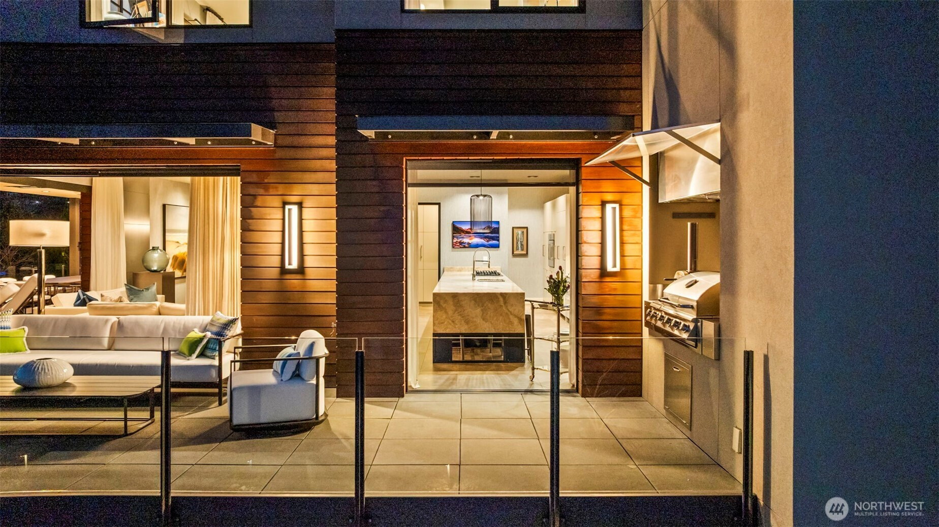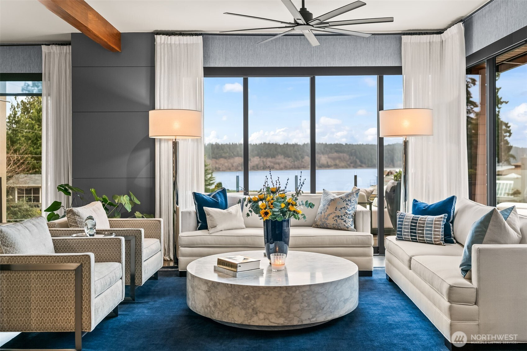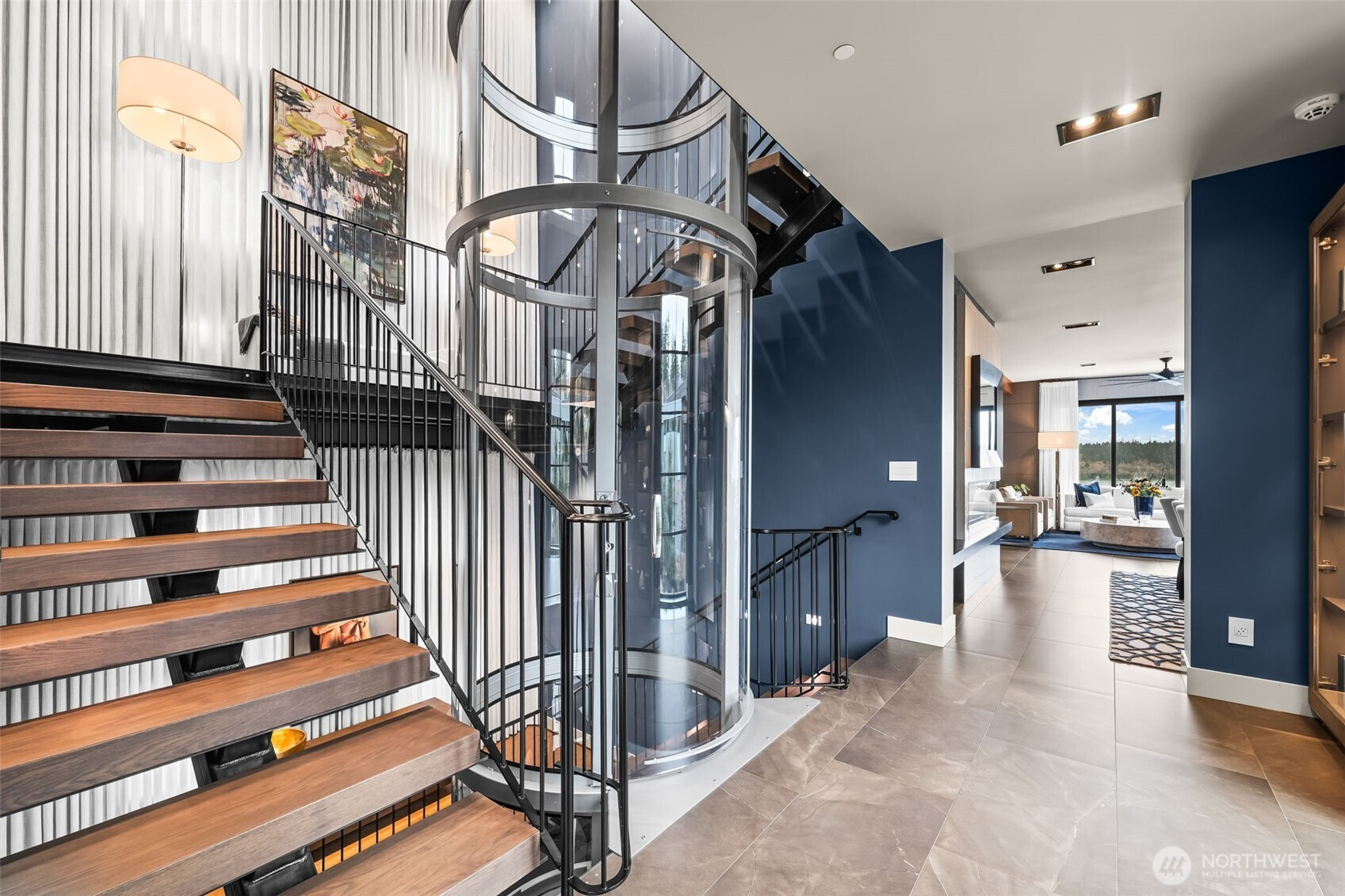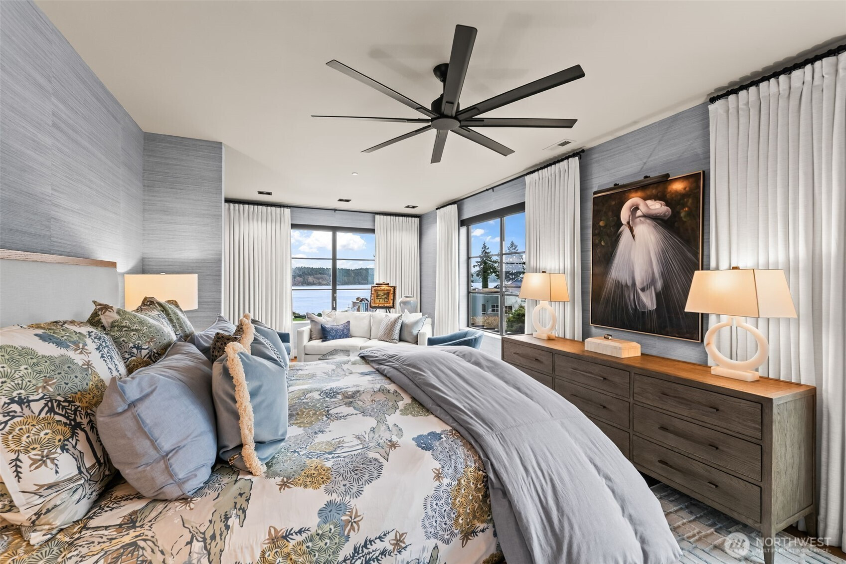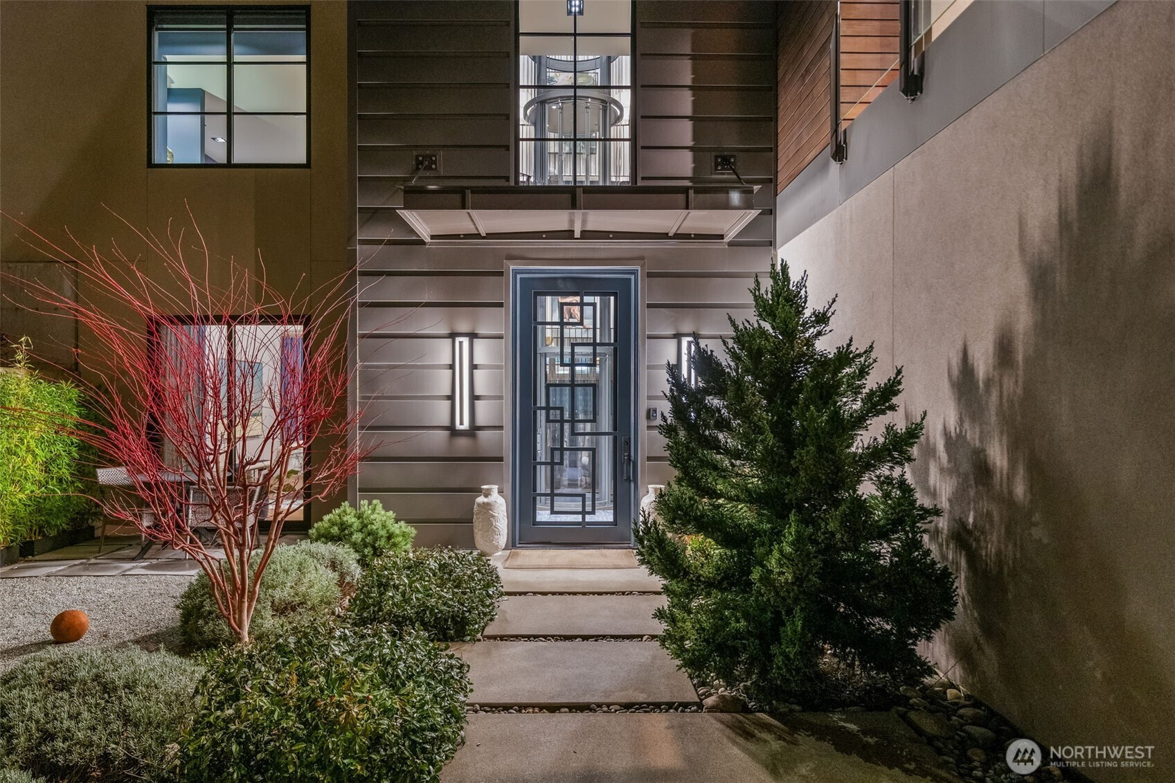 A fortress of modern design with a soul of silk. In the exclusive gated enclave on Reid, this 4,669 SF custom Hoppet Design residence is the ultimate turn-key retreat. For the discerning buyer seeking a fully curated, zero-maintenance, luxury lock-and-leave home, especially for glorious Gig Harbor summers, it offers unparalleled convenience: Fly in and drop the bags, open the expansive Fleetwood doors to stunning Sound views, walk effortlessly to downtown's vibrant waterfront, step onto your boat moored in the Harbor and set out for a sunset cruise. The striking exterior gives way to an inviting sanctuary that will rival the residences at any 5 star escape. Every surface was creatively softened for tranquity from cascading floor to ceiling linen drapery pared with Phillip Jeffries wallcoverings—silk, sisal, bamboo, even "Chanel", inspired lighting, and perfectly coordinated furnishings in every room available for separate purchase. The dramatic 3-story glass elevator connects the intimate gathering spaces to 4 ensuite bedrooms. Leathered quartzite, glass wine refrigerator, the primary suite's solid travertine soaking tub, radiant heated floors, and the Fleetwood doors dissolving indoor/outdoor boundaries with a wrap-around entertaining patio and heated/covered al fresco outdoor dining by the fire and the views are only the beginning. Complete with an 1,100 SF 3+ car garage for your collector vehicles. This is in town Gig Harbor luxury at its finest!