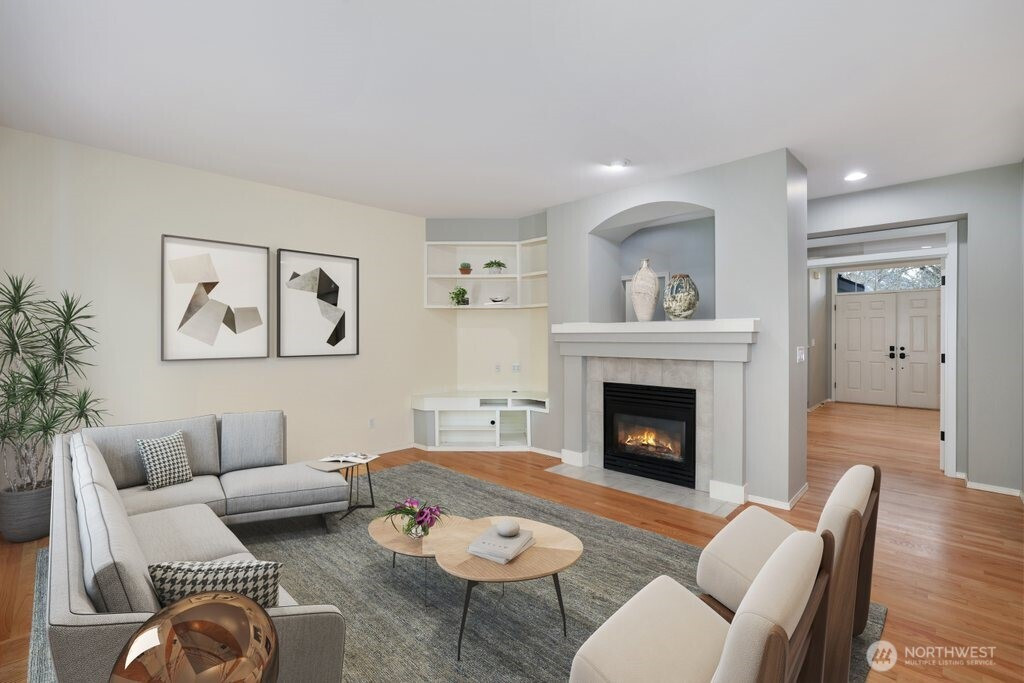 Beautifully designed home in Lakeland Hills with rich, warm oak hardwoods and 9 ft ceilings on the main level. The cozy sitting room offers a great flexible space while the dining room, with glass French doors, is perfect for hosting dinner parties. Chef's kitchen with plenty of storage, countertop space, black stainless appliances and a central island opens to a sunny breakfast nook. Family room with built-in shelving and cozy gas fireplace and the perfect hangout spot for movie nights. Step outside into a serene and private backyard with expansive tile patio, ideal for gardening and grilling. Functional layout includes a convenient main-floor bedroom, which would also make a great work-from-home space. Upstairs, you'll find three spacious bedrooms and a large bonus room that can easily function as an additional bedroom. Expansive primary suite complete with quartz countertops, luxurious soaker tub and walk-in closet. With a freshly painted exterior and thoughtful layout, this home is move-in ready! Great location, just a stroll away from the elementary school, multiple neighborhood parks, Town Center and effortless access to SR-167, SR-18, I-5 and Sounder commuter rail. Mortgage savings may be available for buyers of this listing.